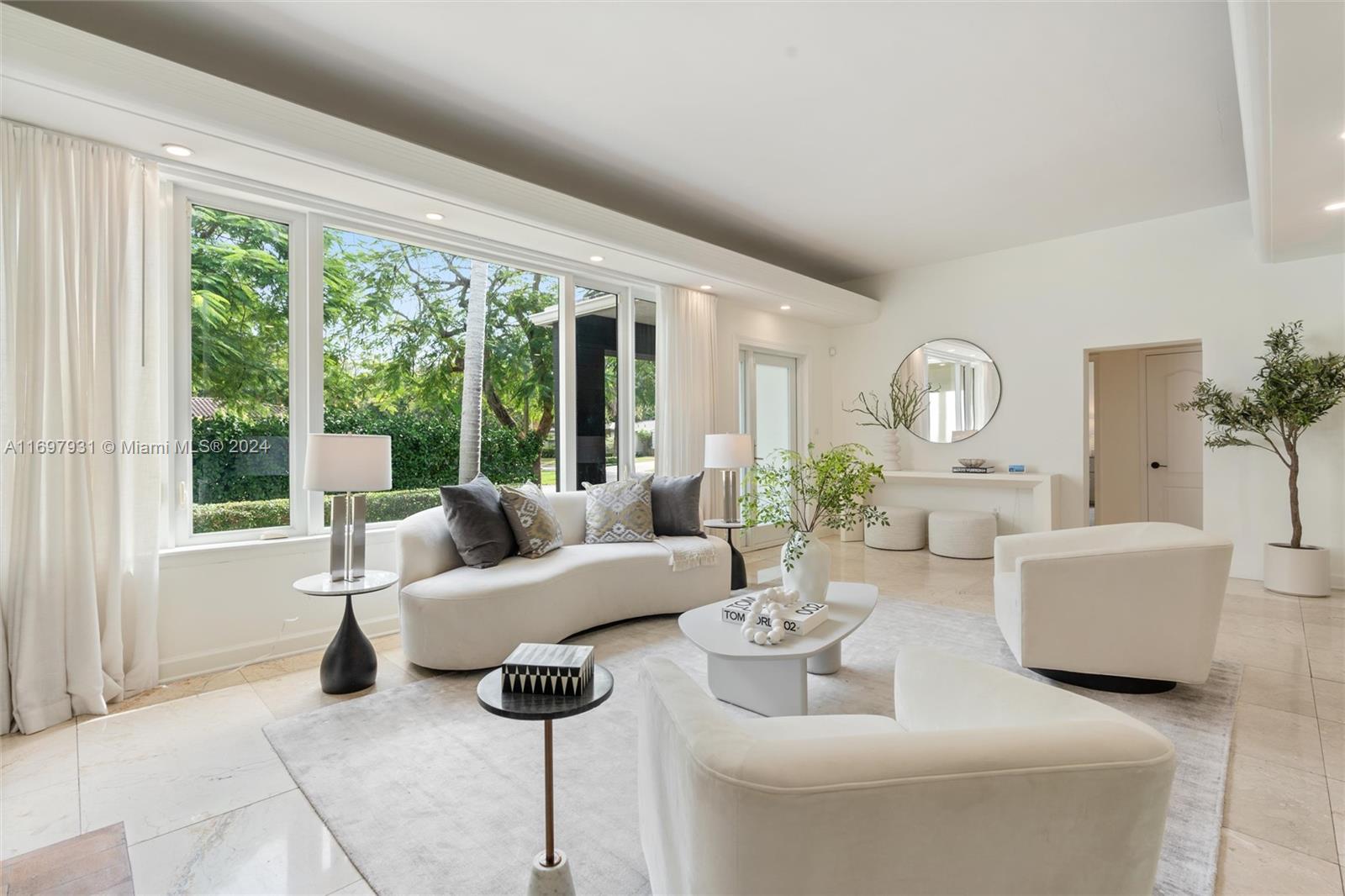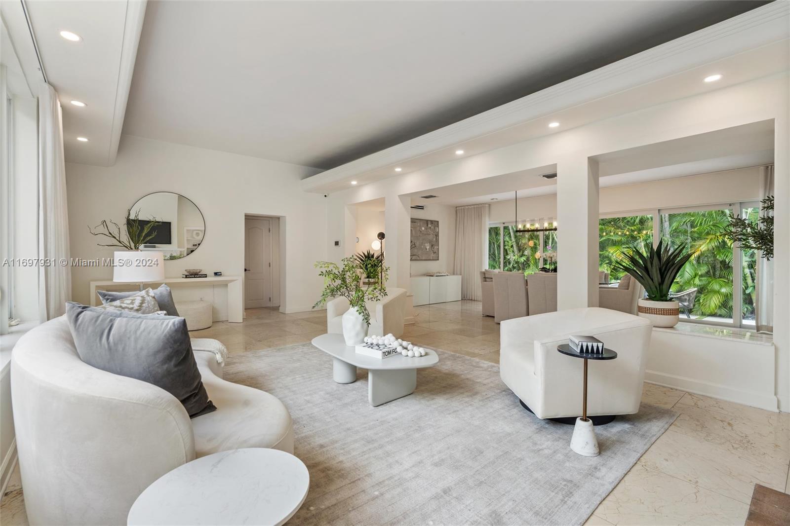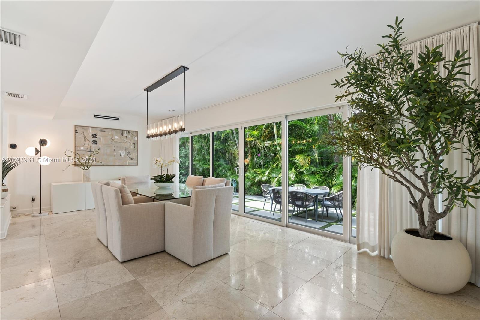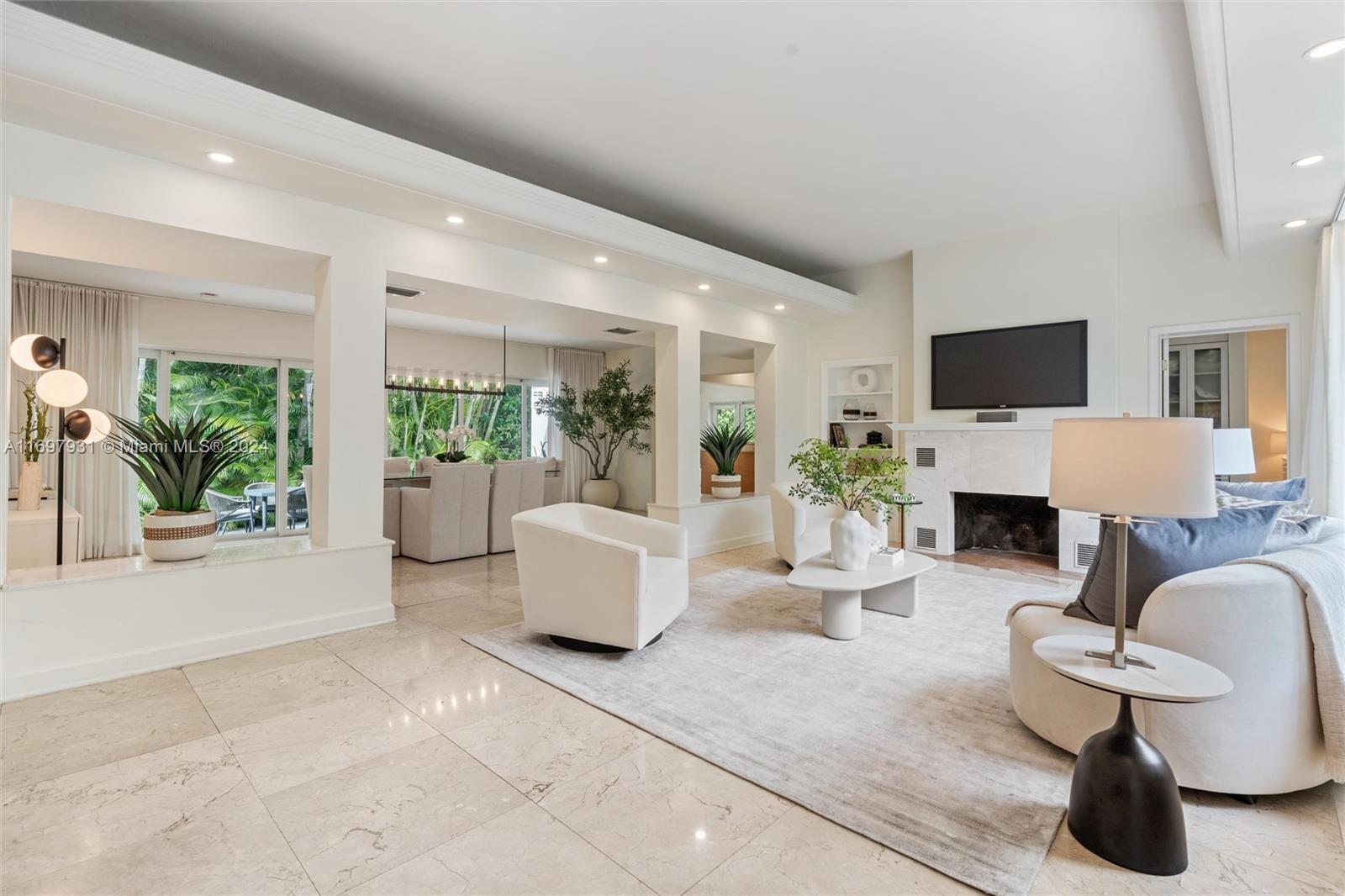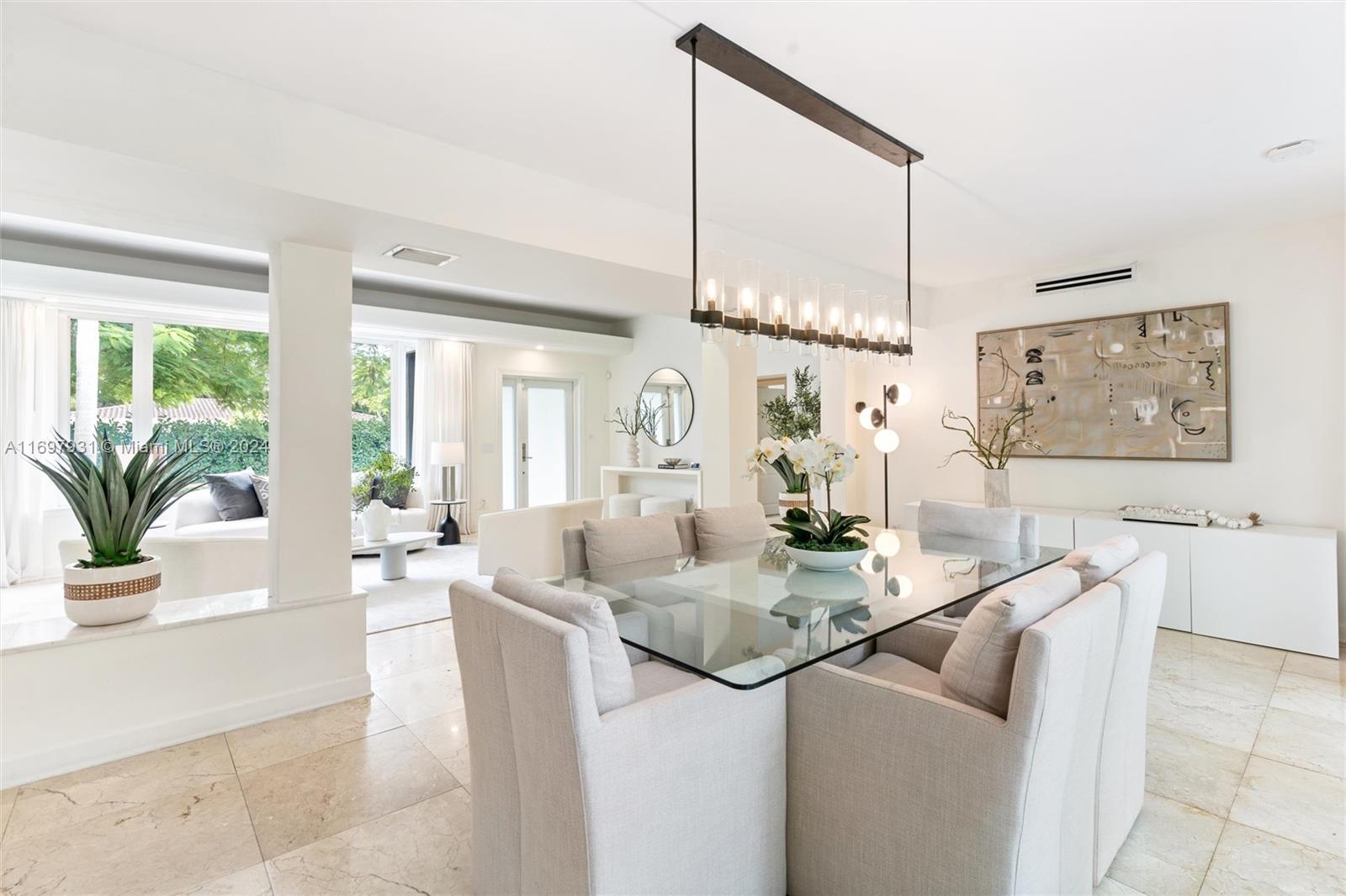 Located within the gates of the coveted Morningside neighborhood, this stunning 3-bed, 2-bath home has been beautifully updated for luxurious living and entertaining. The open floor plan, impact windows, and stacking sliding doors flood the home with natural light while seamlessly blending indoor and outdoor spaces. Interior recent upgrades include a new Italian stove, bar area, Jacuzzi tub, ADT security, and a Lutron smart home system. Recent outdoor updates, enjoy a heated and chilled saltwater pool, lush landscaping, and a new front patio that creates a private oasis. The air-conditioned garage adds storage or workspace versatility. Steps from Morningside Park with bay views, tennis courts, basketball courts, playground and more, this home combines modern elegance with timeless charm.