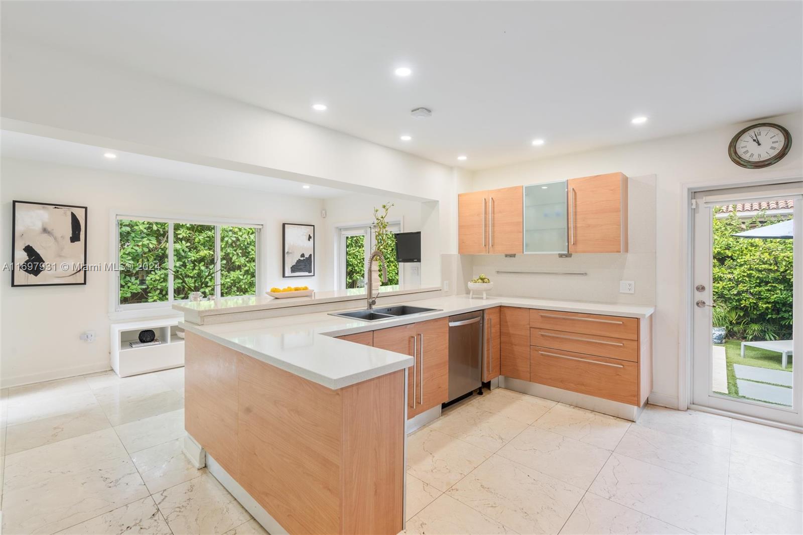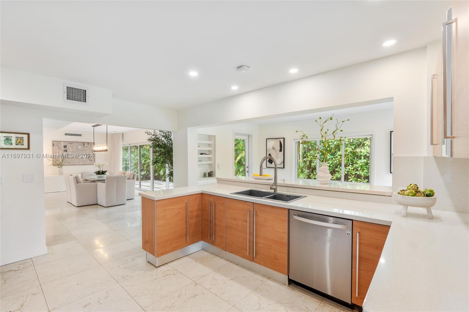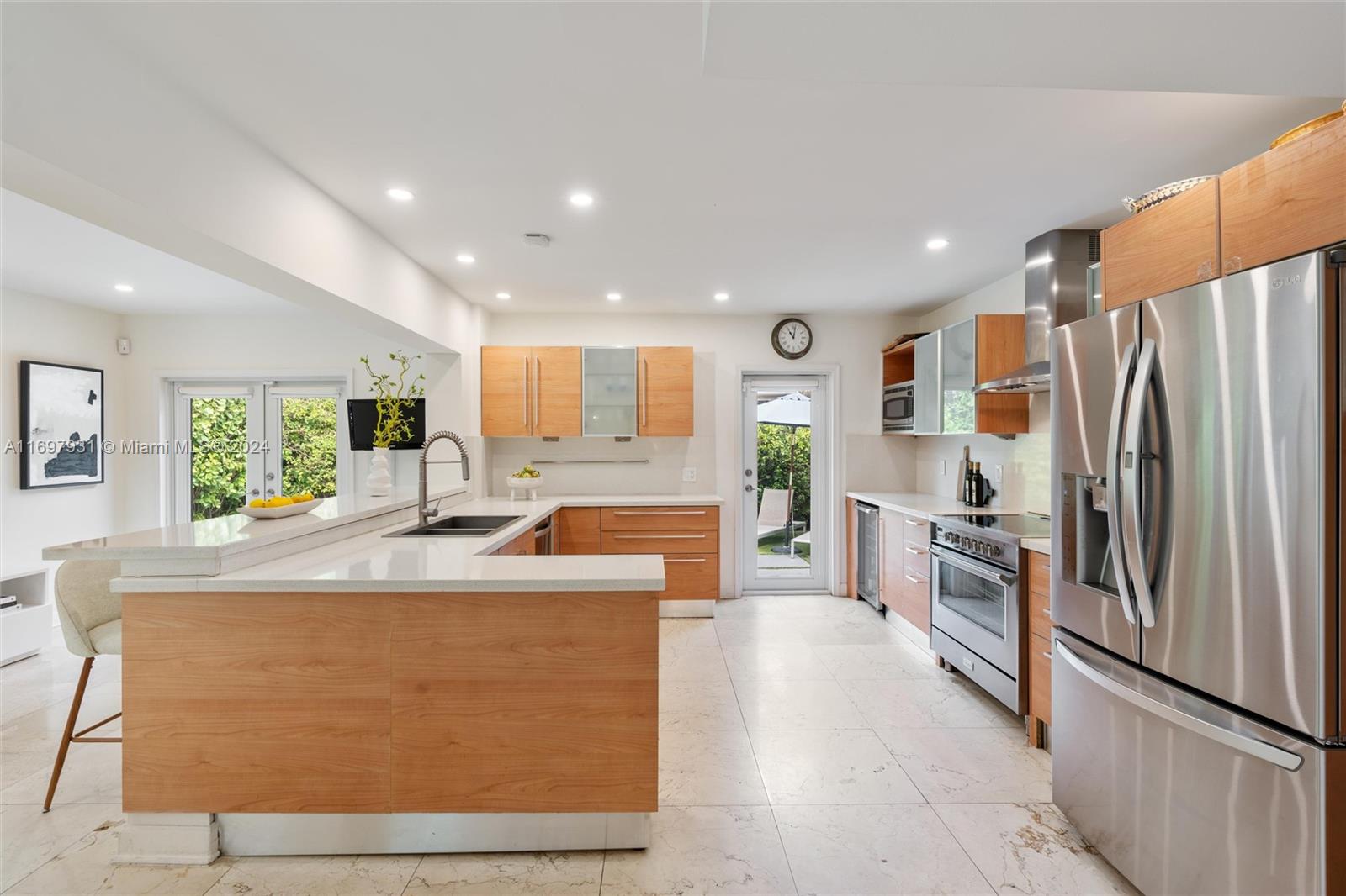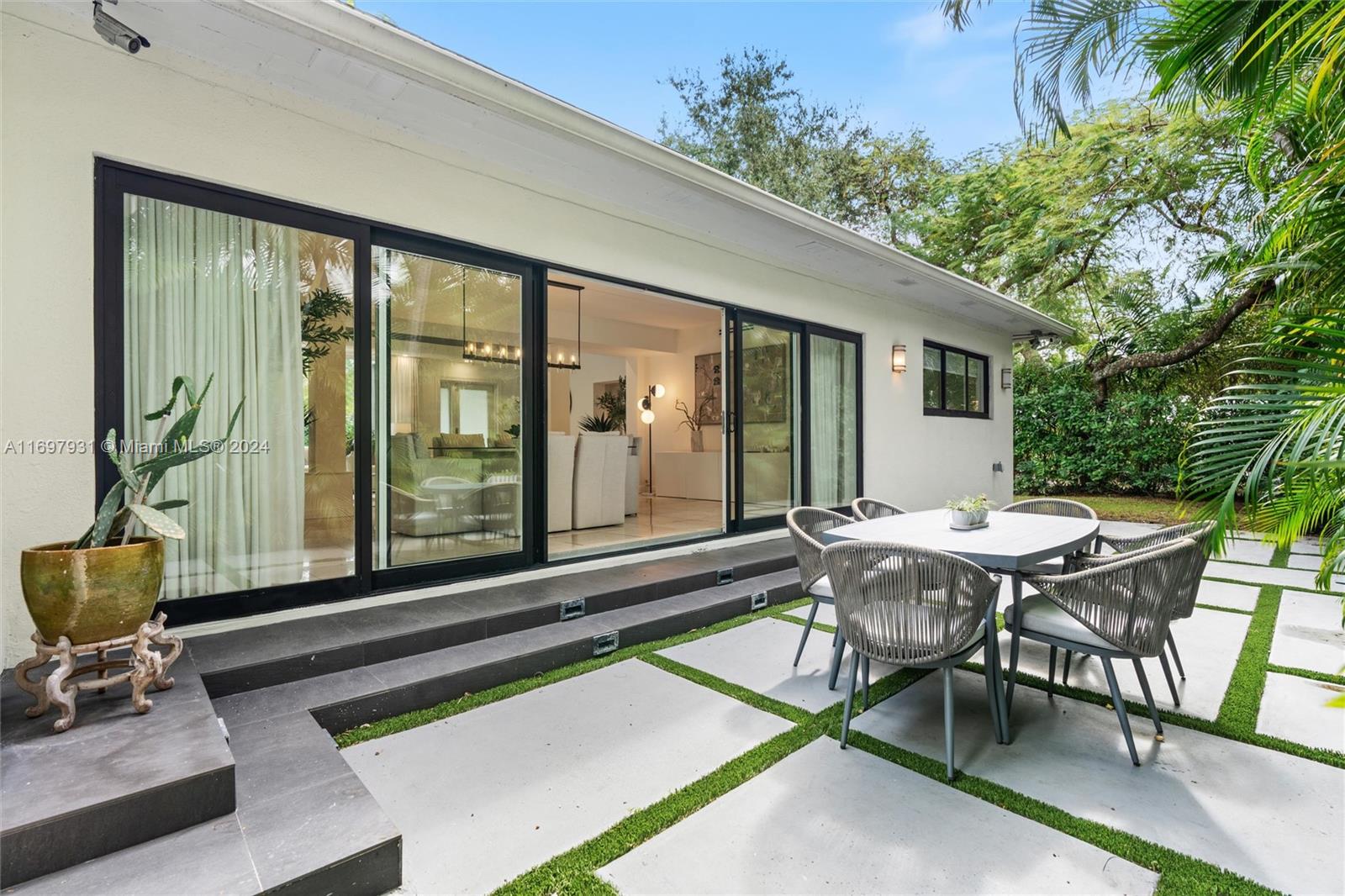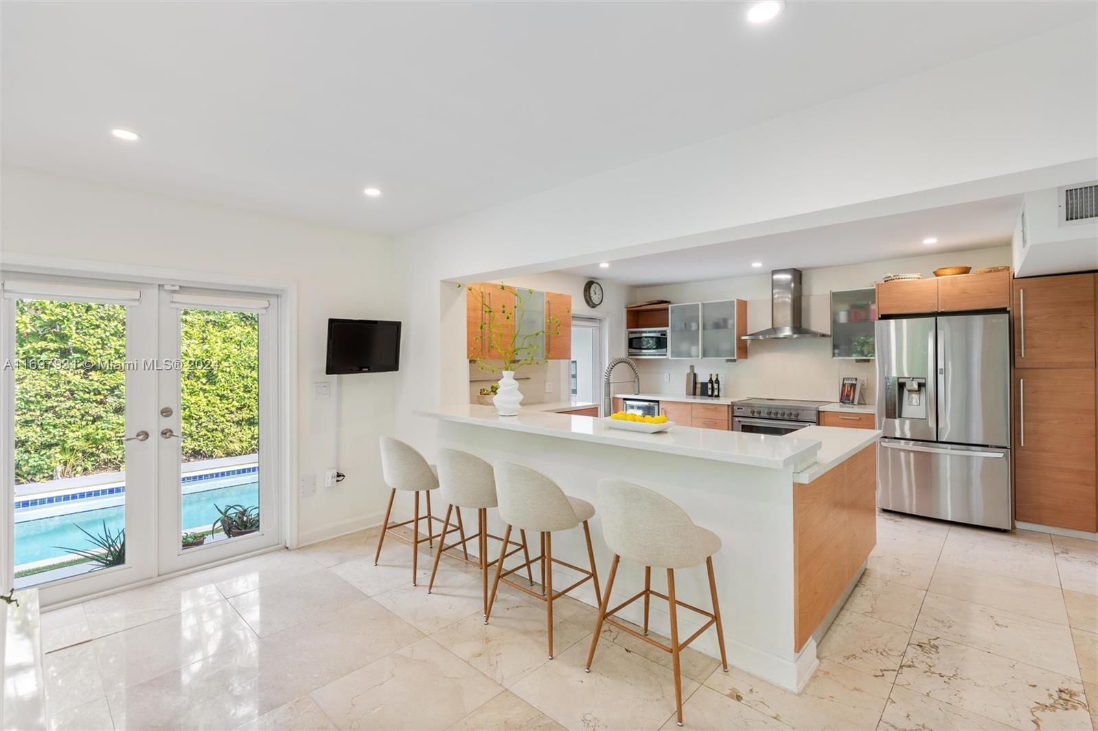 Located within the gates of the coveted Morningside neighborhood, this stunning 3-bed, 2-bath home has been beautifully updated for luxurious living and entertaining. The open floor plan, impact windows, and stacking sliding doors flood the home with natural light while seamlessly blending indoor and outdoor spaces. Interior recent upgrades include a new Italian stove, bar area, Jacuzzi tub, ADT security, and a Lutron smart home system. Recent outdoor updates, enjoy a heated and chilled saltwater pool, lush landscaping, and a new front patio that creates a private oasis. The air-conditioned garage adds storage or workspace versatility. Steps from Morningside Park with bay views, tennis courts, basketball courts, playground and more, this home combines modern elegance with timeless charm.