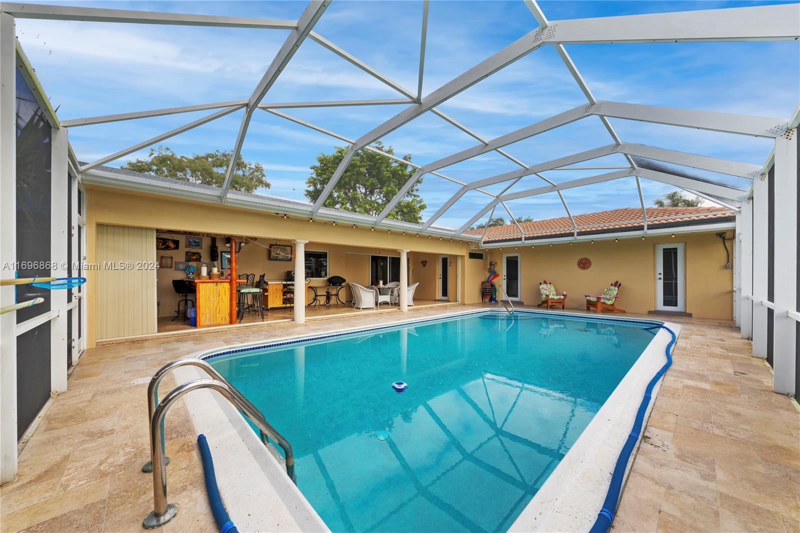 Welcome to this beautiful 4 bed, 2 bath pool home located on a private lake in the highly sought-after Royal Palm Estates. The home boasts a fantastic floorplan with spacious living areas and impact windows throughout. Step outside to an entertainer’s paradise with a fully equipped outdoor bar, perfect for hosting family & friends. The incredible landscaping creates a serene oasis, while the lake views provide the perfect backdrop for relaxation. Features a laundry room and a 2 car garage. Located in a quiet, family-friendly neighborhood, you’ll be just minutes away from top shopping, dining, & entertainment. Don’t miss the opportunity to own this stunning home in one of Plantation’s most desirable communities. Florida living at its finest, your clients will love this home. NO HOA