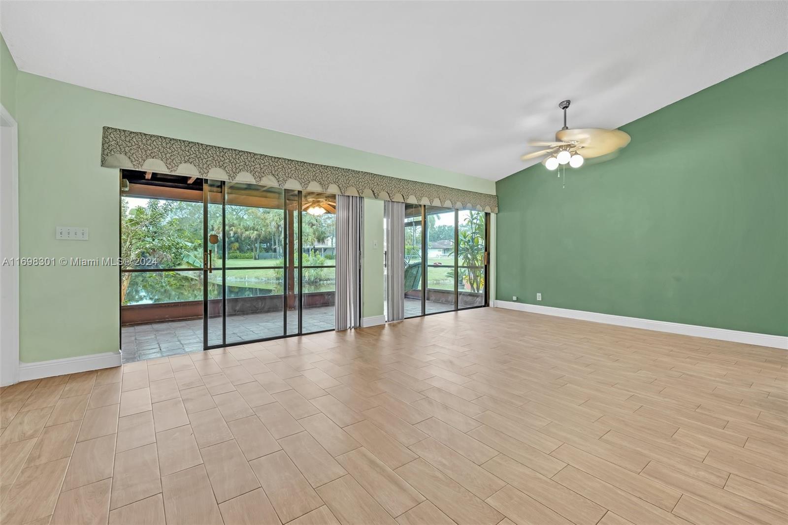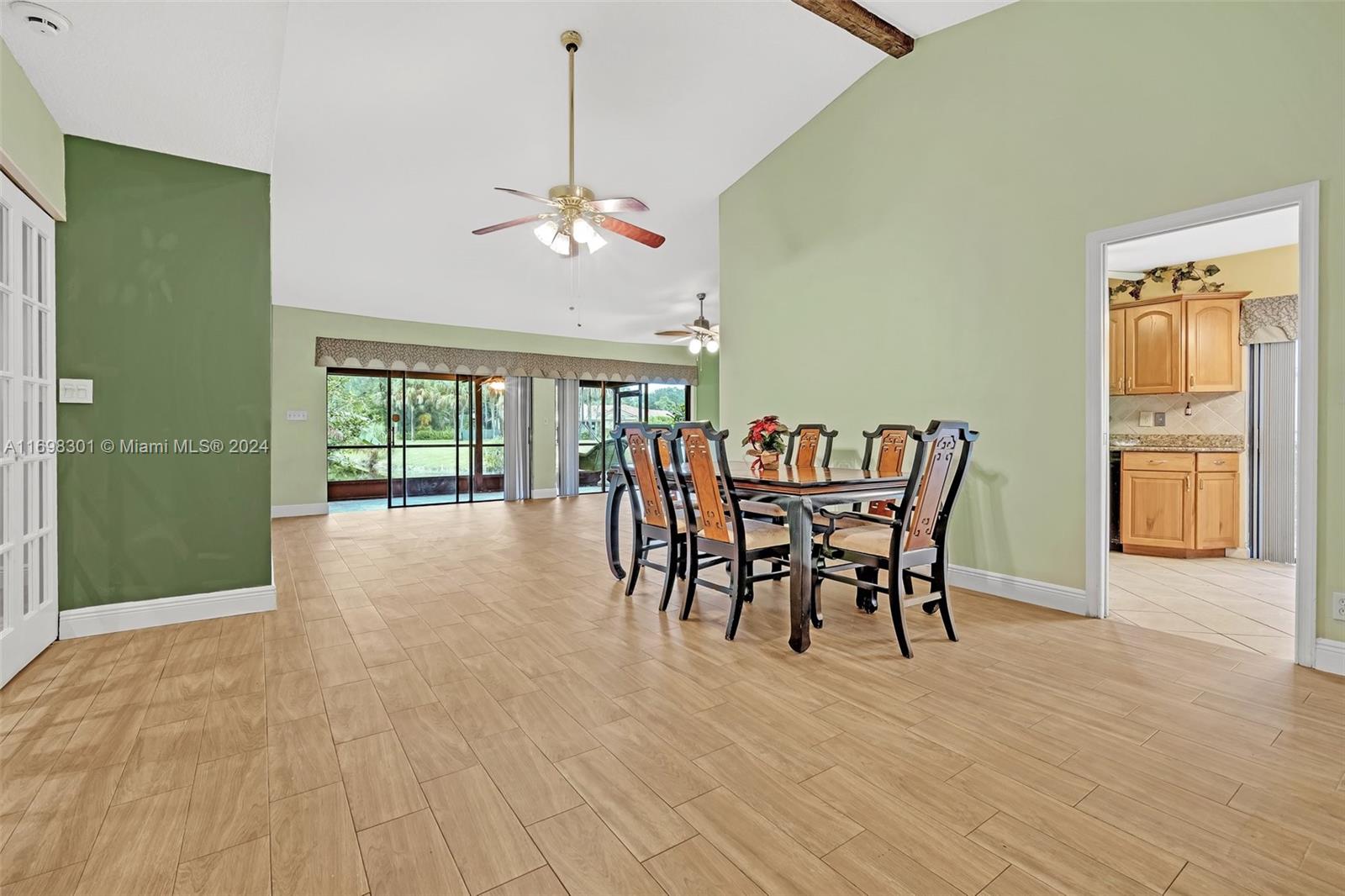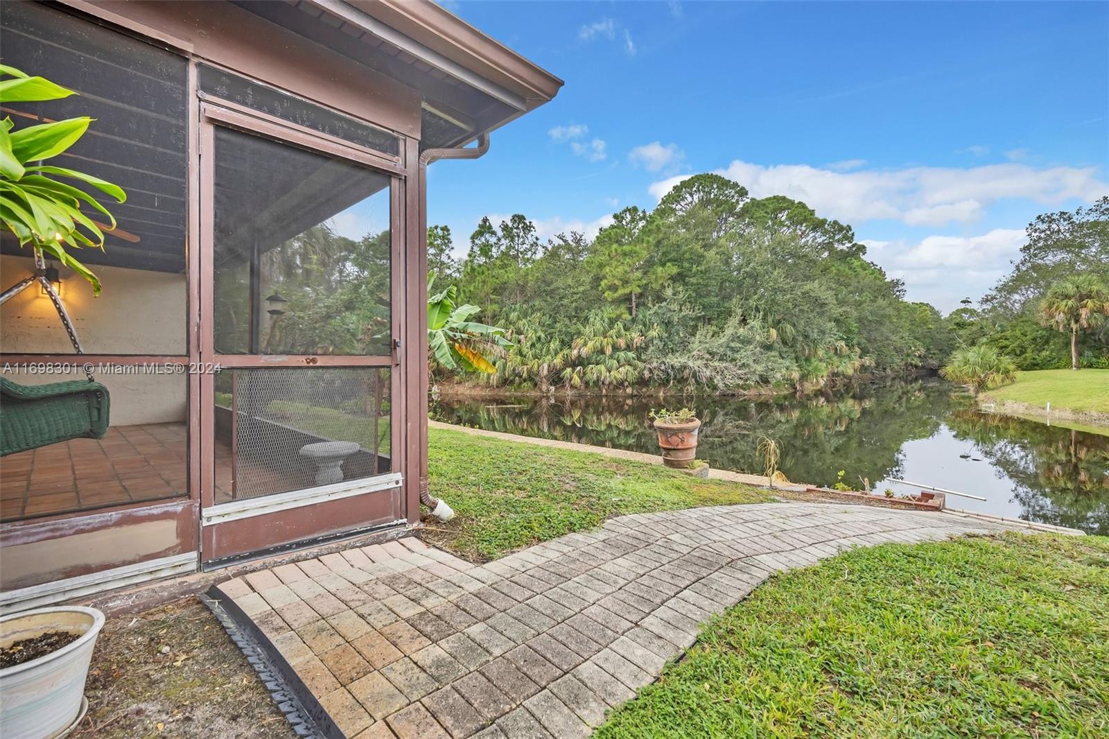 Discover the charm of this peaceful neighborhood! This 3-bedroom, 2-bath home features a spacious living/dining area with vaulted ceilings and beautiful updates throughout. Enjoy the porcelain tile floors, 6" baseboards, and a modern kitchen with granite countertops, black appliances, and an eat-in area. The master suite offers a sunny bedroom and a renovated bathroom with a double sink. Relax on the screened porch with a built-in roofed swing overlooking a serene canal with stunning water and sunset views. Additional features include hurricane panels, a 2-car garage, and a large driveway. HOA maintains the lawn. Pet-friendly (2 pets allowed, 40+ lbs with approval). Easy to show—don’t miss this gem!