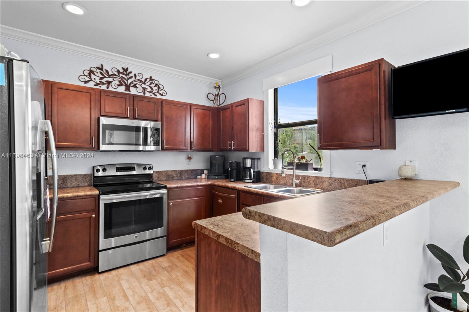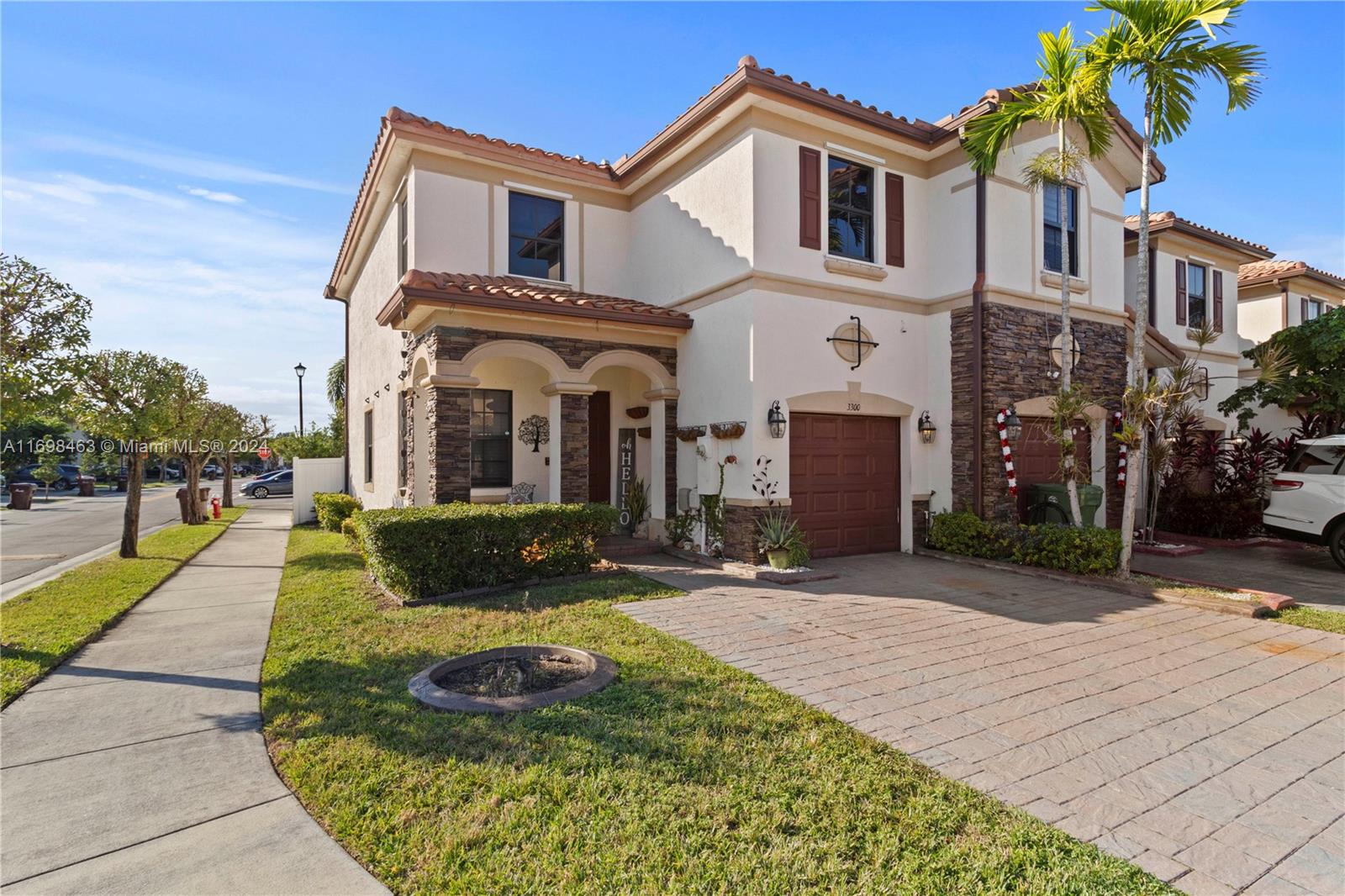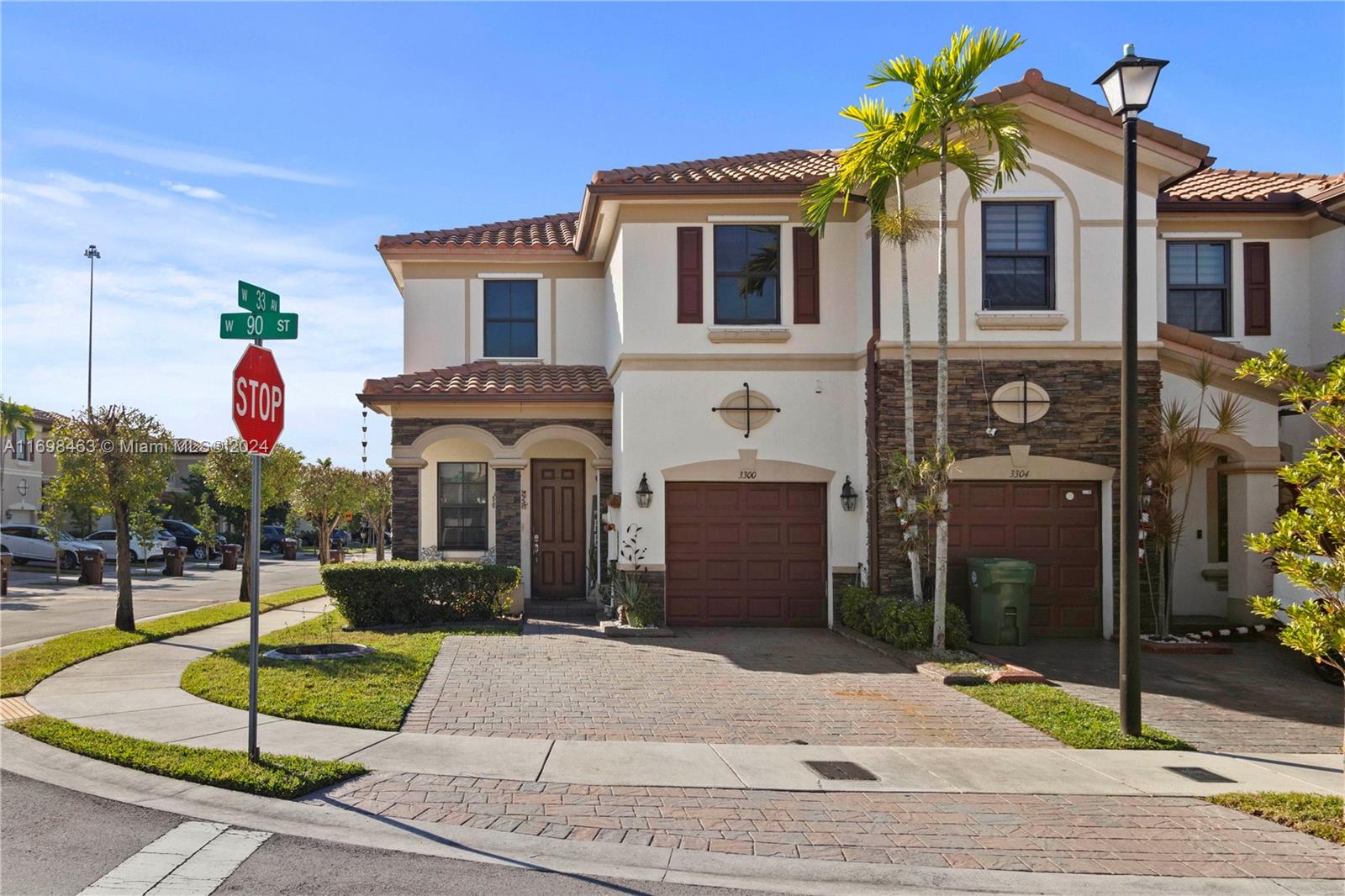 Corner unit! Low HOA fee! This beautiful Townhome is located in one of the most desired communities in Hialeah (Aragon / Bellagio) which is close to great schools (public, charters and private) major access roads like the Turnpike, I-75, Hialeah Gardens Boulevard, Okeechoobee and more. The street mall with Publix, Home Goods, Ulta and other restaurants and stores is right across the street from the community's main gate. The Townhome has 3 bedrooms, 2.5 bathrooms, spacious areas inside and outside. Primary bedroom comes with his and hers closets and double sink in the primary bathroom. Garage to park one car plus space outside to park 3 more cars. Community amenities include a beach style pool, clubhouse, exercise room, kids' park and plenty of green area with beautiful lake view!