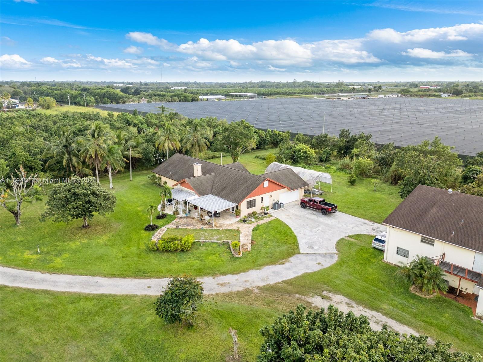 almost 20 acre compound in Redland with 4800 sq,ft. hanger potential access to air field. COULD BE A GREAT TOURISM LOCATION, NEEDS MINOR CLEAN UP ON GROUNDS... This property features a huge hanger (built for planes) has a new walk in cooler in hanger, 4/2.5 main house, 1/1 apt or offices, grove and palm tree farm, sitting on a private 2,000 ft run-way, known as Richards Field Private Airport. You can also sub-divide into 4 5 acre lots with use if r/w. The possibilities are endless. Current use is an income generating property w/ Warehouse being utilized as a packing house, Tenants in the main house, Agri exempt. Perfectly situated in the heart of Redland zoned Agricultural for multiple uses. Easy to show. ideal for possible venue. .Live, work, play here!!! HOUSE AVAIL FOR RENT 6500.