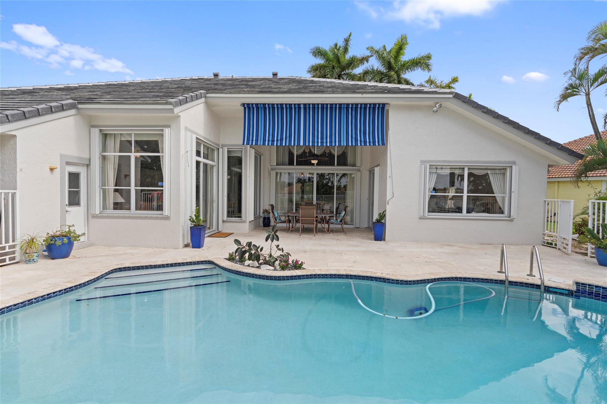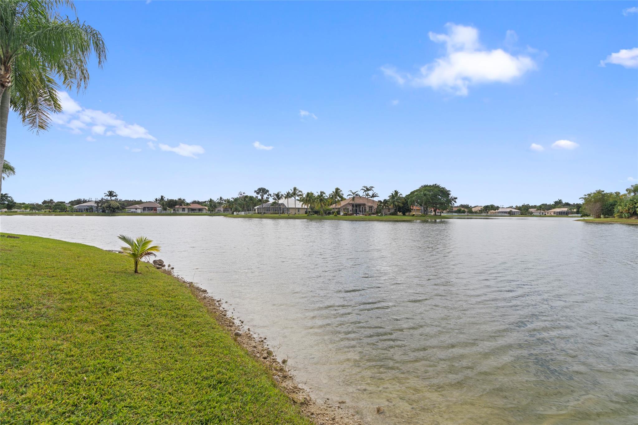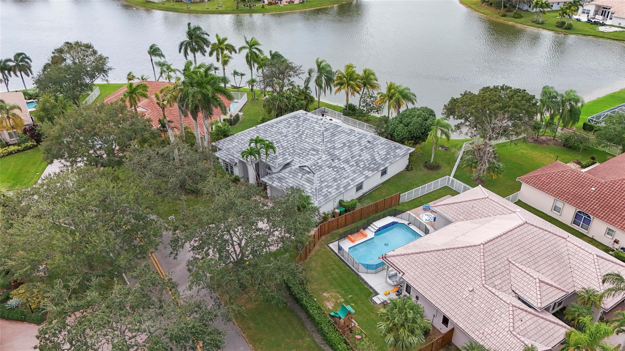 Elegant 5 BR pool home on super wide oversized lot w long lake views. New 2023 roof w 10 yr warranty. Largest 1 story plan built w spacious estate style layout & big lakeside yard. Foyer entry, volume ceilings, marble floors throughout the main living areas, big formal dining & living room, open kitchen w granite counters, elegant & modern white gloss cabinetry w pantry wall, cafe nook overlooks pool & lake. Big family room, perfect for the largest gatherings. Spacious master suite & bath w walk-in closets, 5th BR/den & 1/2 BTH, split bedroom wing, good sized BR# 3-5 & 2 baths. Free form pool w raised spa, sun deck w patio awning, tropical landscaping & fruit trees. Walk to A rated elementary school. Gated community w tennis, playground, all lots are a minimum of 90 ft wide, low HOA dues.