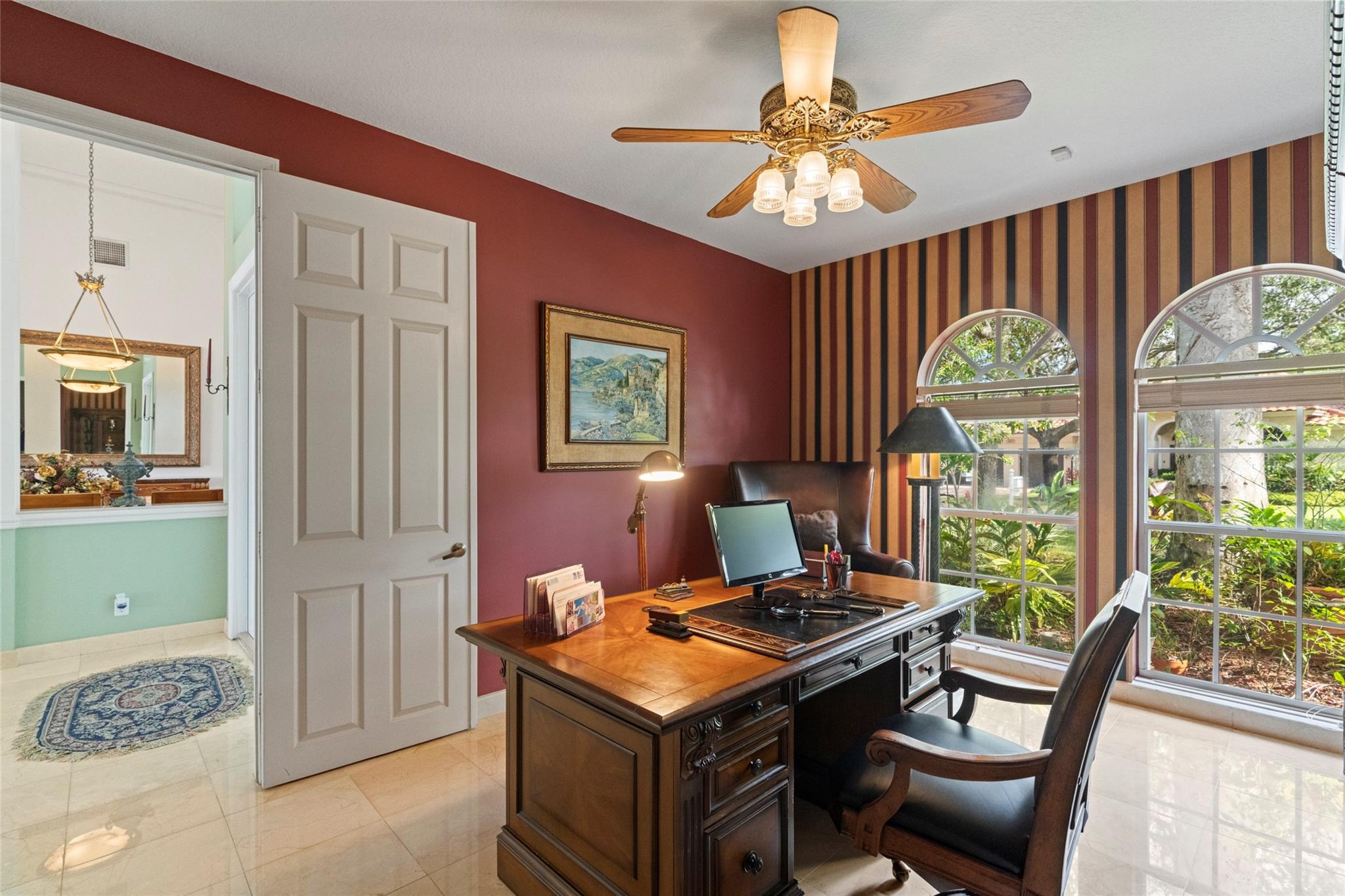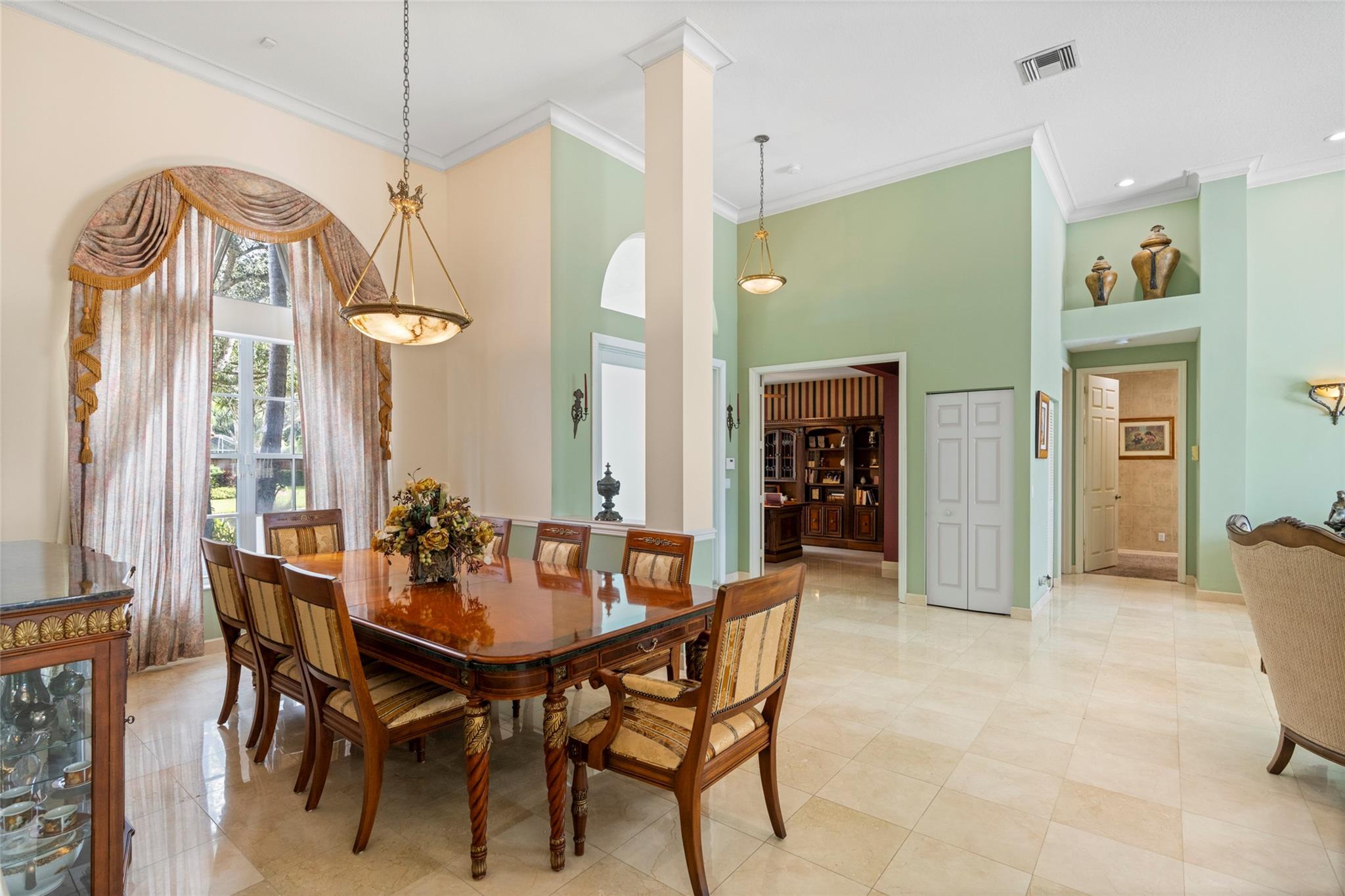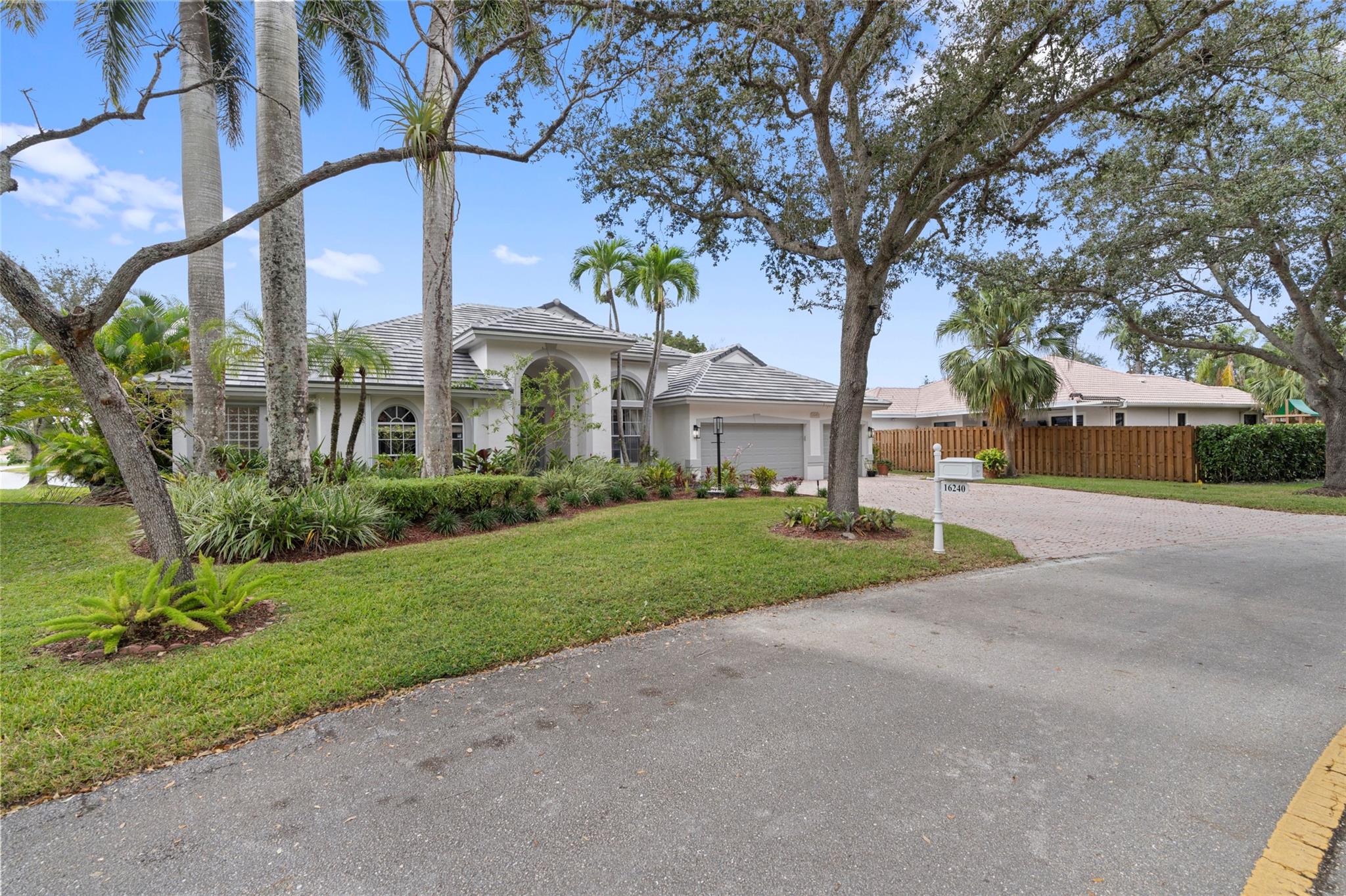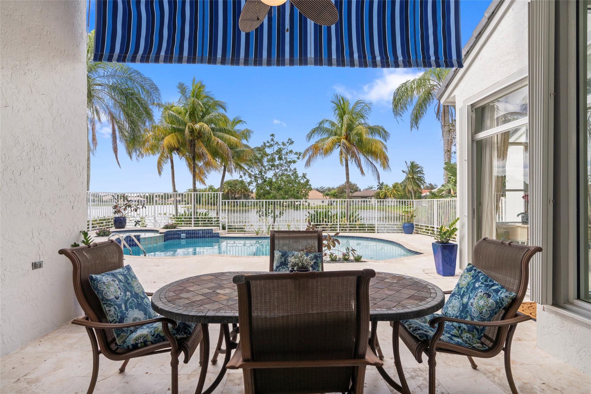 Elegant 5 BR pool home on super wide oversized lot w long lake views. New 2023 roof w 10 yr warranty. Largest 1 story plan built w spacious estate style layout & big lakeside yard. Foyer entry, volume ceilings, marble floors throughout the main living areas, big formal dining & living room, open kitchen w granite counters, elegant & modern white gloss cabinetry w pantry wall, cafe nook overlooks pool & lake. Big family room, perfect for the largest gatherings. Spacious master suite & bath w walk-in closets, 5th BR/den & 1/2 BTH, split bedroom wing, good sized BR# 3-5 & 2 baths. Free form pool w raised spa, sun deck w patio awning, tropical landscaping & fruit trees. Walk to A rated elementary school. Gated community w tennis, playground, all lots are a minimum of 90 ft wide, low HOA dues.