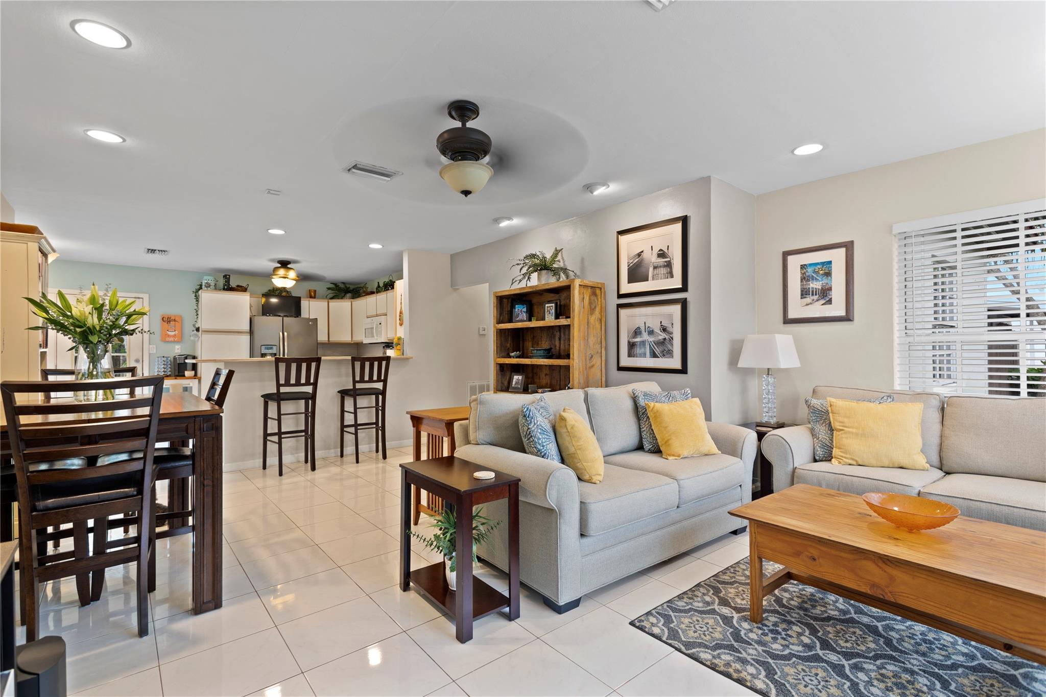 comfortable 2/1 in a delightful east side neighborhood. fenced yard, double driveway, laundry room/storage room combo, tile in living area, terrazzo in both bedrooms. open kitchen, counter seating walk to new Publix large shed in yard