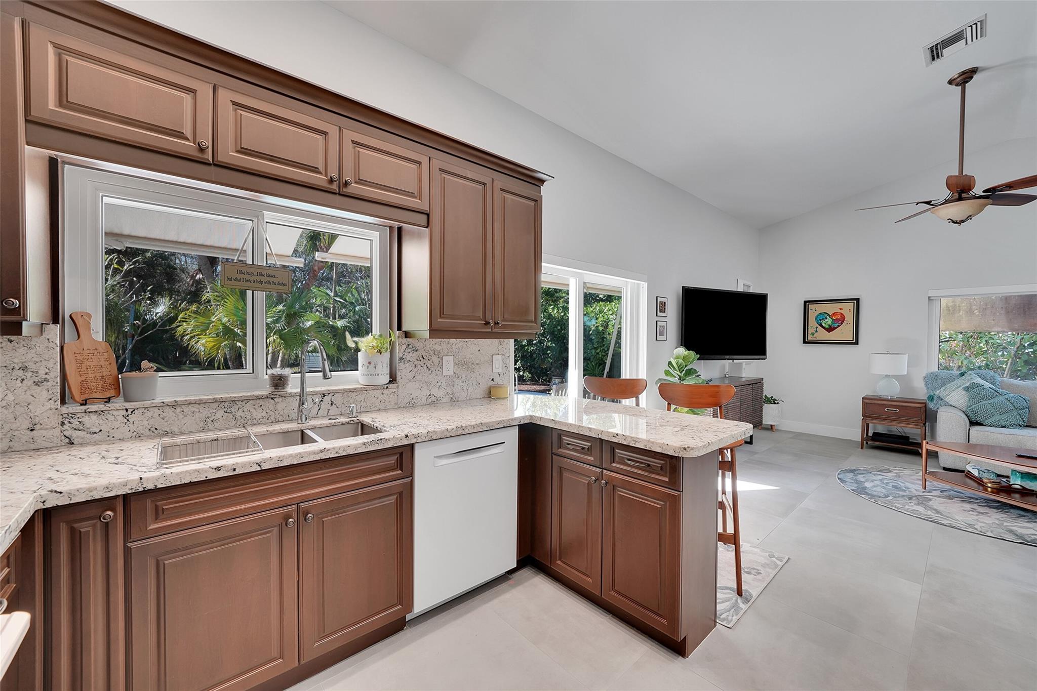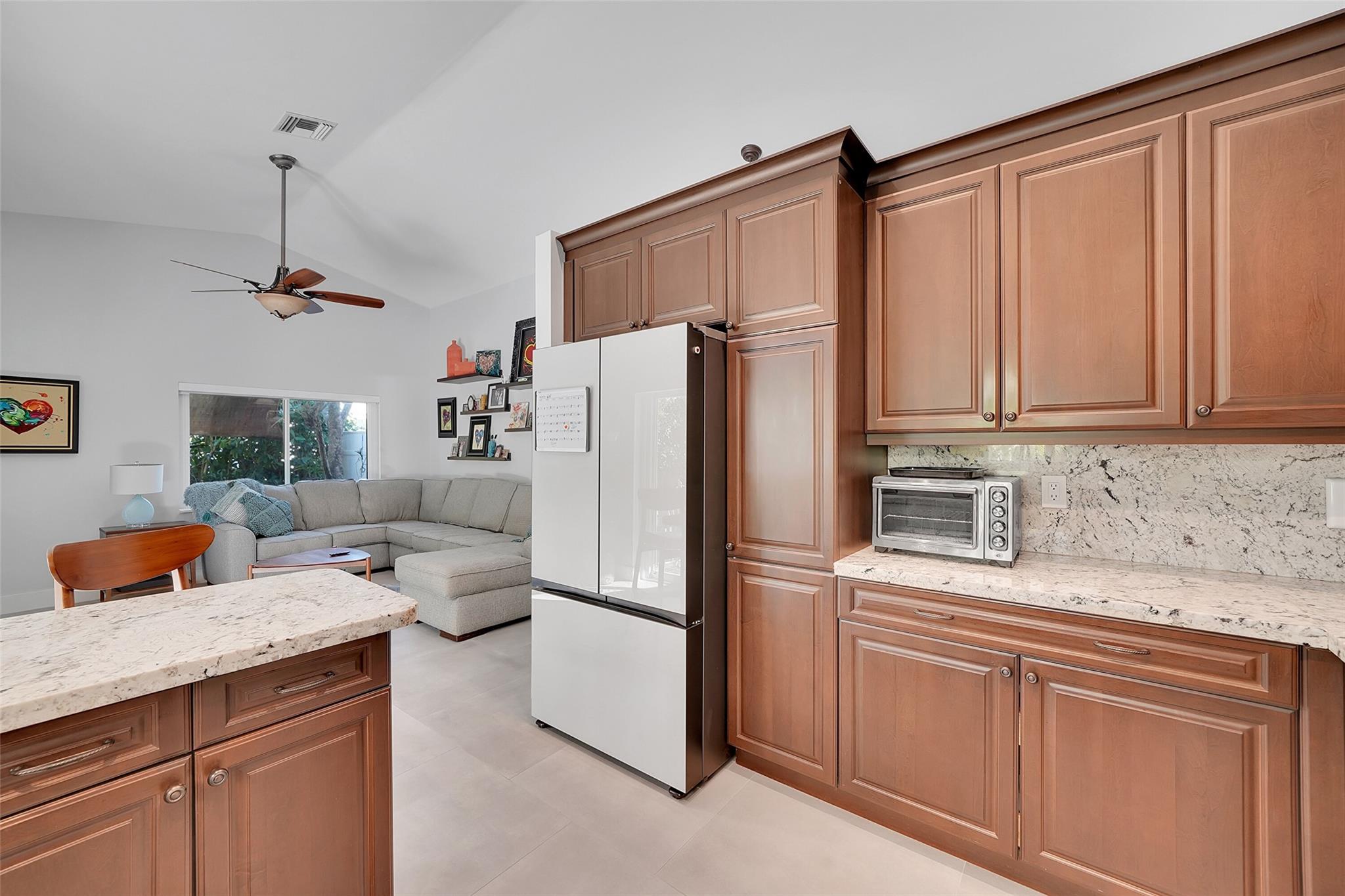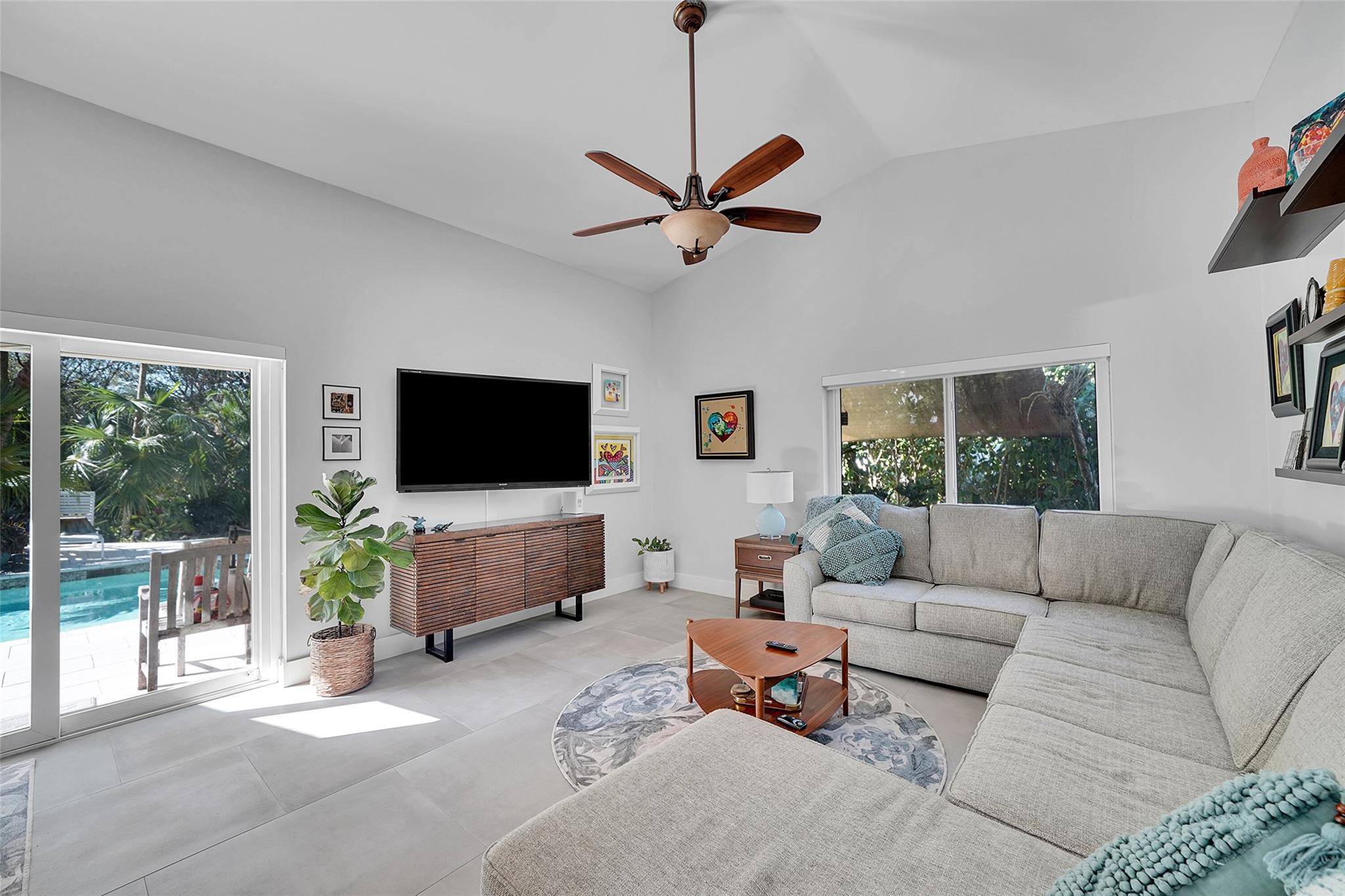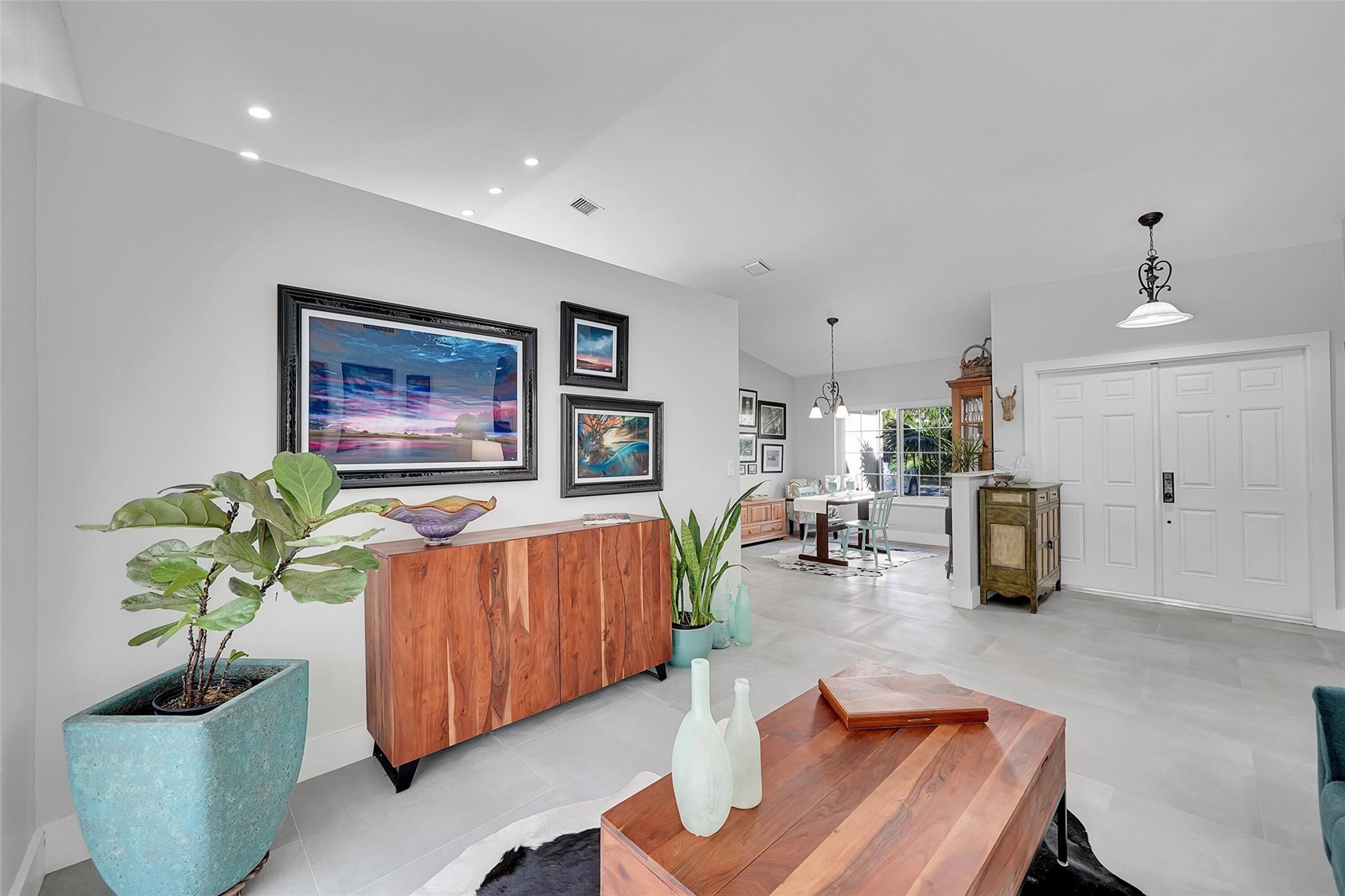 Step into a dream in this remarkably upgraded, beautifully appointed home. No room untouched, no detail spared! Clean, neutral tones complimented by gorgeous 30x30 newer flooring throughout. Custom blinds. The gourmet kitchen is a chef's delight complete with granite counters, rich cabinetry, organizers and a newer refrigerator. Time to make culinary masterpieces. Charming formal dining room. Formal living room & a large family room adjoining the kitchen. Spacious master bedroom includes a deep walk in closet plus a luxurious master bath. Custom stylish designer bedroom doors! Newer washer and dryer in bedroom hall behind decorative barn door. Lush, tropical backyard oasis rivals a private resort! Heated pool. NEWER ROOF IN 2020! FULL IMPACT WINDOWS AND DOORS! So much more to love. Really!