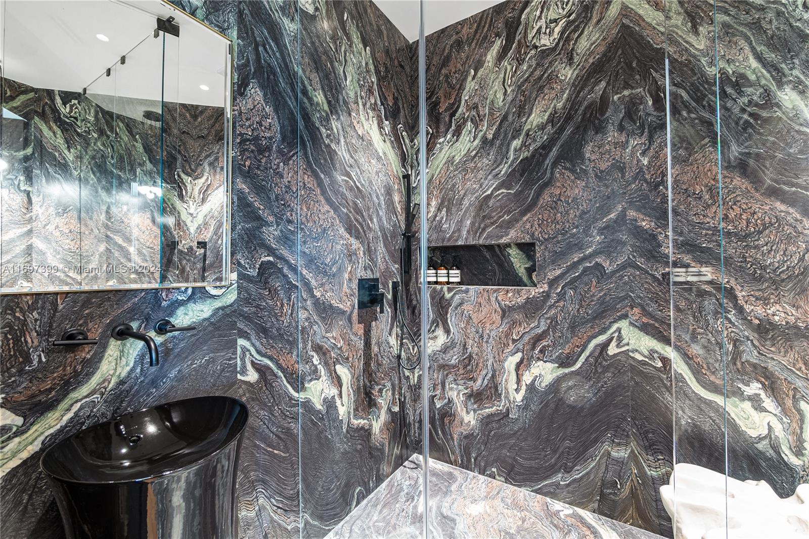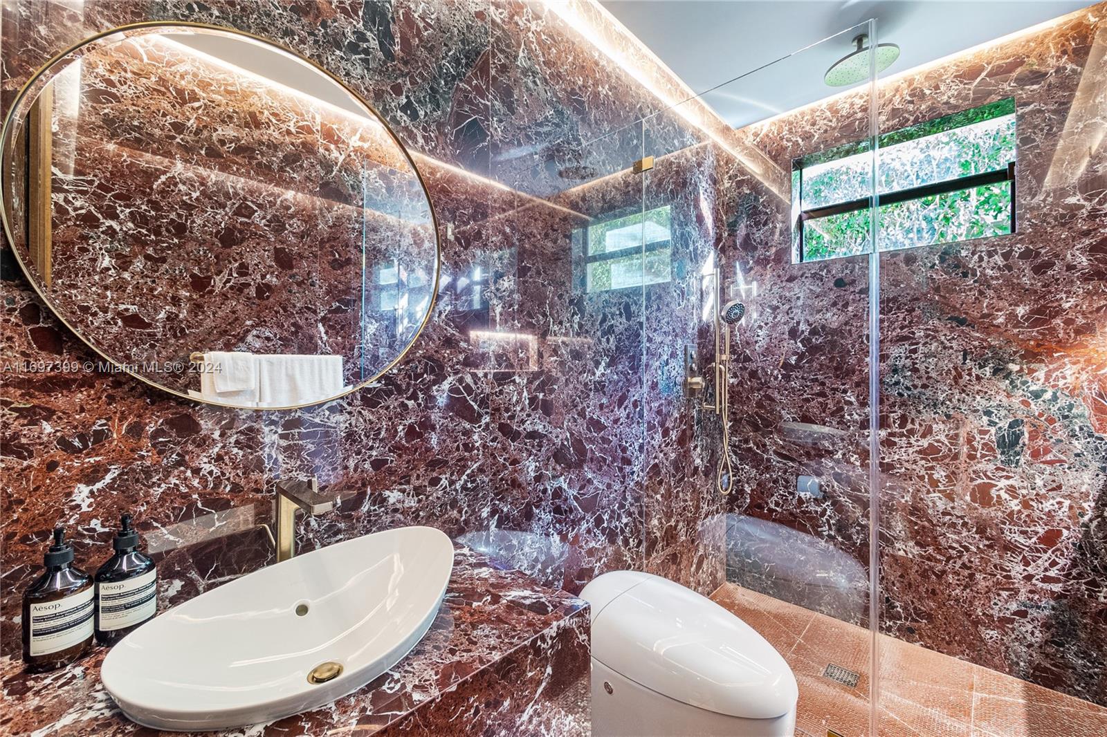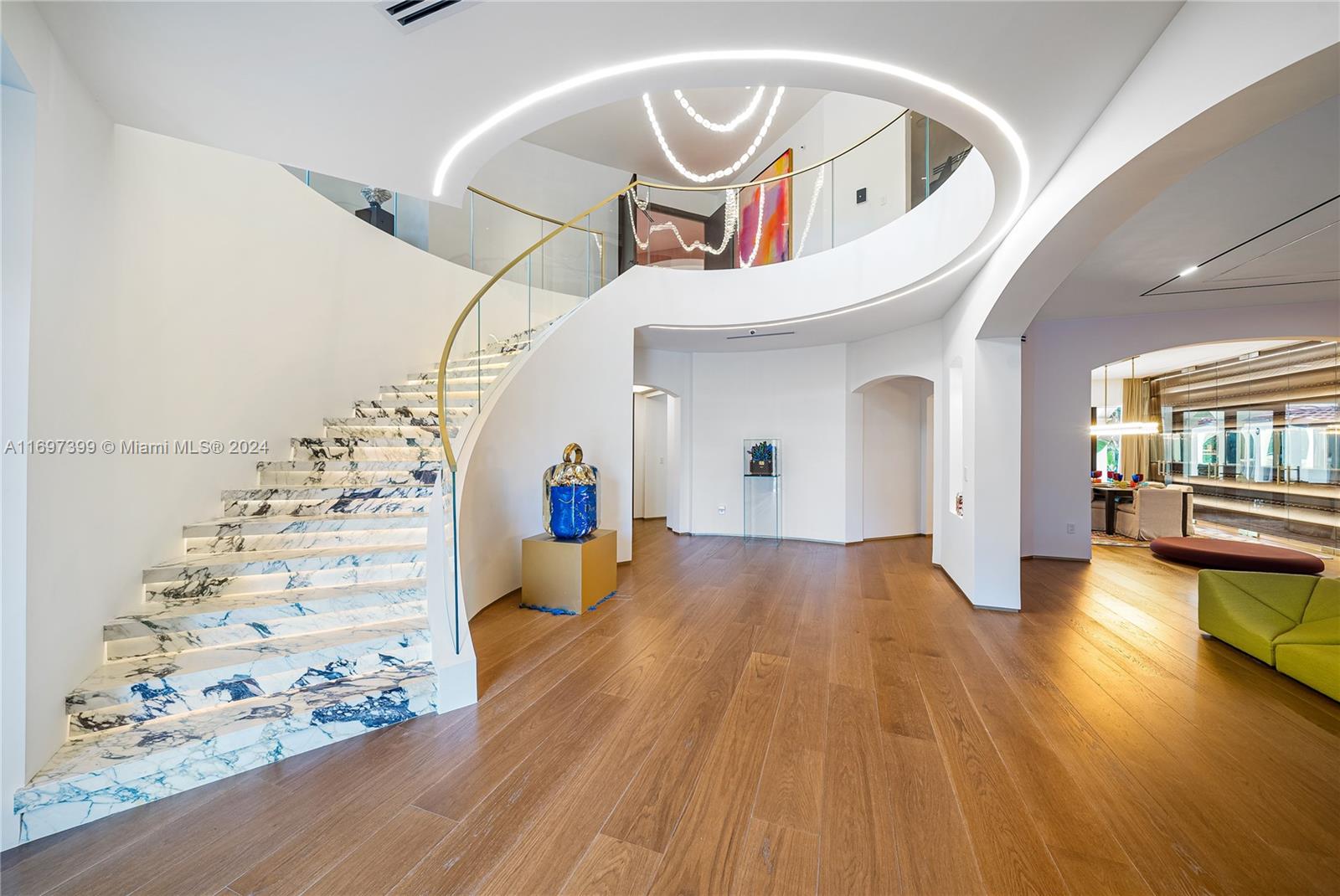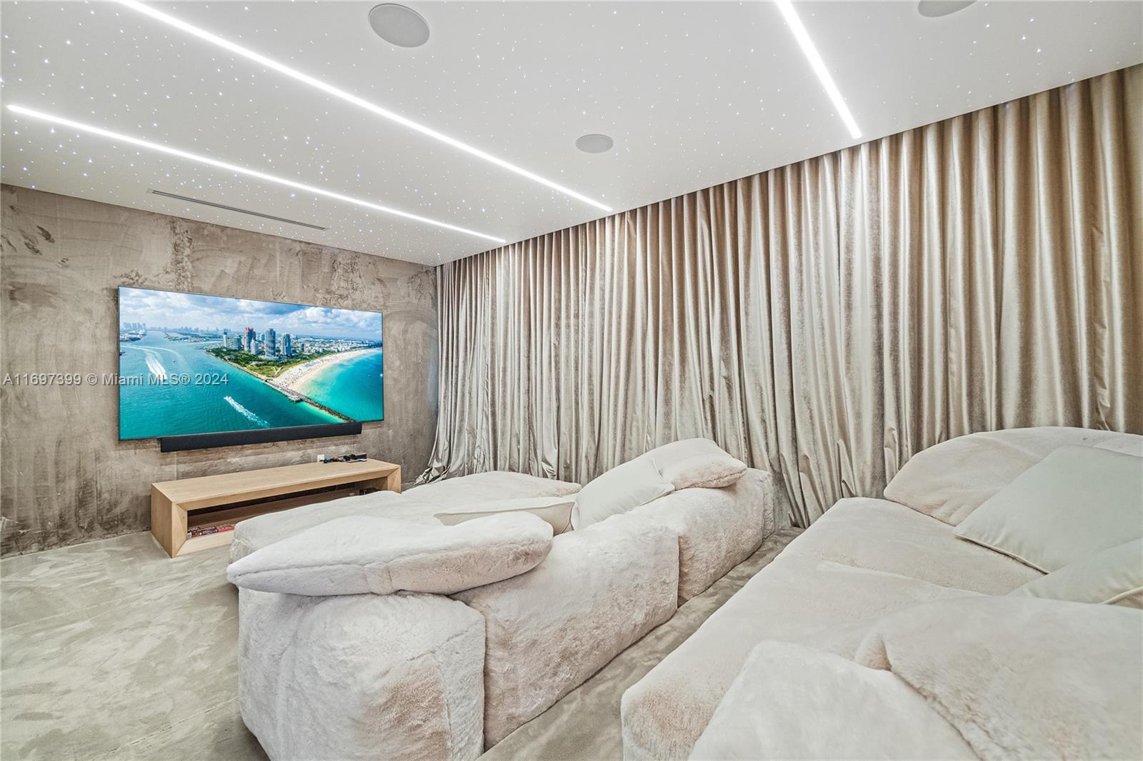 Experience unparalleled luxury in this 6,924 sqft waterfront estate on the exclusive, gated Allison Island in Miami Beach. Boasting 75 ft of open bay frontage on a sprawling 16,200 sqft lot, this two story masterpiece offers breathtaking Miami sunset views. Remodeled to perfection, it features double-height ceilings, a formal dining room, a state-of-the-art movie theater, a bespoke speakeasy, a gym & a luxurious sauna. The principal suite includes dual walk-in closets, a private balcony & panoramic water views. Designed for entertaining, enjoy a marble pool, jacuzzi, detached summer kitchen, covered dining area & private dock with a boat lift. Advanced home automation, custom finishes & unique details like marble bathrooms & a starry theater ceiling make this home a rare find.