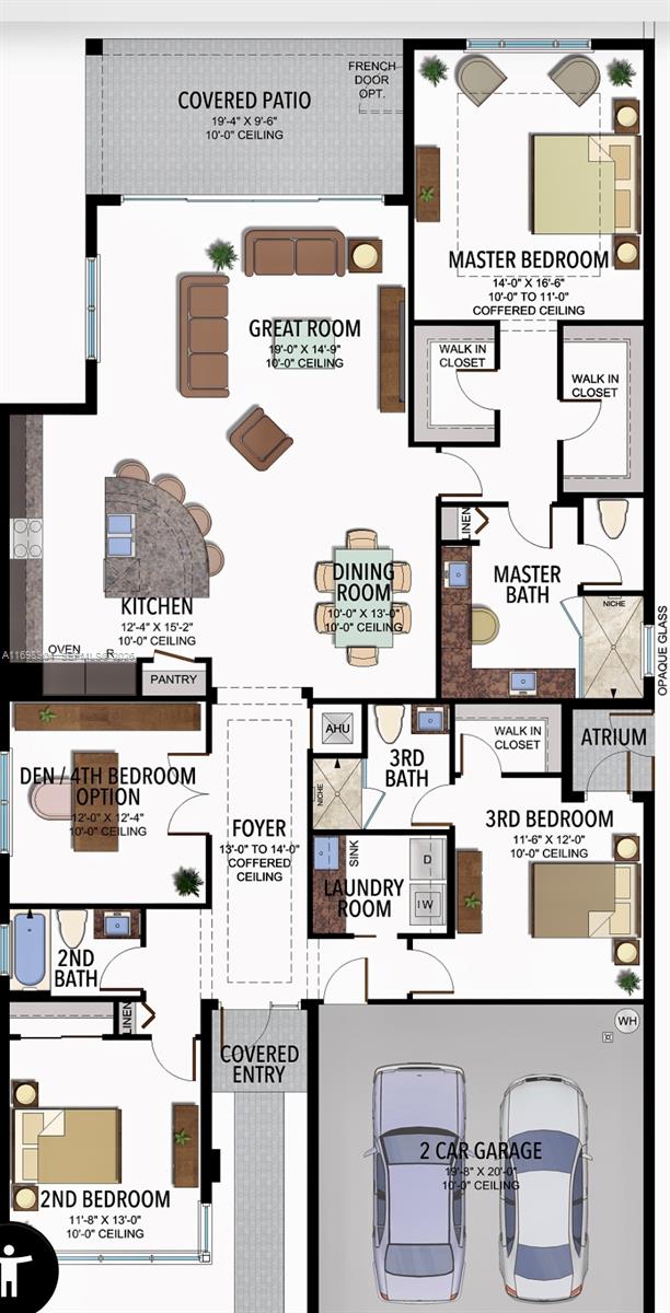 Discover luxury living in this expanded and upgraded Maui one level home with 4 bedrooms and 3 full bathrooms in the prestigious Lotus of Boca Raton. This meticulously maintained house features 10" coffered ceilings, gourmet kitchen with 42-inch cabinets, upgraded top of the line GE gas appliances, quartz countertops, and an oversized center island. Natural light floods the expanded living and dining space, creating an inviting ambiance that extends effortlessly to private outdoor patio through impact glass doors. Delight in serene views of lush backyard with a perfect setting for al fresco dining or relaxation. The large primary suite exude tranquility, featuring a well-appointed in-suite bathroom and abundant closet space. State of the art clubhouse is just around the corner.
