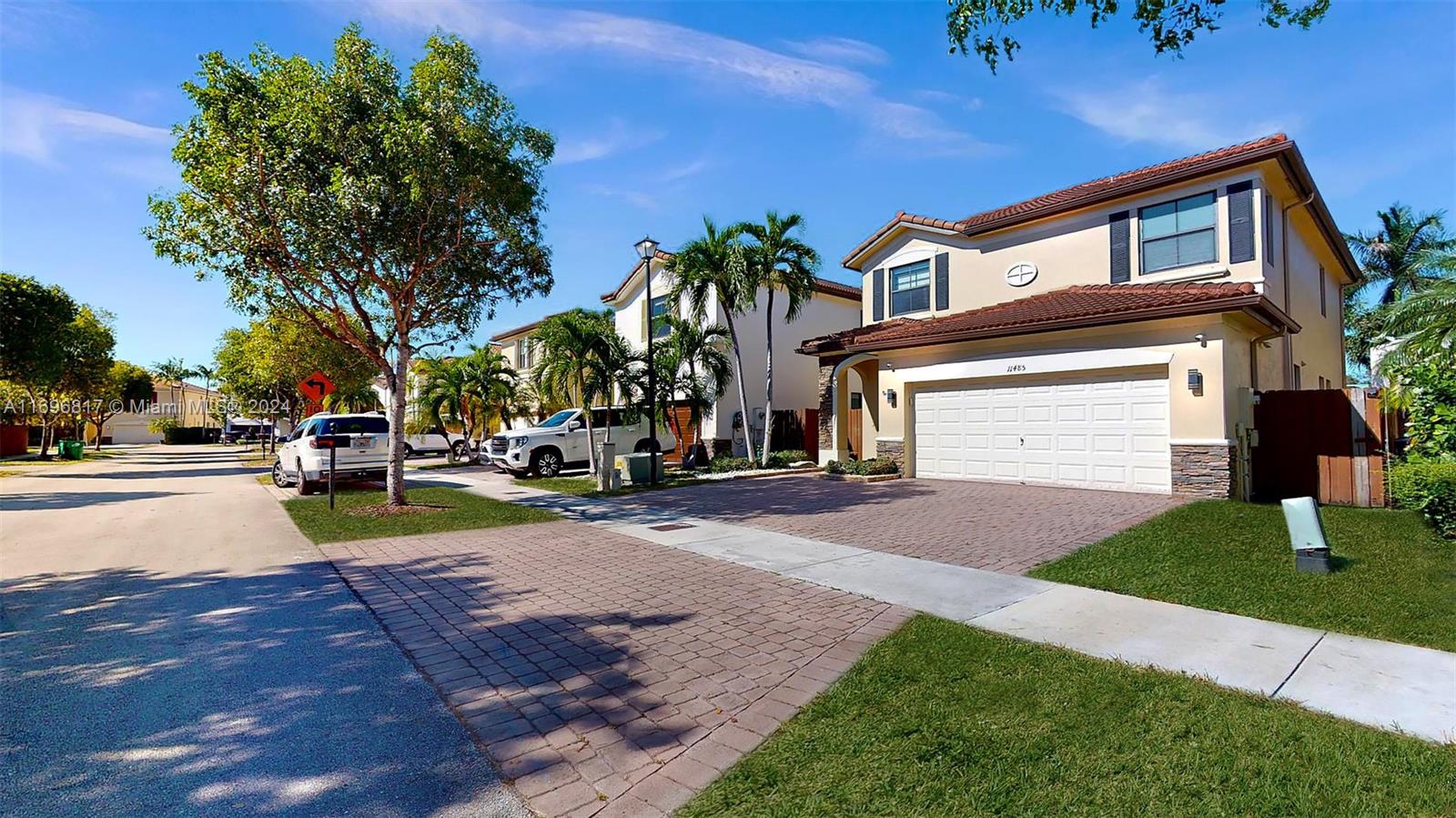 Discover this stunning 4-bedroom, 3-bathroom home in the exclusive St. Moritz community! Featuring ceramic flooring on the first floor and elegant laminate upstairs, this house is designed for comfort and style. The first floor includes a bedroom with a full bathroom, perfect for guests or multigenerational living, while the second floor offers three bedrooms and two baths. Enjoy the safety of impact windows and doors, a double garage, and driveway space for three additional cars. The backyard boasts a mix of pavers and grass. St. Moritz is a private community offering an HOA with a clubhouse, pool, and gym. Zoned for A+ schools and conveniently located near the Turnpike, this home blends convenience, security, and family living.