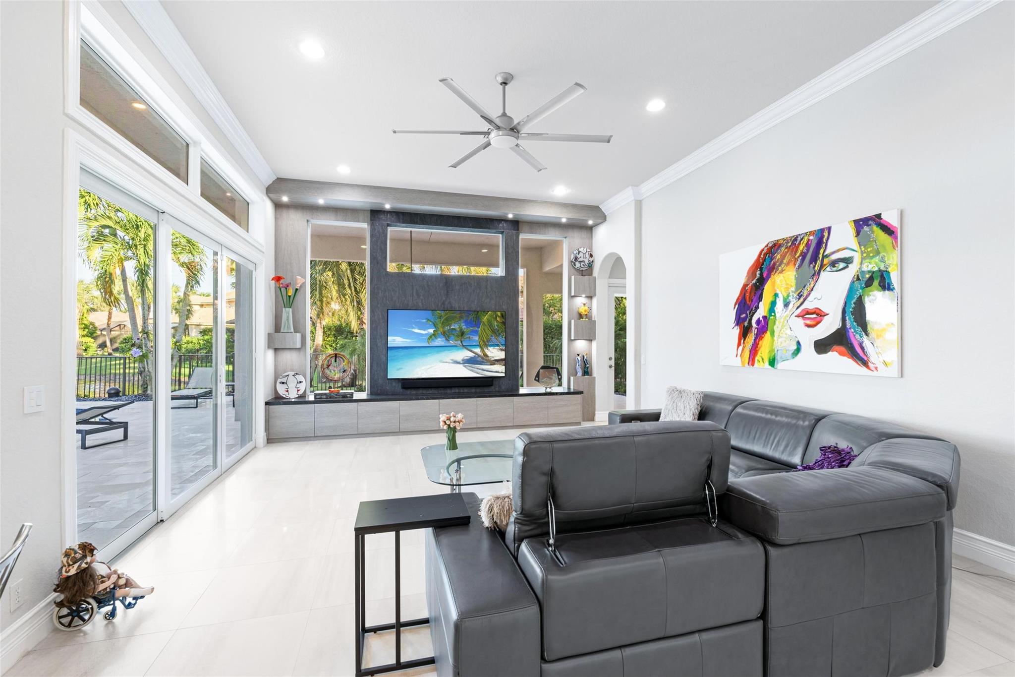 Over $350K in updates! Run; don't walk to 1/3 corner Lush, well manicured ,Lighted landscaped Pool home on Water. 5th room was built as Closet/could convert to an office/den! Finest newly updated hi quality upgrades w/attention to detail from the etched glass front door to Travertine Pool deck .Note 24 in. Porcelain tile, TWO 2yr new A/C units .New quick recovery water htr. Chefs Kitchen w/ multiple pull outs, 3" quartz, lighted Cabinets/ MORE. Impact Windows w/wood Casement., Plantation Shutters ,Wood Molding, Built Ins thru-out ! 7 Fans, surround sound in Fam Rm. Cameras inside/Out stay! ALL TV's/Tv Electronics Stay.! Resort style renovated Heron Bay amenities w/pickleball ,tennis , Pools, clubhouse, splash pad, Cafe' coming soon, fitness/more. Top Rated schools! "BEST of the WEST"