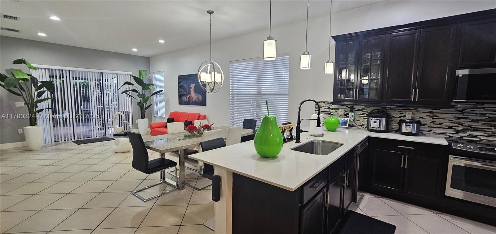 This two-story single-family home features 5 bedrooms and 3.5 bathrooms (1 bed and 1 full bath on the first floor) with a private laundry room on the second floor. The kitchen is equipped with high-end finishes and integrates with the inviting dining and living areas. The kitchenette offers a practical space for quick breakfasts. This single-family home has been meticulously maintained, ready to move in and start making unforgettable memories. The backyard is perfect for summer barbecues, with ample space, ideal for family gatherings. Step into this modern, open-concept home, filled with natural light. Every detail has been thoughtfully designed. The driveway can be widened, and a new modern fence can be installed (the seller has obtained HOA approval). Gated community with low HOA dues.