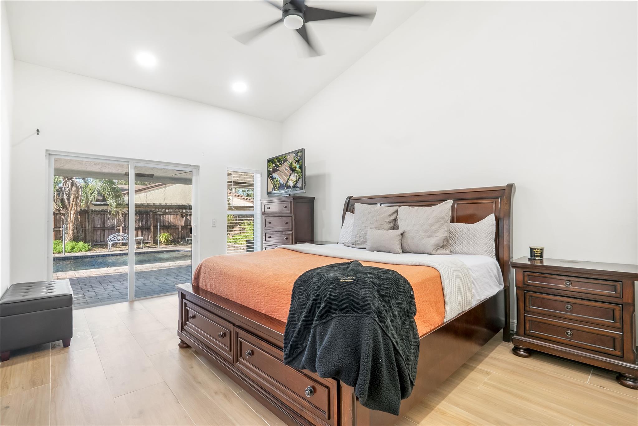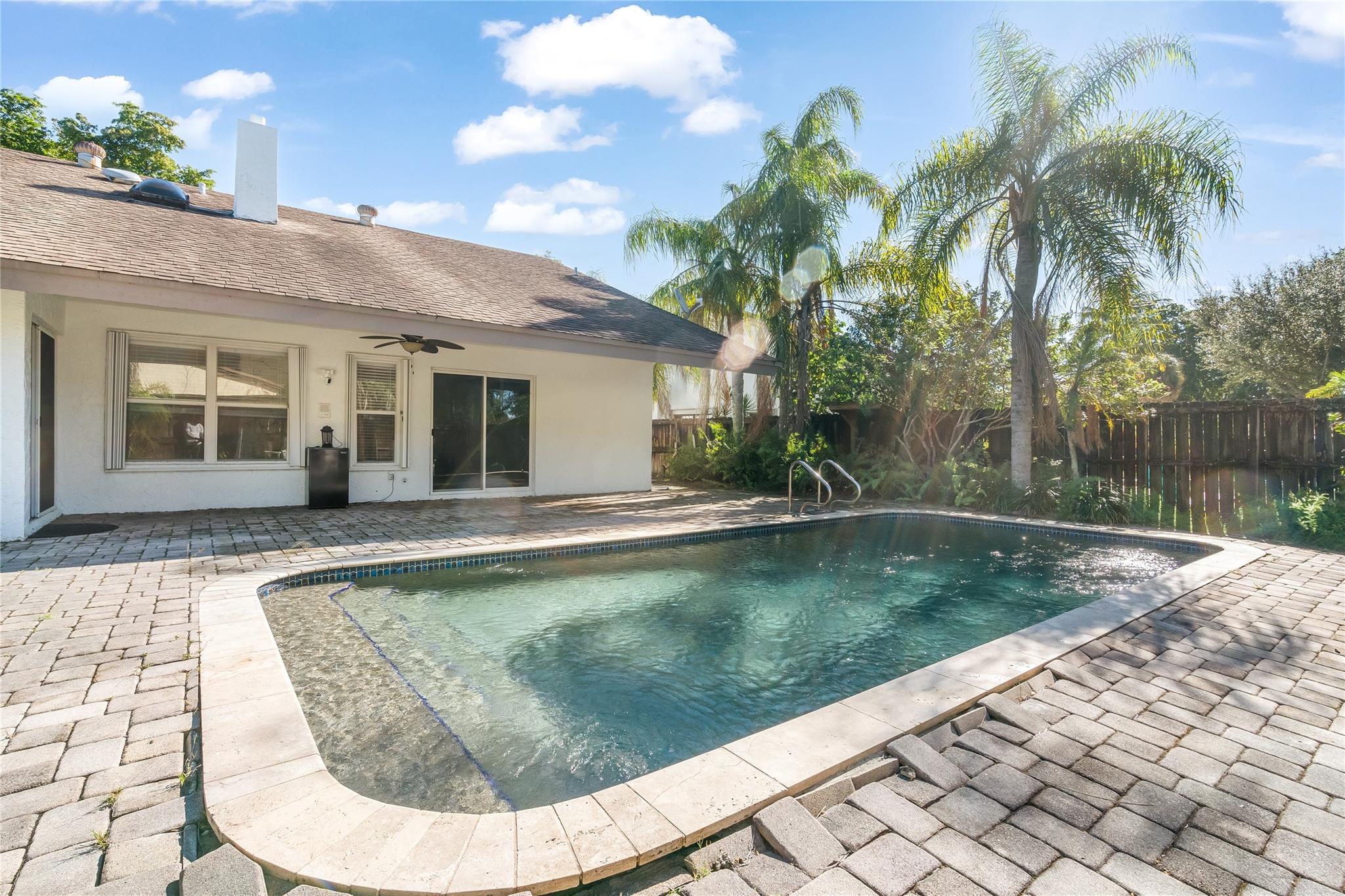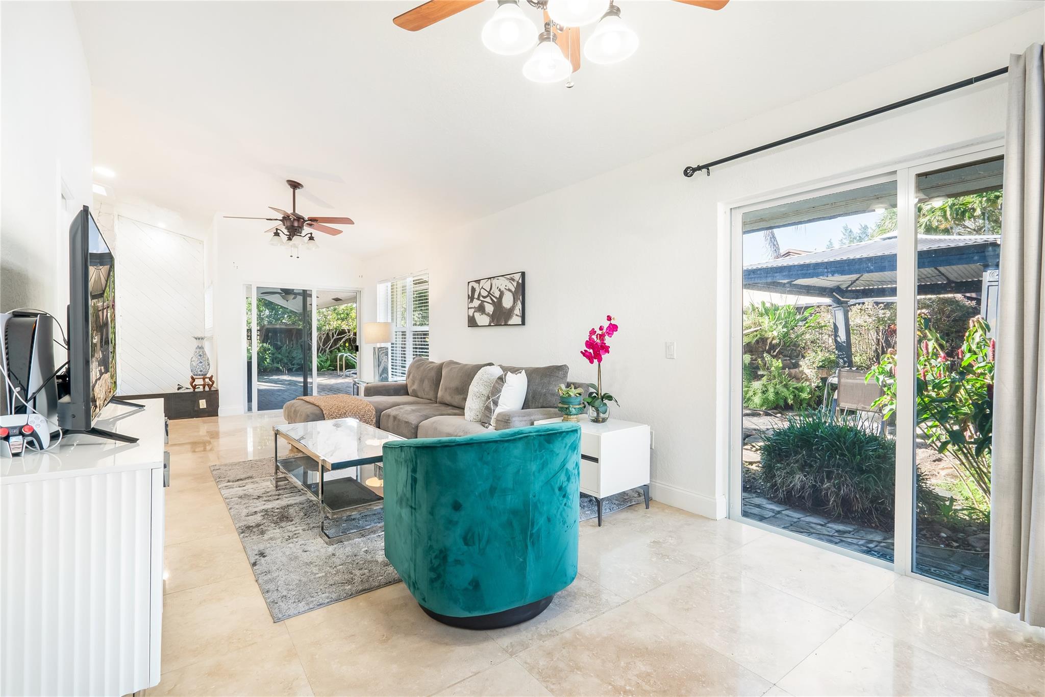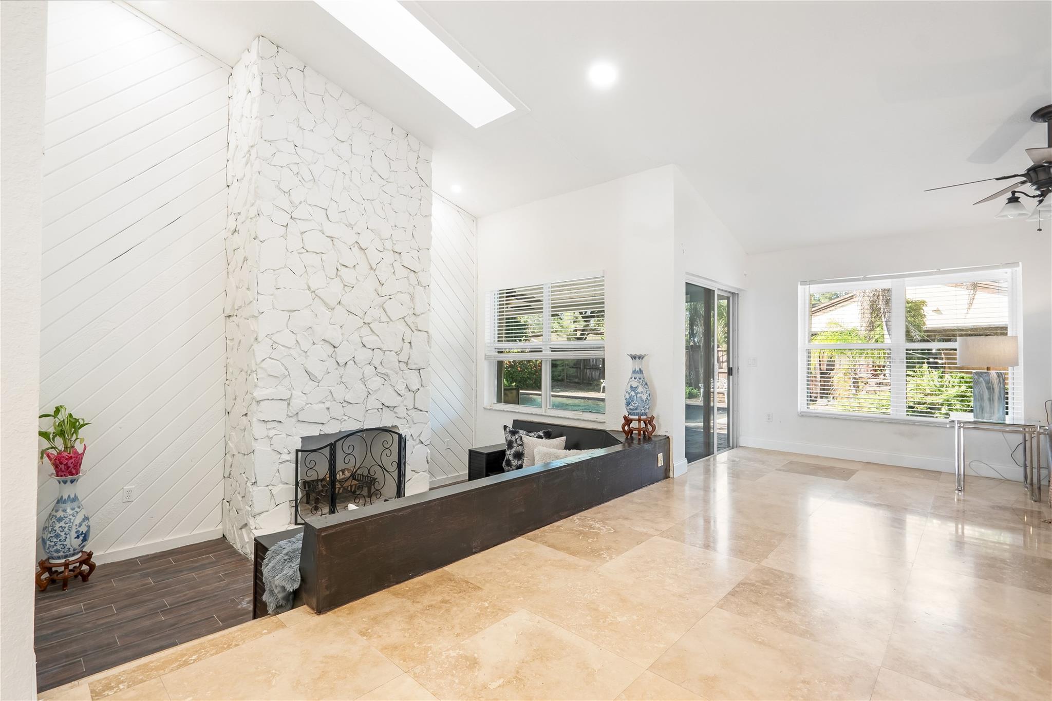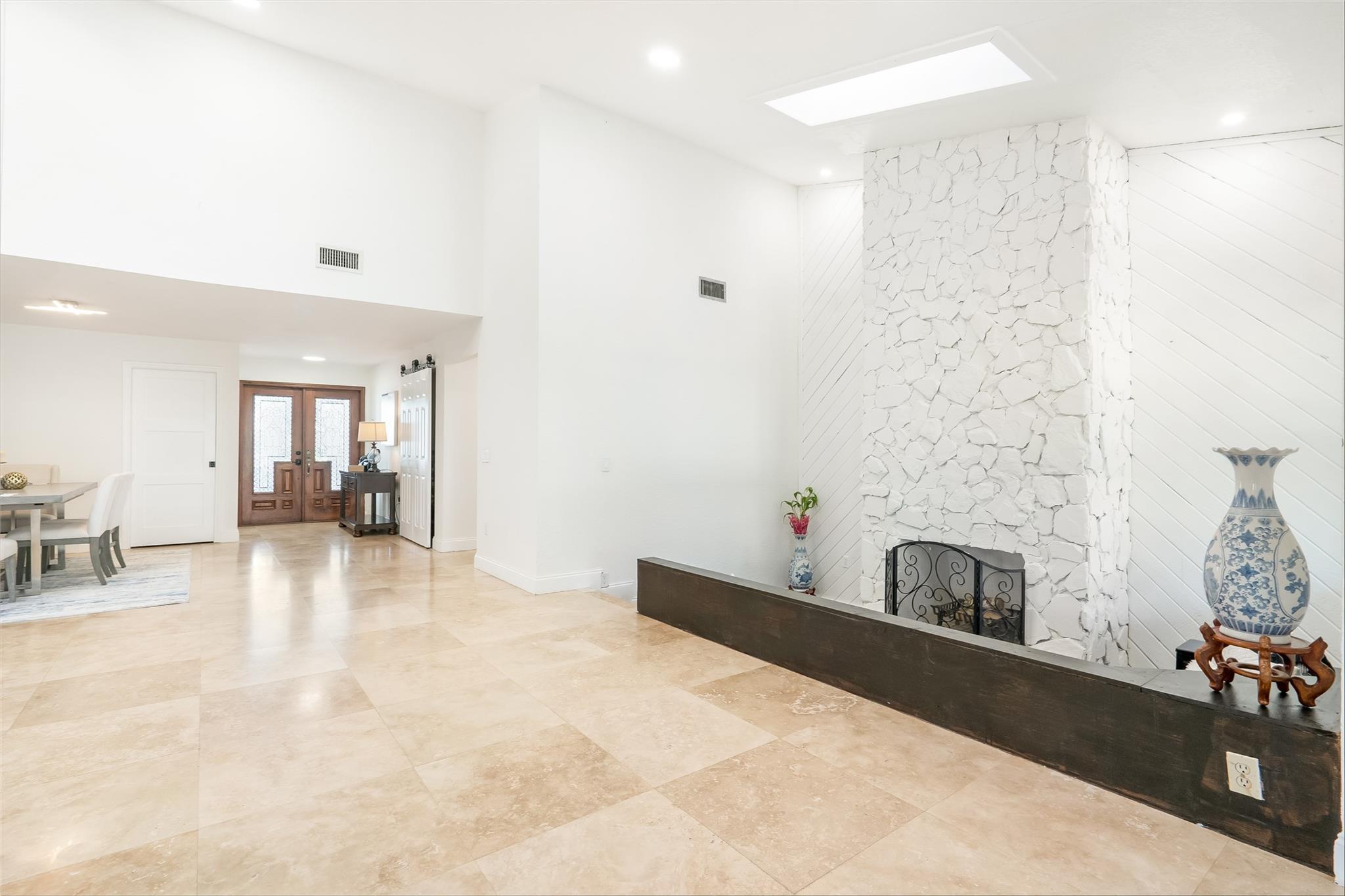 NO HOA!! Massive & fully renovated 5 bedrooms and 2.5 bathrooms with Marble floors throughout the living area. 17 ft natural stone fireplace. Master bedroom has a cabana bathroom with custom cabinets. This beautiful home boasts a large kitchen with custom cabinets and granite counter tops. Impact window / doors and impact shutters. Custom backyard with a Large swimming pool, Gazebo, Koi pond!!! PLUS a mini Basketball court. Partial Garage professionally converted to 5th bedroom . This house is priced to sell