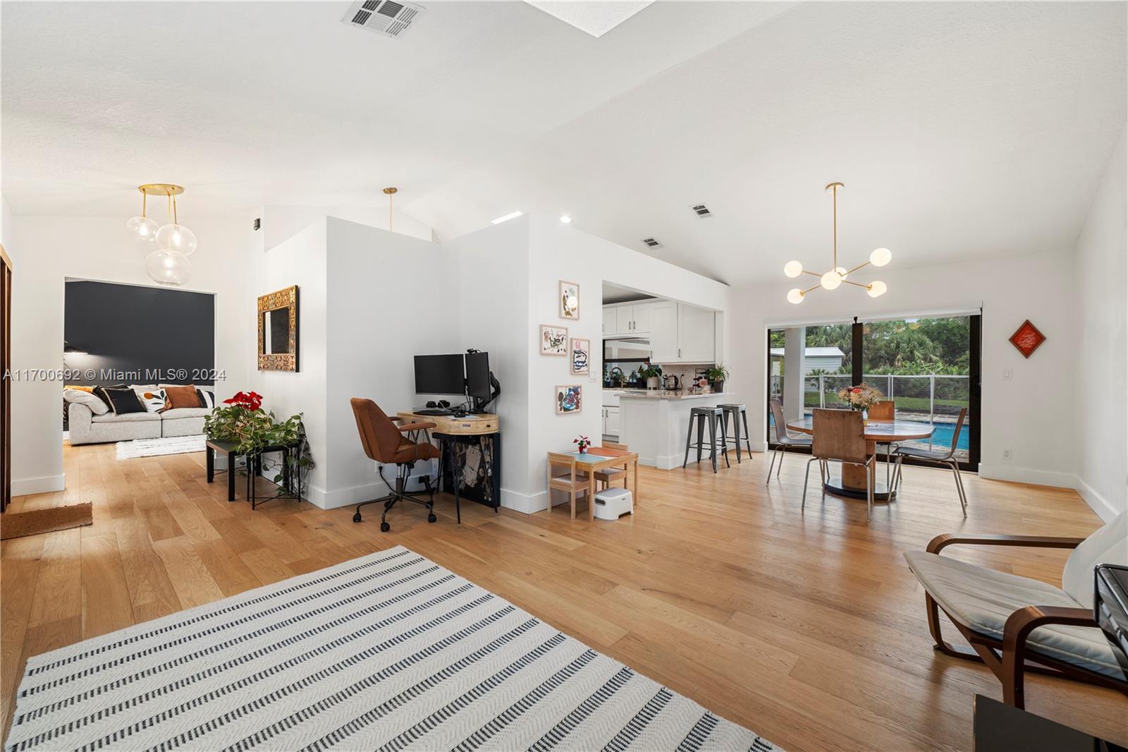 This recently renovated home has much to offer: Main home, a guest house, pool, detached workshop (20x25), and solar panels. Situated on 1.55 acres with mature trees and impressive landscaping this home is quiet and private while still easily accessible to restaurants, shops, parks and highways. Upon entering this home, vaulted ceilings and sliding glass doors flood the split floor plan with tons of natural light guiding you to wrap-around pool views and acreage. The primary is off the east side of the home with an absolutely stunning cabana bathroom complete with a walk-in closet. Off the third bedroom is an open addition, once planned and ready to be finished as a closed office.