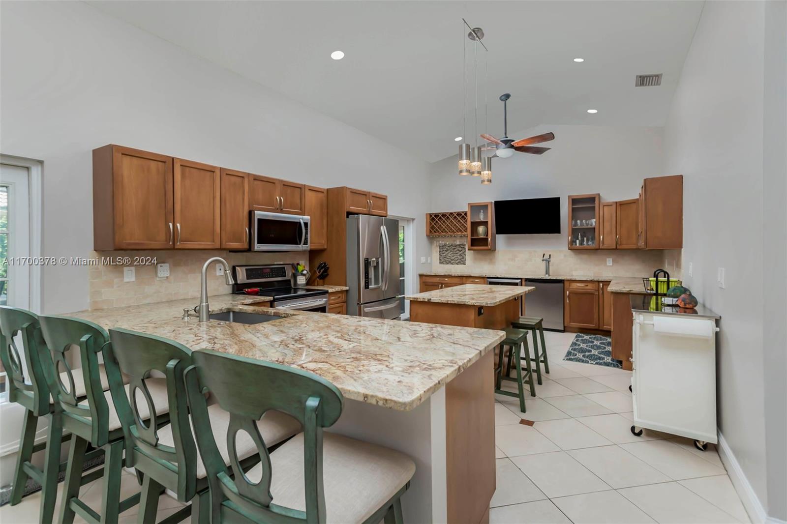 Discover your dream home in the sought-after Ivanhoe community! This stunning 3-bedroom, 2-bathroom property, Plus a bonus Office/Den and sparkling pool, offers the perfect blend of comfort and style. Enjoy an open floor plan with vaulted ceilings, a modern kitchen featuring an island, extended countertops, and ample cabinet storage. IMPACT DOORS and WINDOWS fill the home with natural light. The spacious backyard boasts a wraparound terrace overlooking the pool and large yard. With a 2-car garage, private entrance, low HOA, and no rear neighbors, this home offers privacy and tranquility. Walking distance to an elementary school and parks, and conveniently located across from the community pool and guest parking. Don’t miss it!
