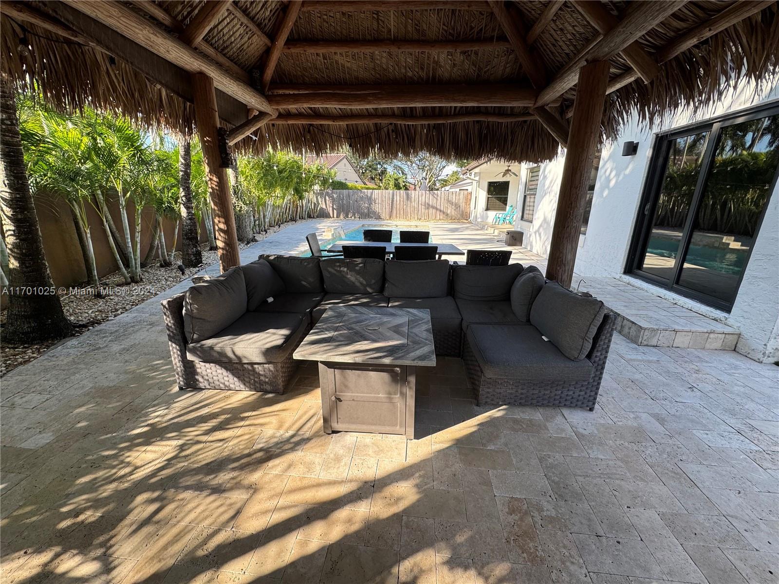 Beautifully renovated and move-in ready! This stunning 4-bedroom home, plus a versatile den/office, features 2 bathrooms, an open floor plan, and countless upgrades. Enjoy a heated saltwater pool, tiki hut with an outdoor kitchen, and lush outdoor space perfect for entertaining. Recent updates include new appliances, AC, air ducts, and impact windows and doors throughout. Custom closets and thoughtful design details elevate the interior, while the home’s location in a desirable gated community offers security and charm. A true gem with everything you need for modern living!