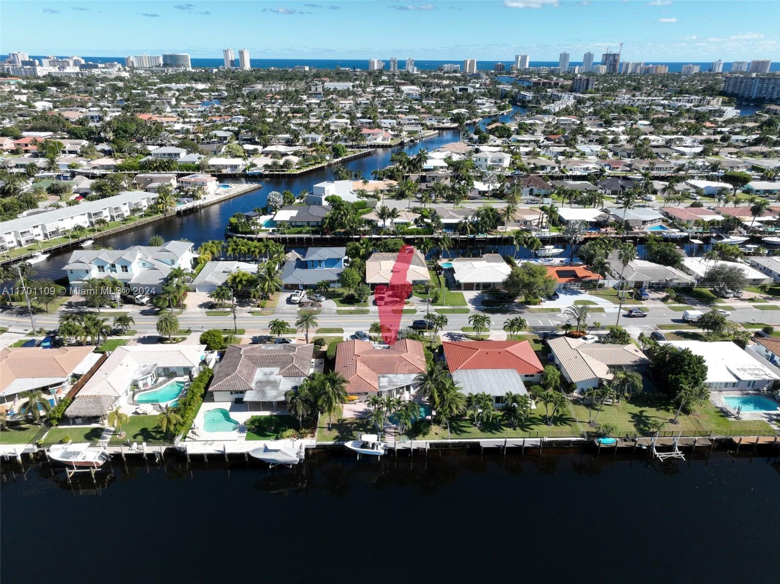 This large, remodeled ocean access waterfront home checks all the boxes! 3 generously sized split bedrooms, 2 full baths, 2 car garage, saltwater pool, natural gas, impact windows/hurricane shutters, boat lift and 70 ft of water frontage on a wide canal. Recent updates include new kitchen with stainless steel appliances, porcelain flooring, hurricane garage door, new AC ducts, recently installed10k lbs. boat lift and more! A perfect blend of tranquility and convenience, the house is nestled just a short boat cruise or driving/biking distance to the beach and the redeveloped Pompano Beach and Fort Lauderdale dining shopping and entertainment. New fixed bridge is in plans to replace existing one with up to 11 feet high tide clearance.