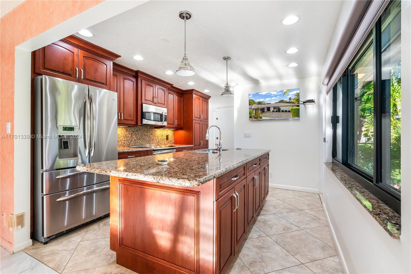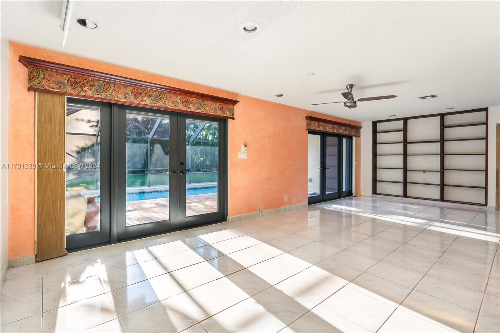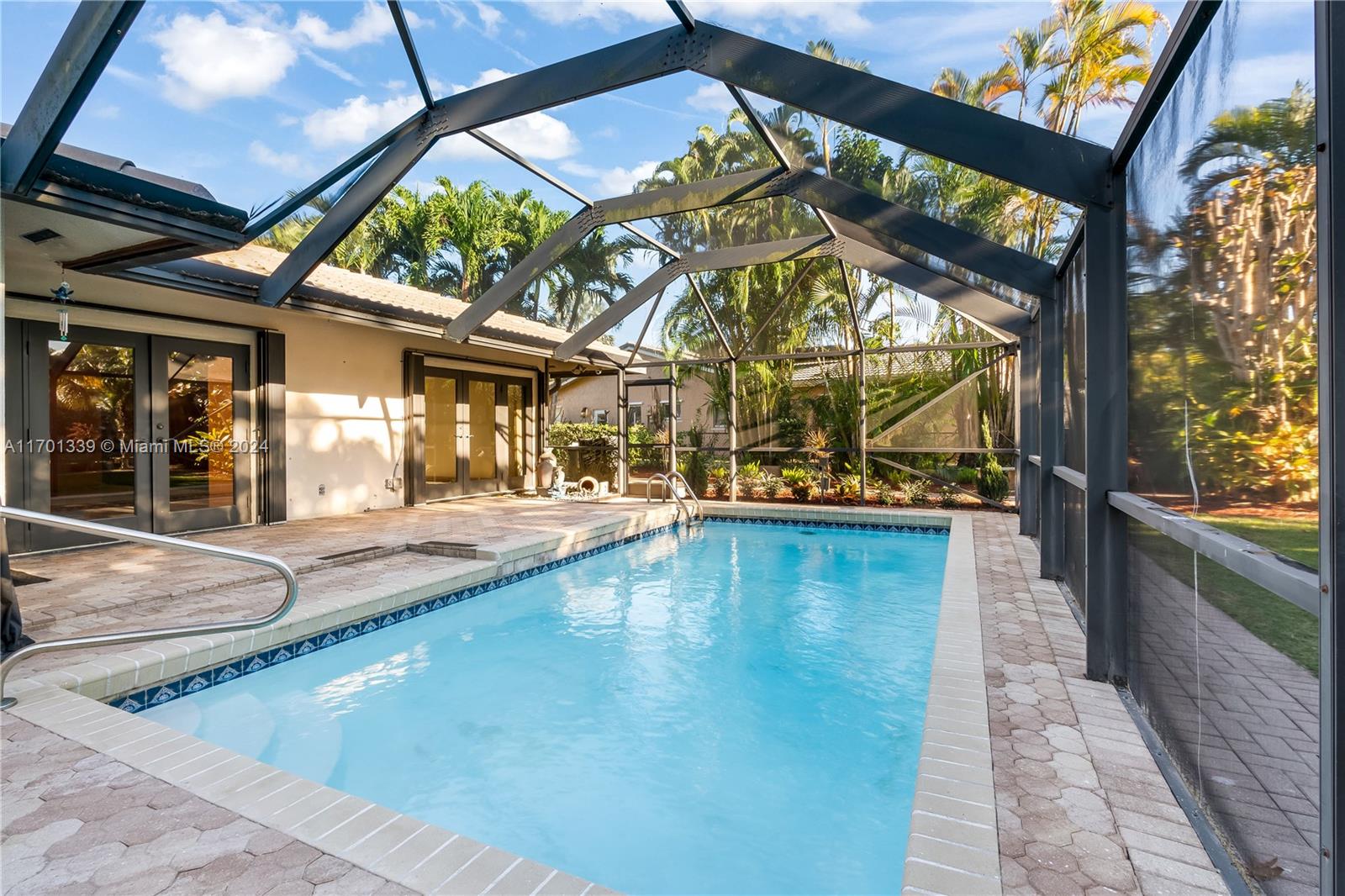 This property boasts a nearly 15,000 lot with landscaped backyard, complete with a breathtaking paved walking path, waterfront views, and a screened-in pool. The home also features numerous upgrades, including hurricane-impact windows and doors, accordion hurricane shutters, a gorgeous oversized paved driveway, 2023 air conditioner, solar water heater, central vacuum, walk in tub with whirlpool and heater, hardwire security system with ring doorbell camera, and stainless steel appliances with a 3+ year warranty. It also includes a separate canal water irrigation system with a 2024 pump. Near the Sawgrass Expressway, top-rated schools, shopping, dining, and entertainment. Llist of upgrades, please see attachs on MLS. TV in kitchen, BBQ grill, fridge in garage and grill included on sale.