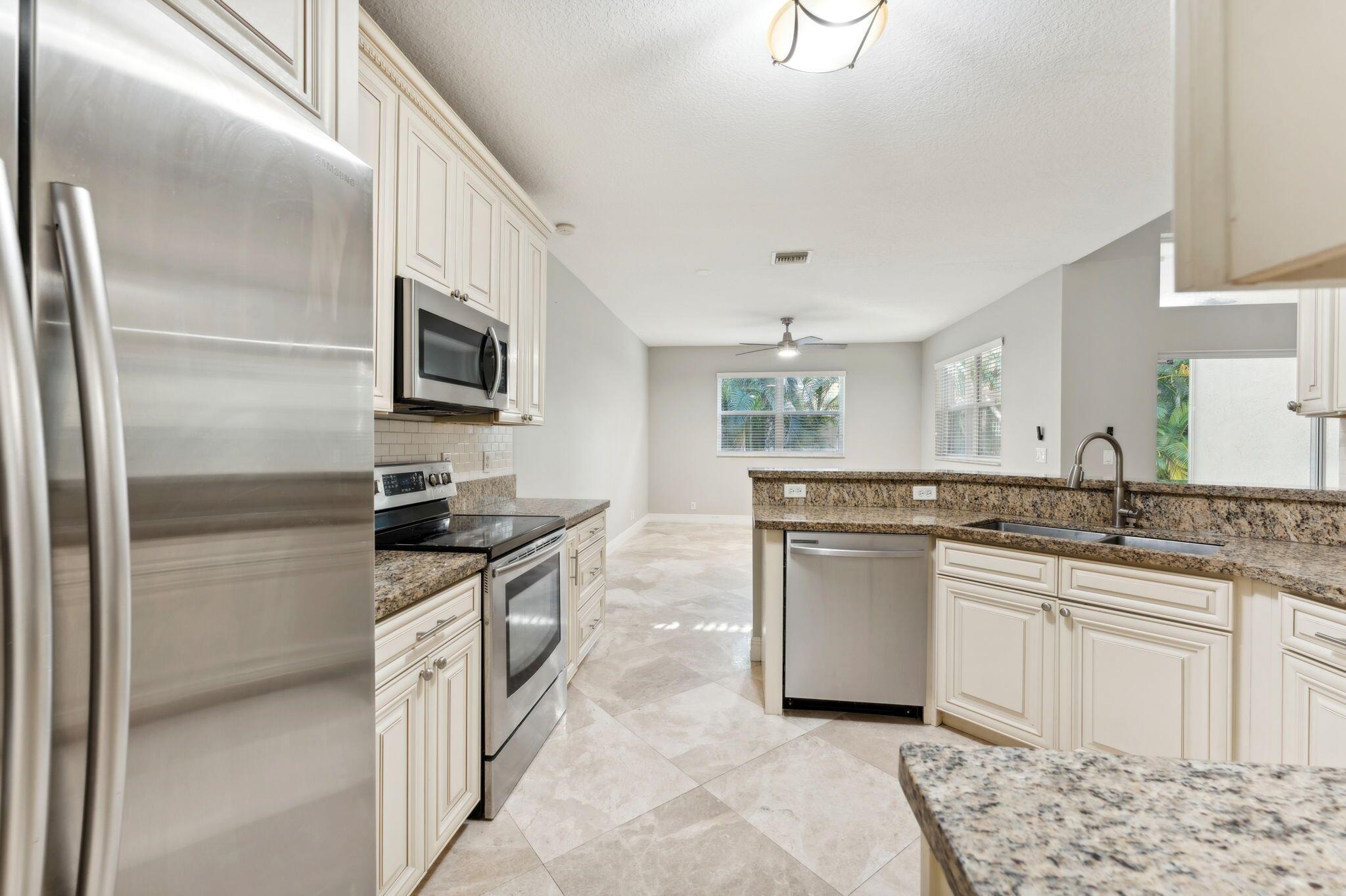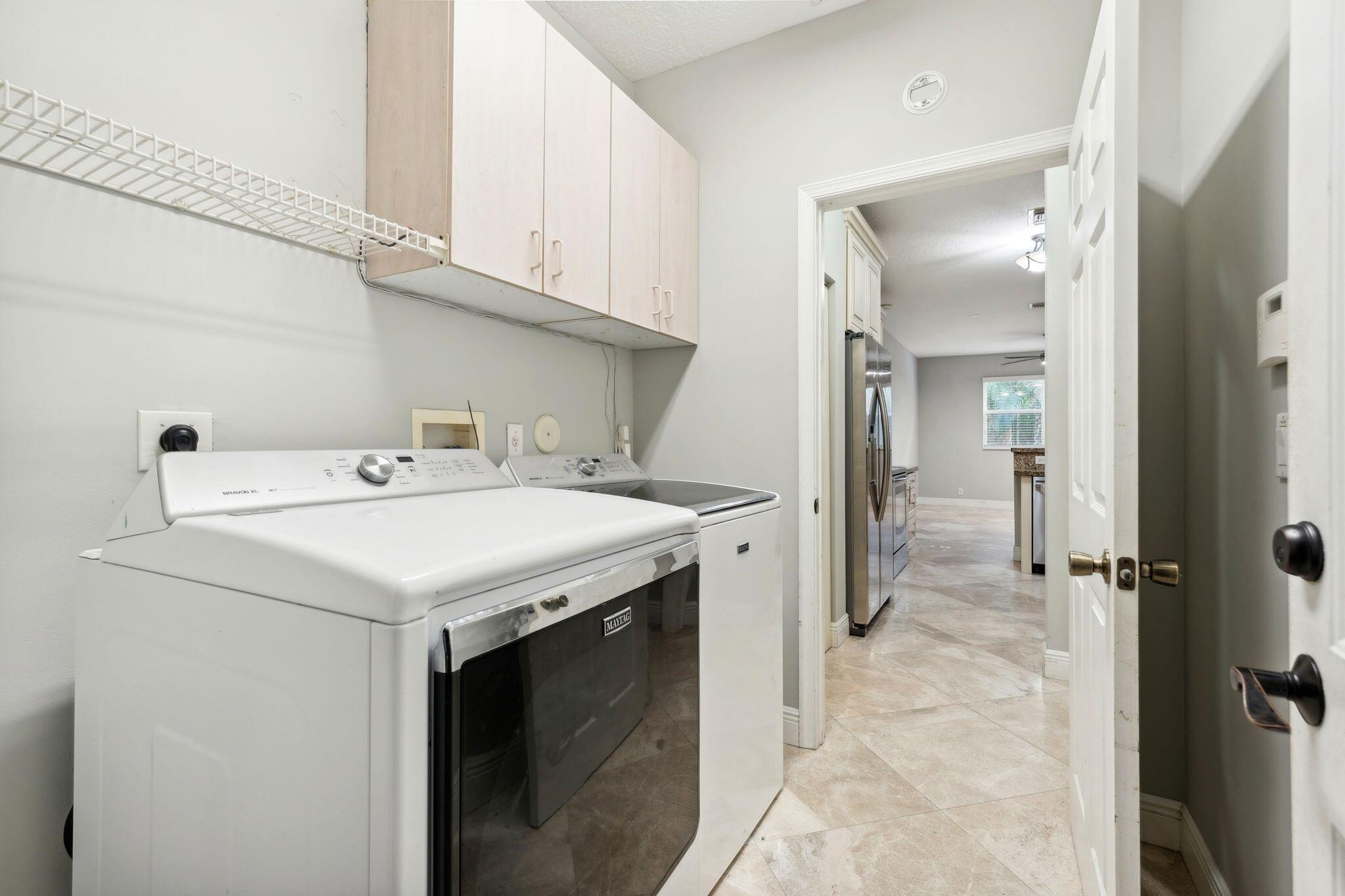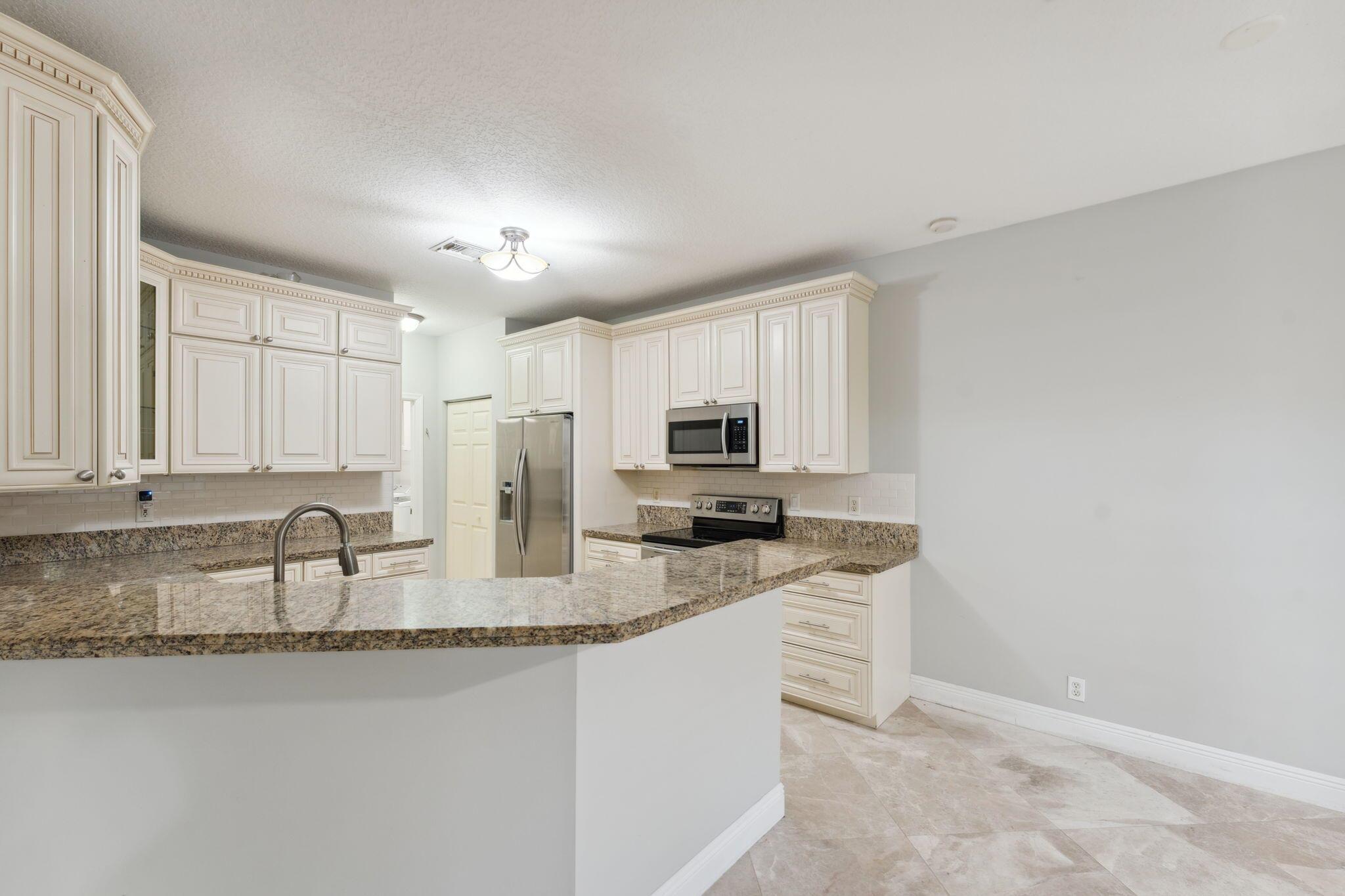 This beautiful 3-bed, 2-bath home perfectly blends elegance and comfort, welcoming you with its stunning curb appeal, corner lot, featuring a brick-paved driveway, lush tropical landscaping. Inside, you'll find an open and light-filled layout with soaring ceilings, polished marble floors, and chic modern finishes. The spacious gourmet kitchen is complete with granite countertops, stainless steel appliances, and custom cabinetry, while the adjoining breakfast nook and open living areas offer views of the lush backyard. The primary suite serves as a luxurious retreat with its spa-inspired bathroom, showcasing a soaking tub, dual vanities,