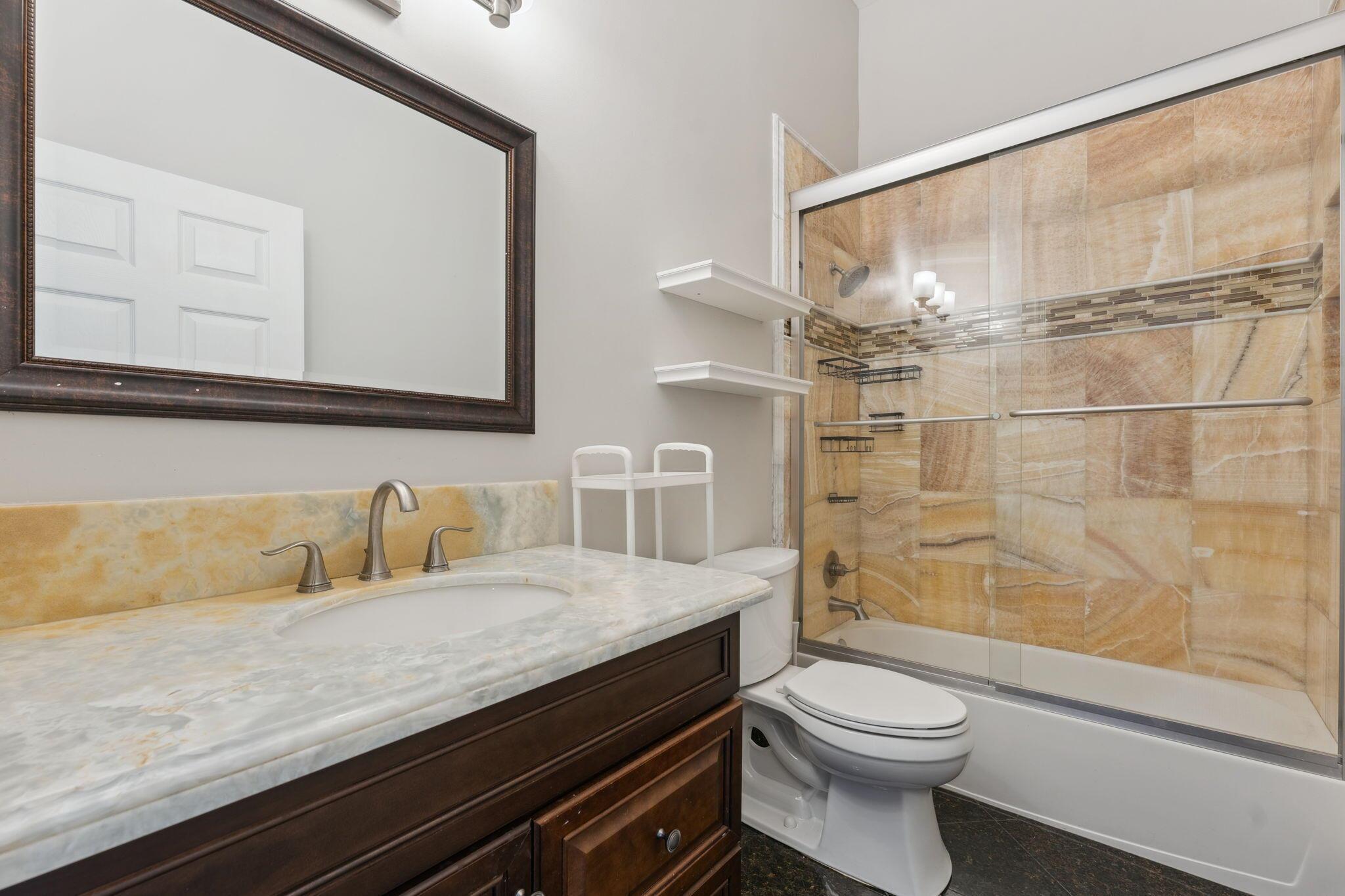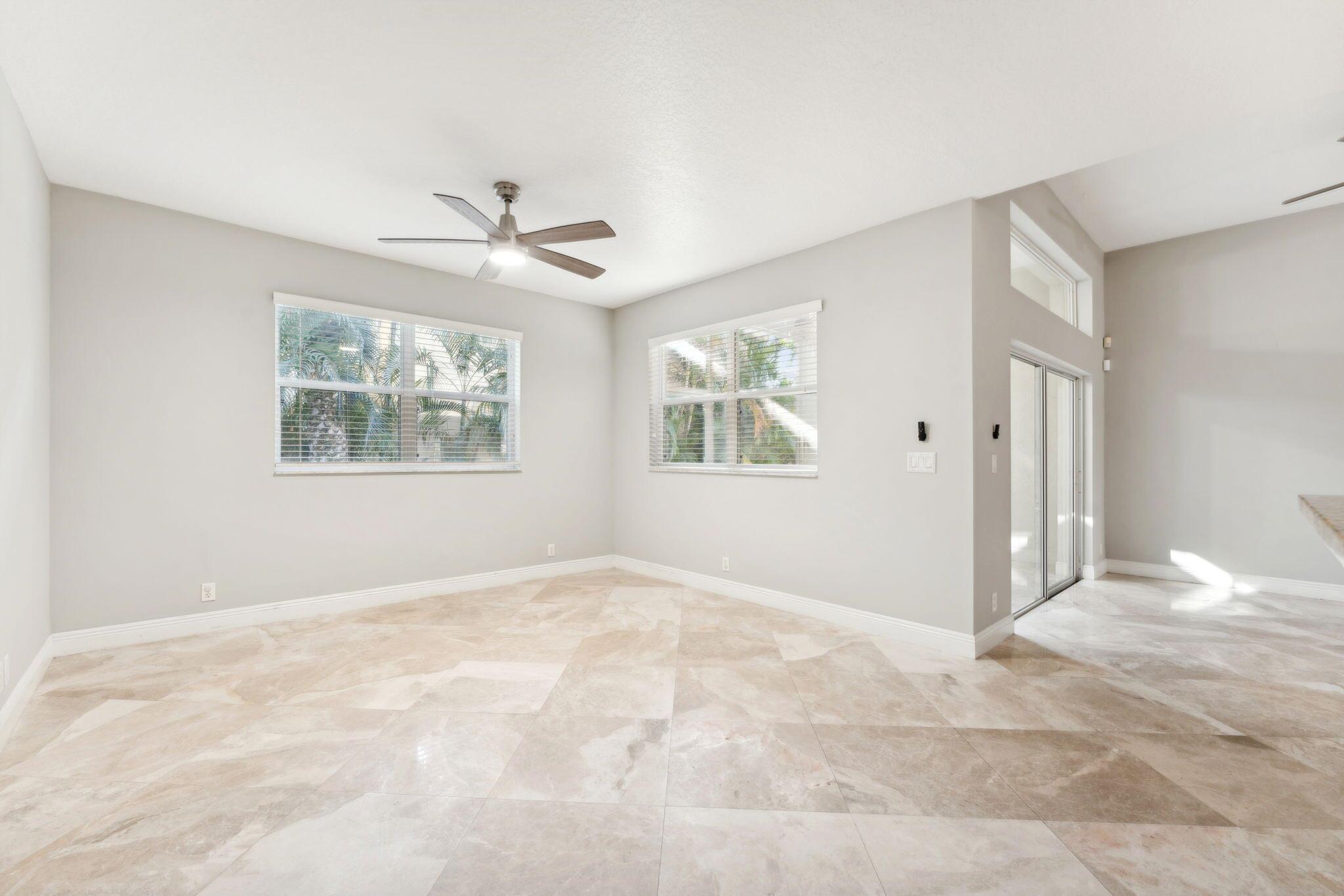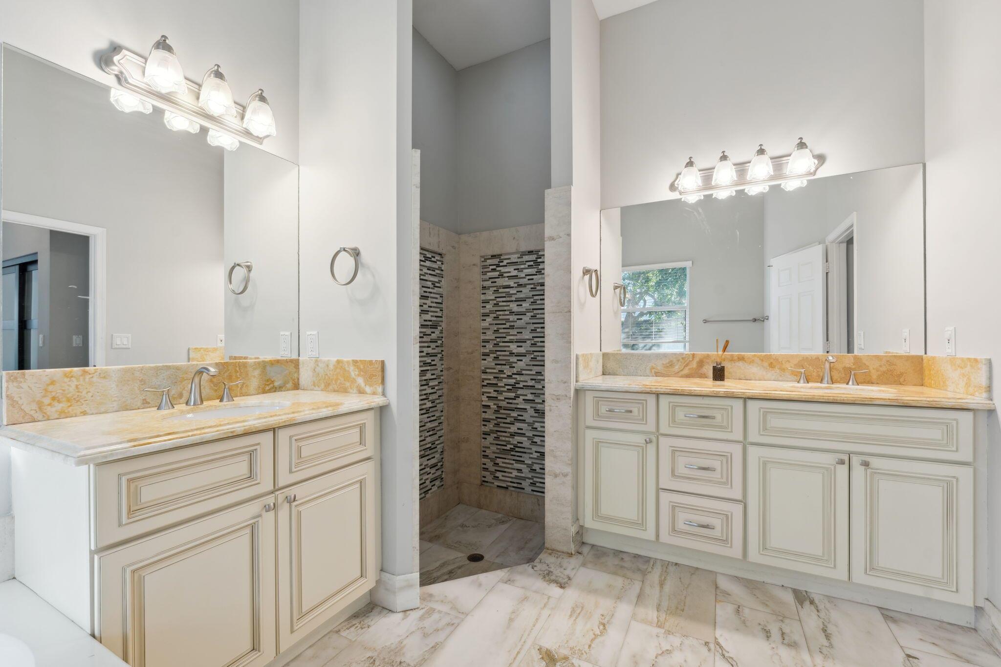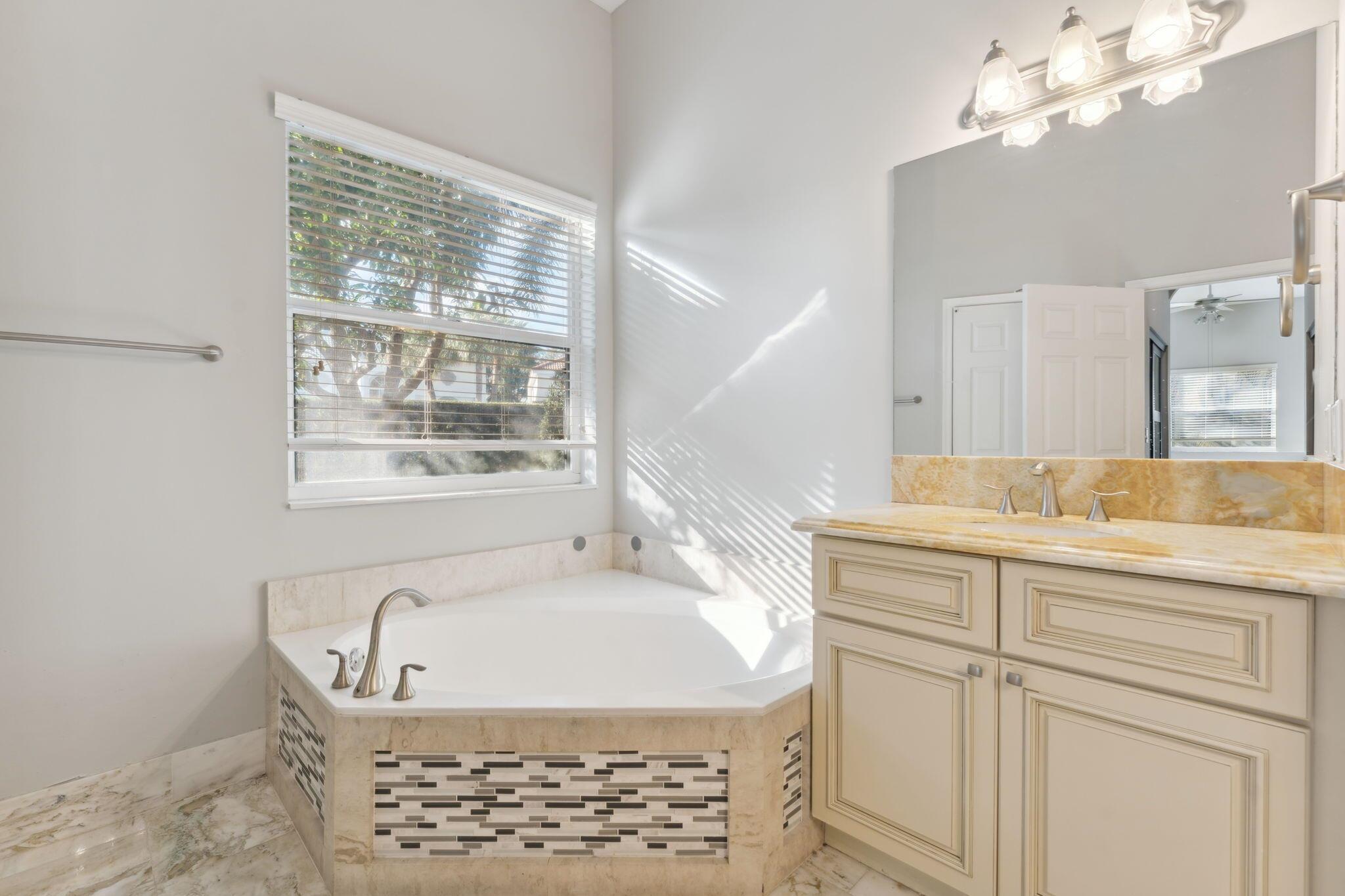 This beautiful 3-bed, 2-bath home perfectly blends elegance and comfort, welcoming you with its stunning curb appeal, corner lot, featuring a brick-paved driveway, lush tropical landscaping. Inside, you'll find an open and light-filled layout with soaring ceilings, polished marble floors, and chic modern finishes. The spacious gourmet kitchen is complete with granite countertops, stainless steel appliances, and custom cabinetry, while the adjoining breakfast nook and open living areas offer views of the lush backyard. The primary suite serves as a luxurious retreat with its spa-inspired bathroom, showcasing a soaking tub, dual vanities,