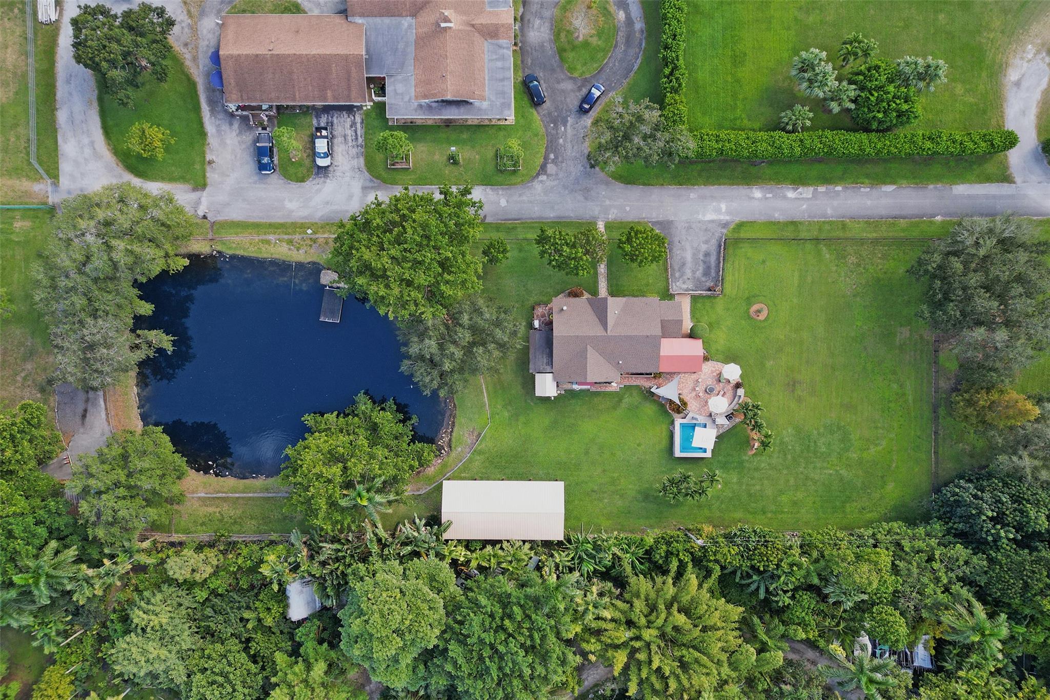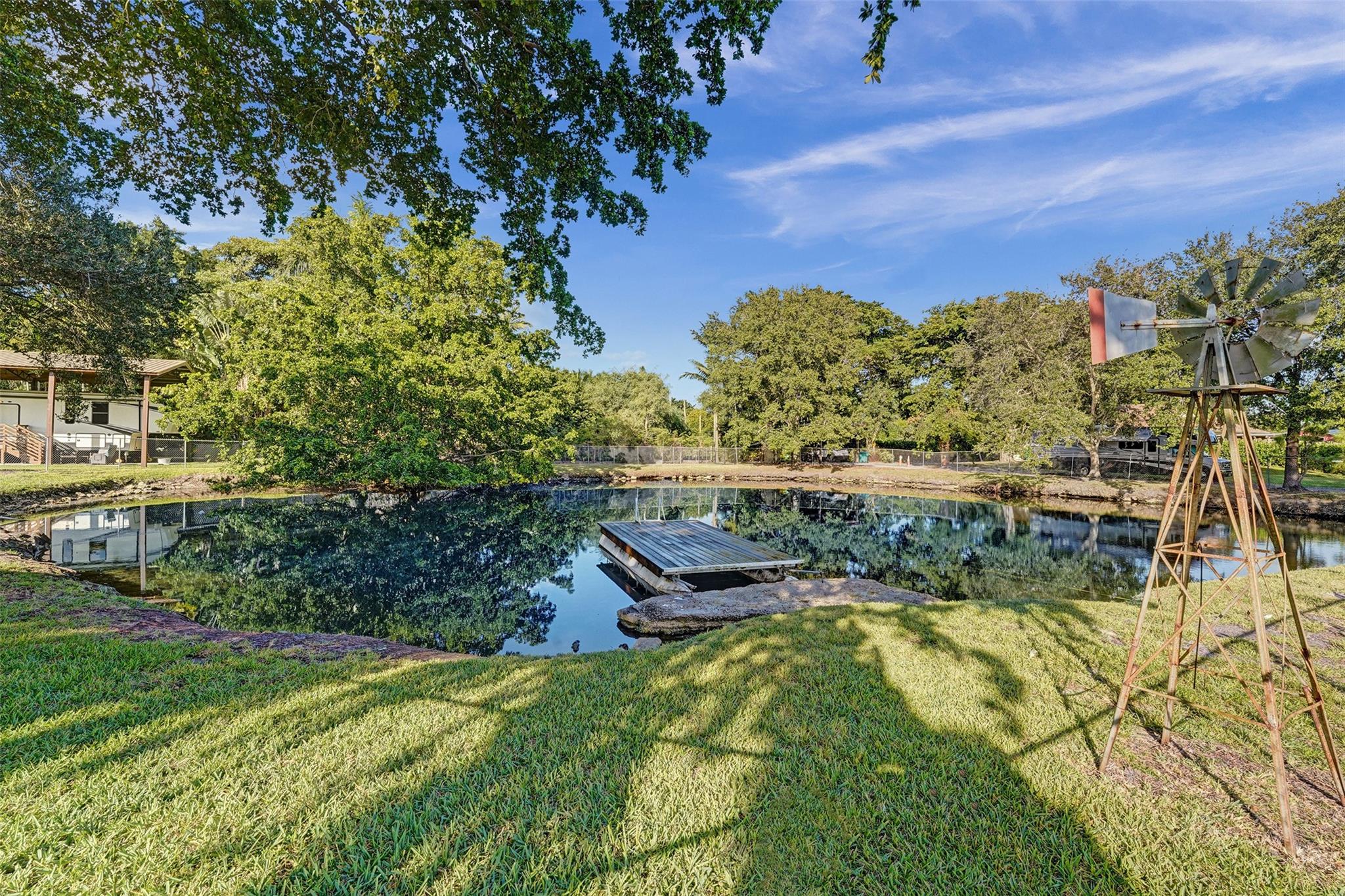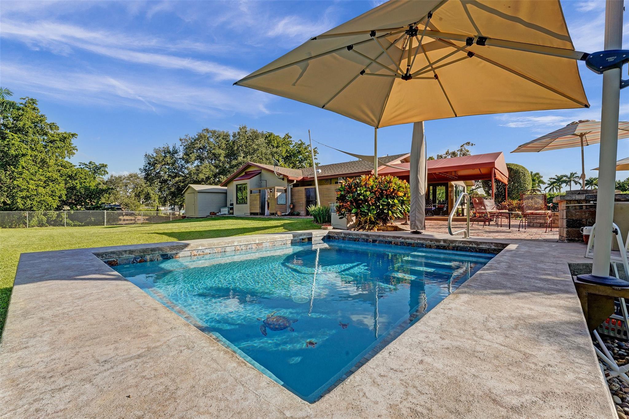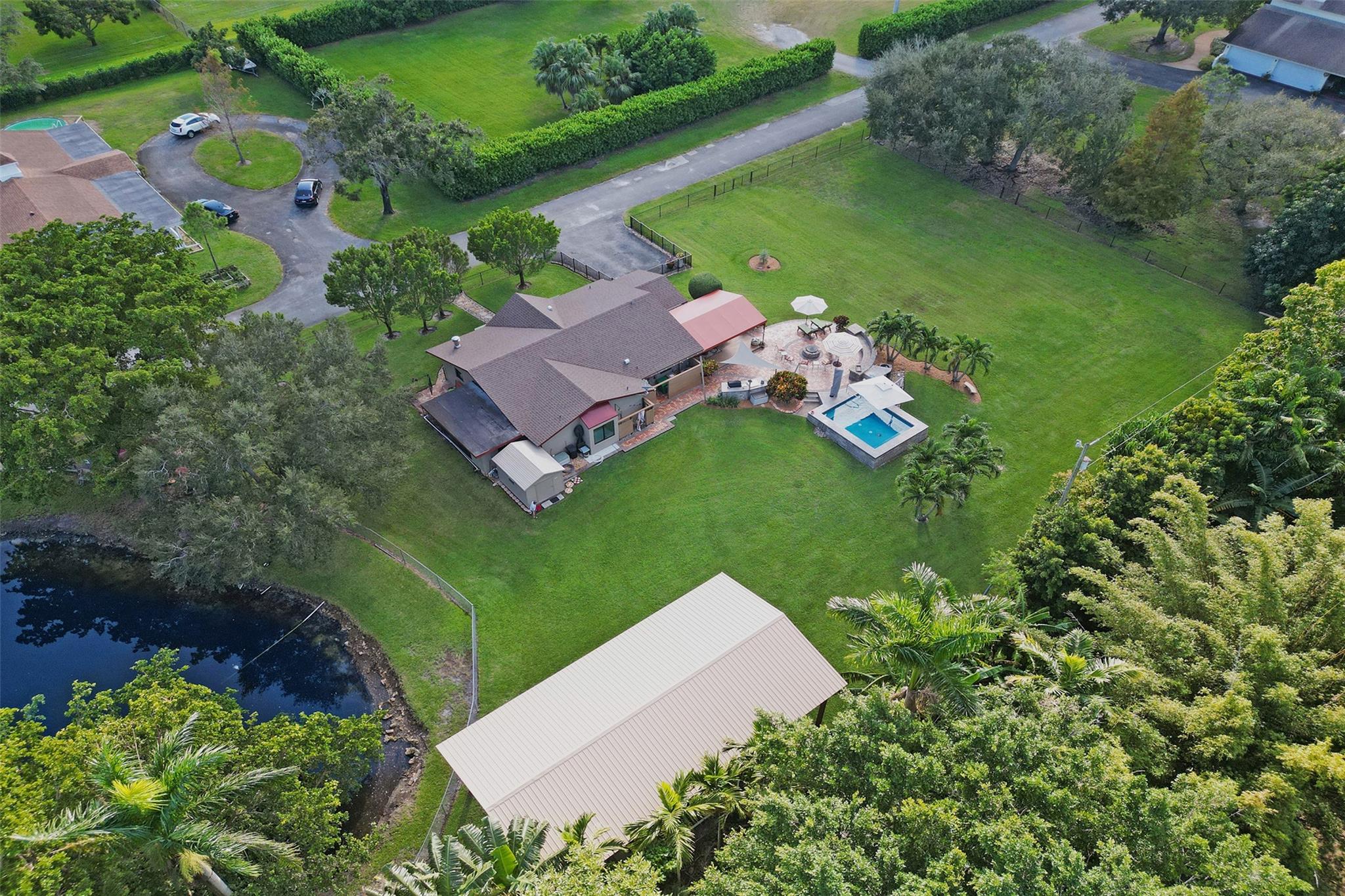 Prime Davie land for sale 1.5 acres with NO HOA and zoned Agriculture, featuring a private pond and gated driveway. With ample room to expand or add a second floor, the property offers limitless possibilities. Recent upgrades 2024 include a brand-new roof, 48-foot RV storage pole barn, and enhanced plumbing in the luxurious primary bath with a jet Jacuzzi tub. Enjoy year-round relaxation in the heated and cooled salt water pool, installed in 2020, and the new outdoor shower with hot water. The 2020 kitchen remodel boasts custom cabinetry, quartzite countertops, and new tile floors. AC and hot water heater are both recently upgraded. Security system with 6 exterior cameras as well as all impact windows and doors. Serenity, space, and style—this home is a must-see! 42 Foot RV included!