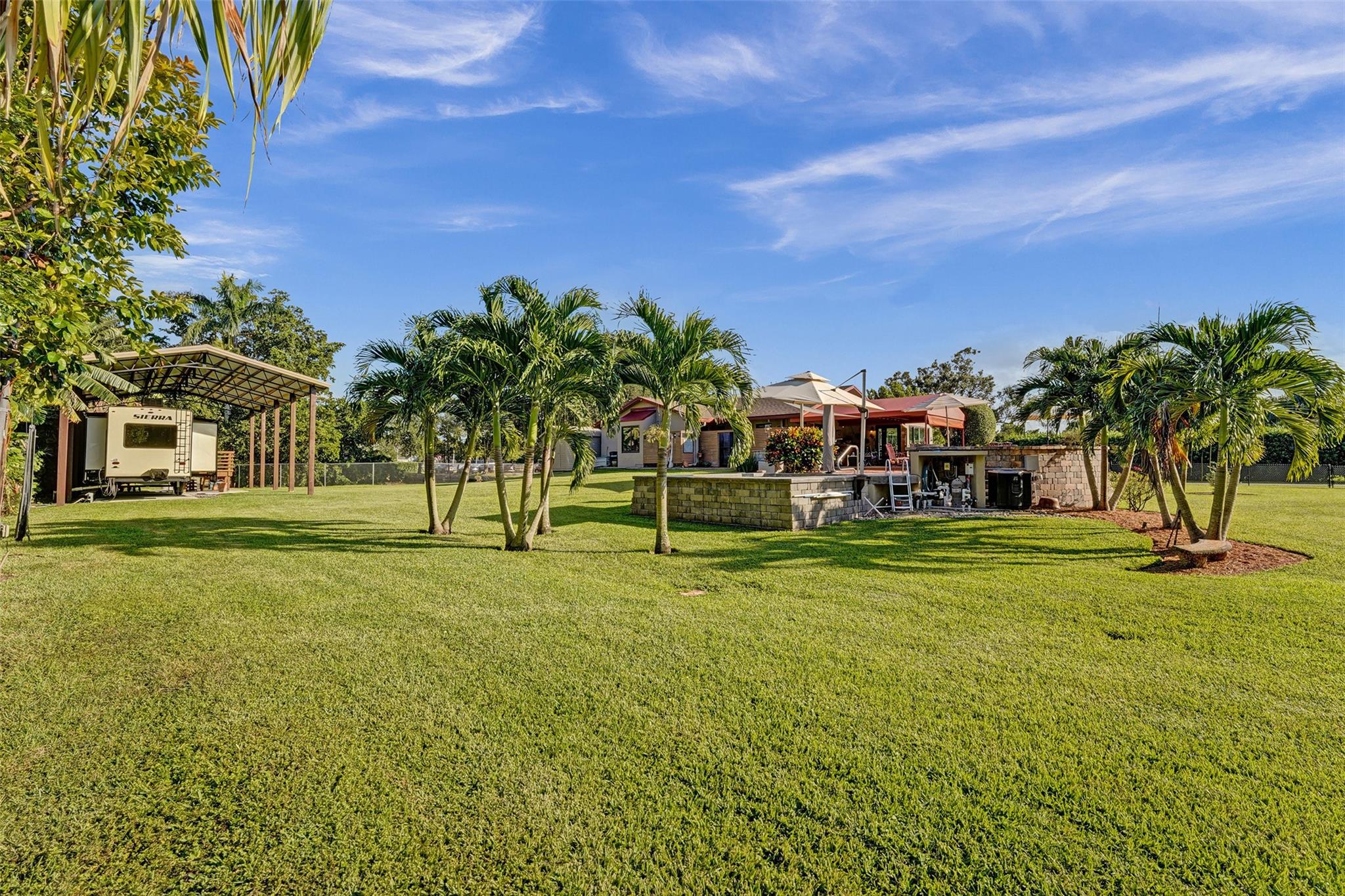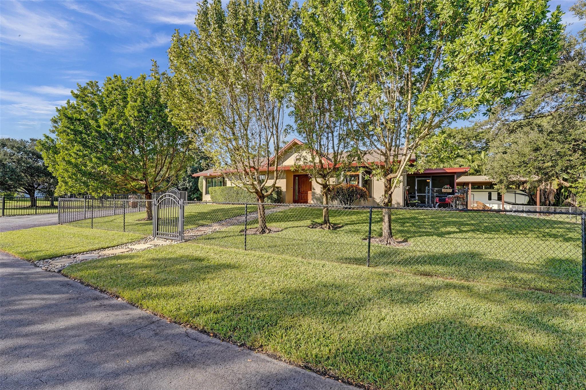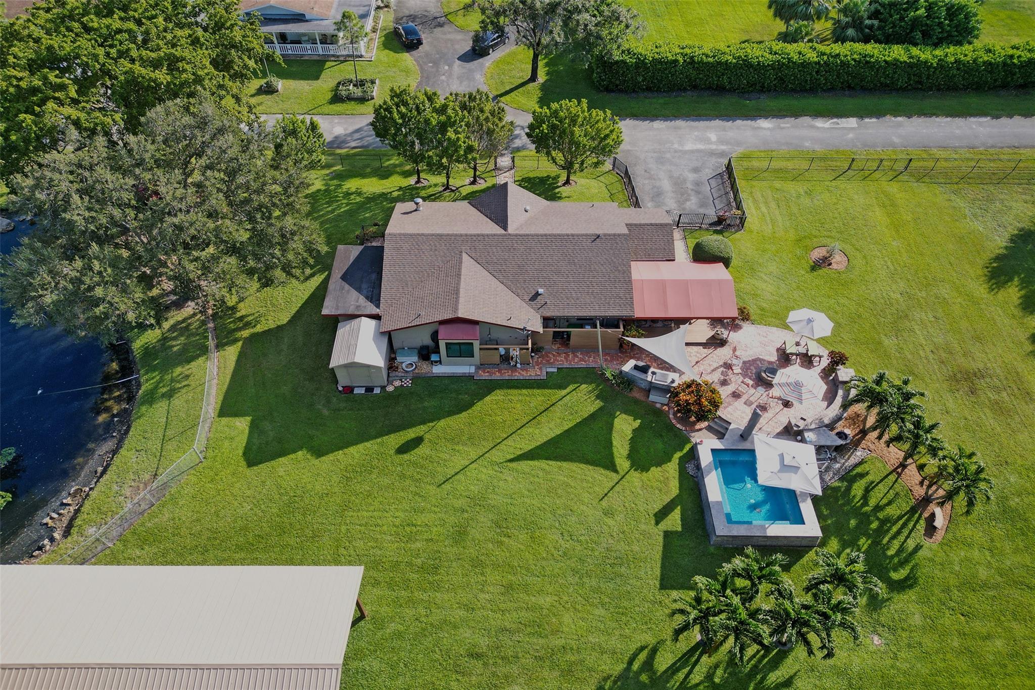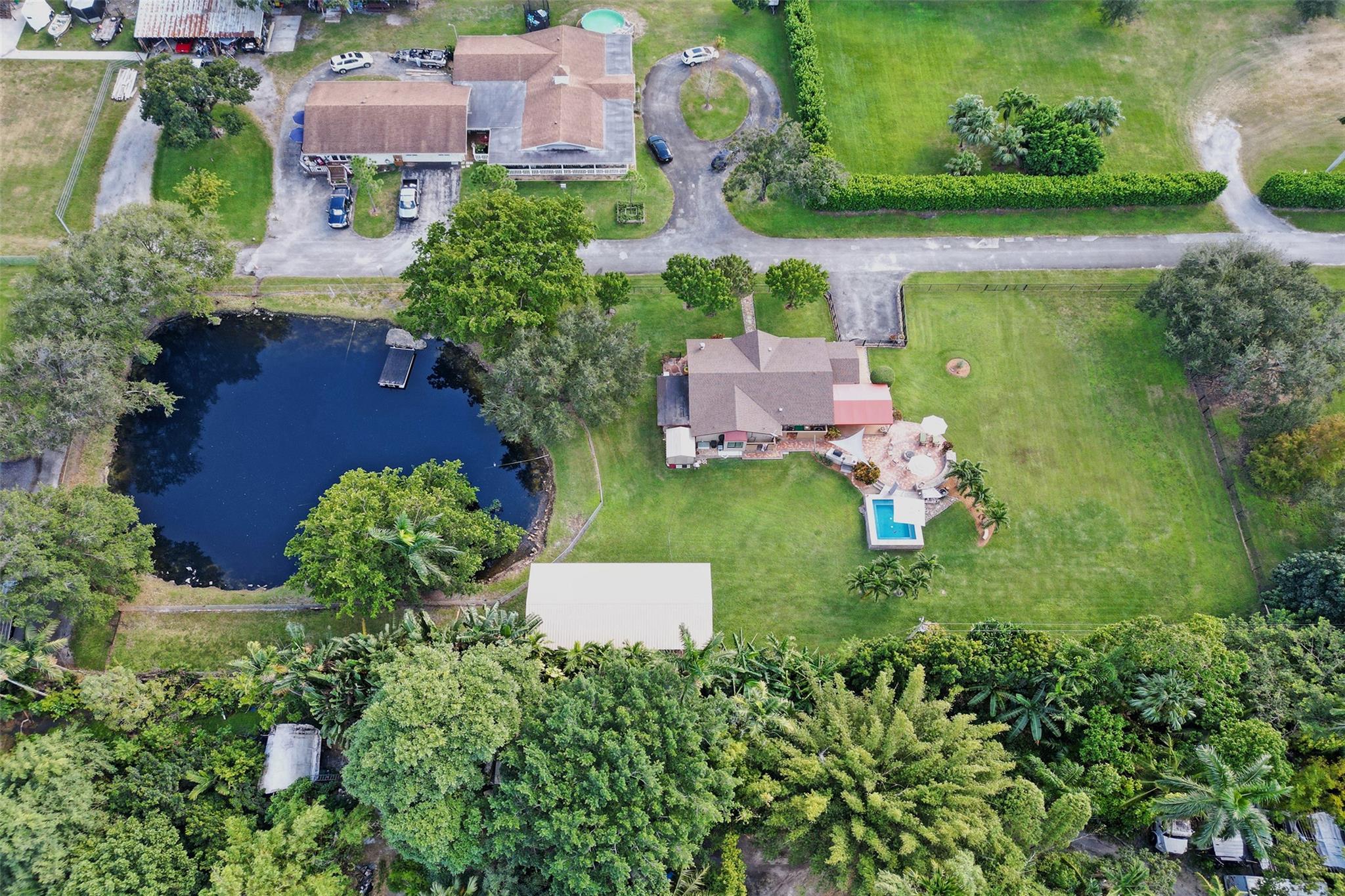 Prime Davie land for sale 1.5 acres with NO HOA and zoned Agriculture, featuring a private pond and gated driveway. With ample room to expand or add a second floor, the property offers limitless possibilities. Recent upgrades 2024 include a brand-new roof, 48-foot RV storage pole barn, and enhanced plumbing in the luxurious primary bath with a jet Jacuzzi tub. Enjoy year-round relaxation in the heated and cooled salt water pool, installed in 2020, and the new outdoor shower with hot water. The 2020 kitchen remodel boasts custom cabinetry, quartzite countertops, and new tile floors. AC and hot water heater are both recently upgraded. Security system with 6 exterior cameras as well as all impact windows and doors. Serenity, space, and style—this home is a must-see! 42 Foot RV included!