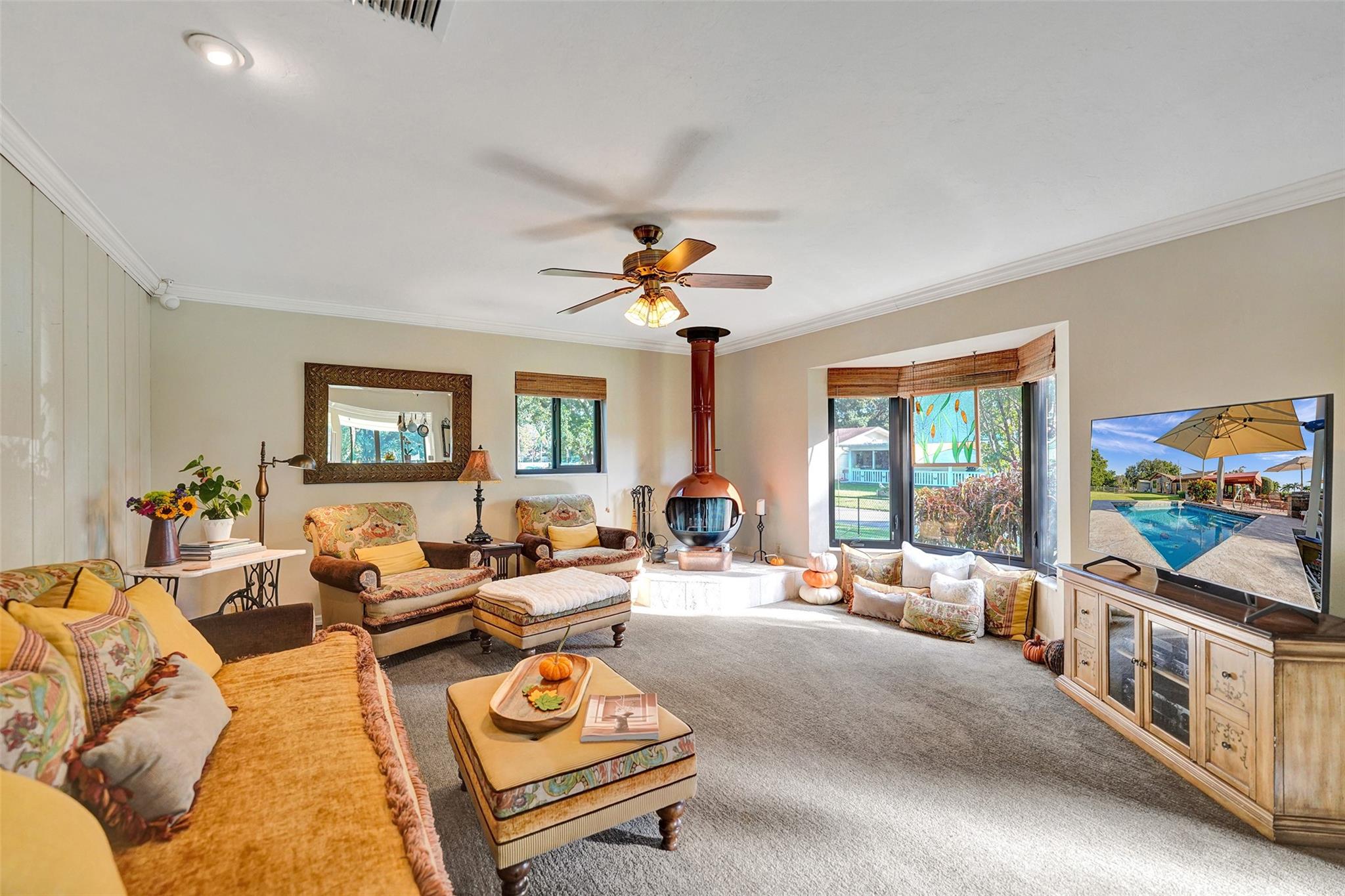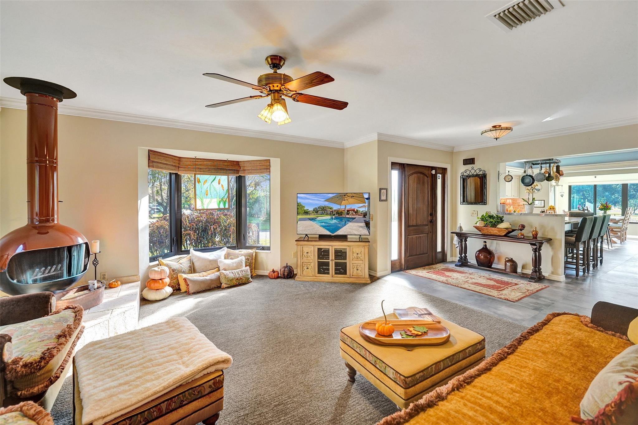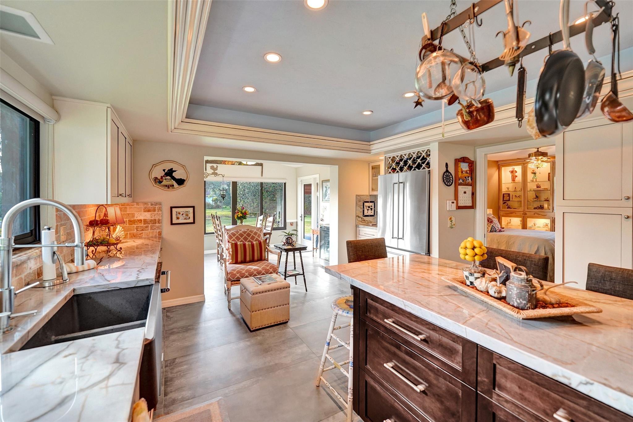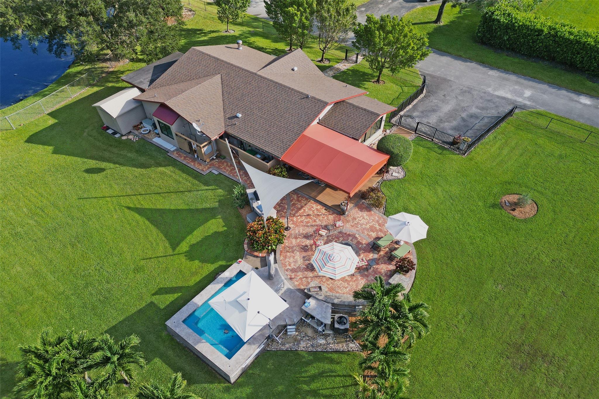 Prime Davie land for sale 1.5 acres with NO HOA and zoned Agriculture, featuring a private pond and gated driveway. With ample room to expand or add a second floor, the property offers limitless possibilities. Recent upgrades 2024 include a brand-new roof, 48-foot RV storage pole barn, and enhanced plumbing in the luxurious primary bath with a jet Jacuzzi tub. Enjoy year-round relaxation in the heated and cooled salt water pool, installed in 2020, and the new outdoor shower with hot water. The 2020 kitchen remodel boasts custom cabinetry, quartzite countertops, and new tile floors. AC and hot water heater are both recently upgraded. Security system with 6 exterior cameras as well as all impact windows and doors. Serenity, space, and style—this home is a must-see! 42 Foot RV included!