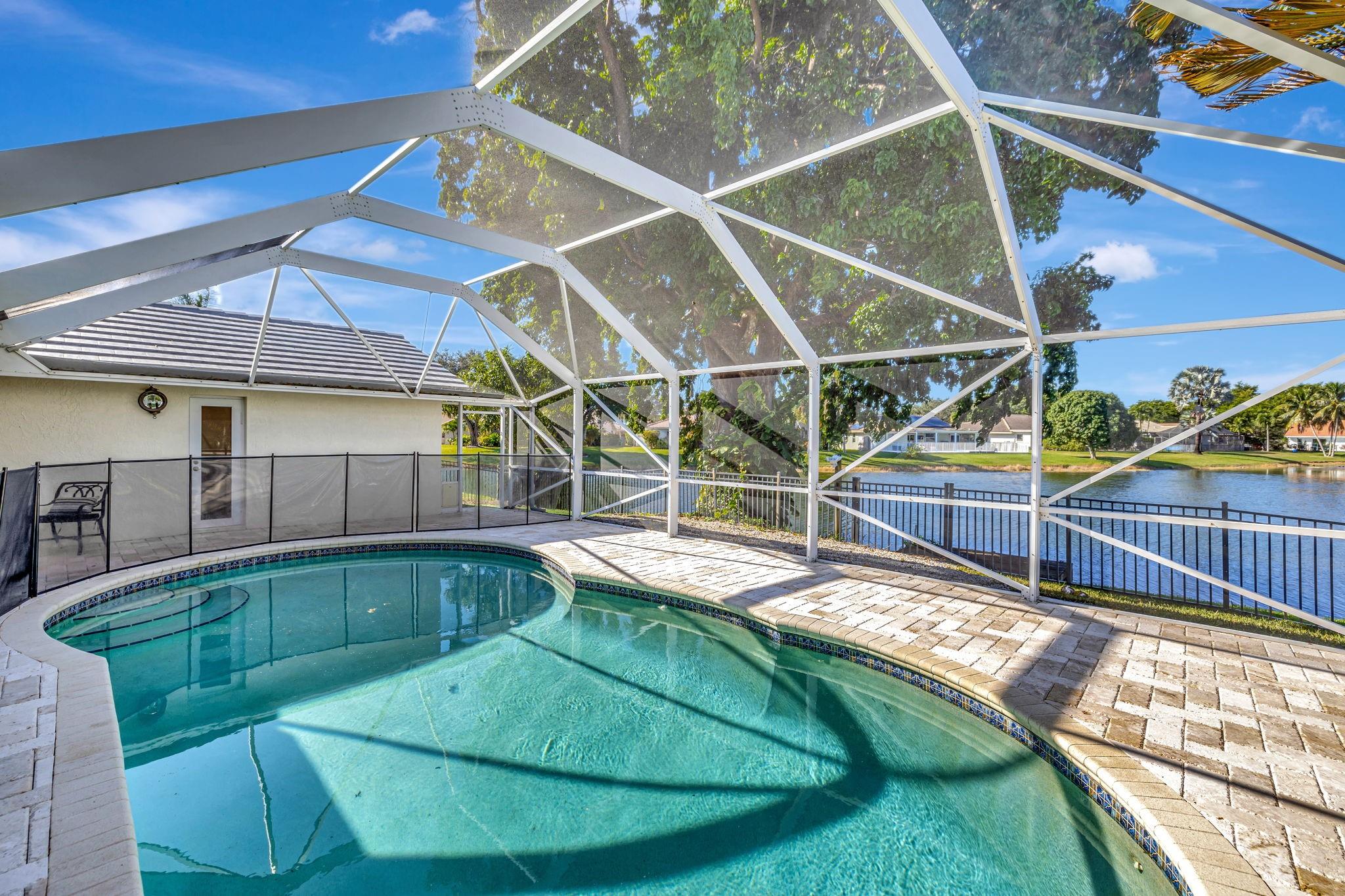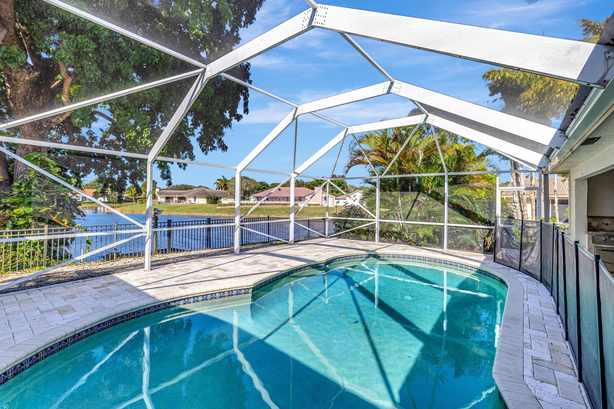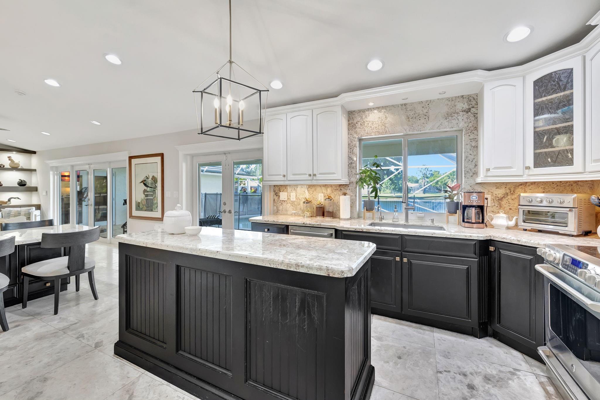 Step into luxury in this breathtaking, totally renovated home where no detail or expense has been overlooked or spared. A masterpiece of high-end finishes and thoughtful design offering unparalleled comfort and style! The home is enhanced by a brand new roof (incl 10 yr warr), new patio roof & ceiling, hurricane impact windows, doors, skylights & pool screen enclosure. Travertine circular driveway, beautiful wide lake view, pool area made for entertaining, high-end bathroom renovations, newer paint in & out, stone fireplace with custom cabinetry & shelves, great kitchen with granite & GE Cafe appliances. See attached List of renovations for more. Garage converted to office and storage (A/C), easily converted back to garage. It's a dream home! **Can't close before March 10th.