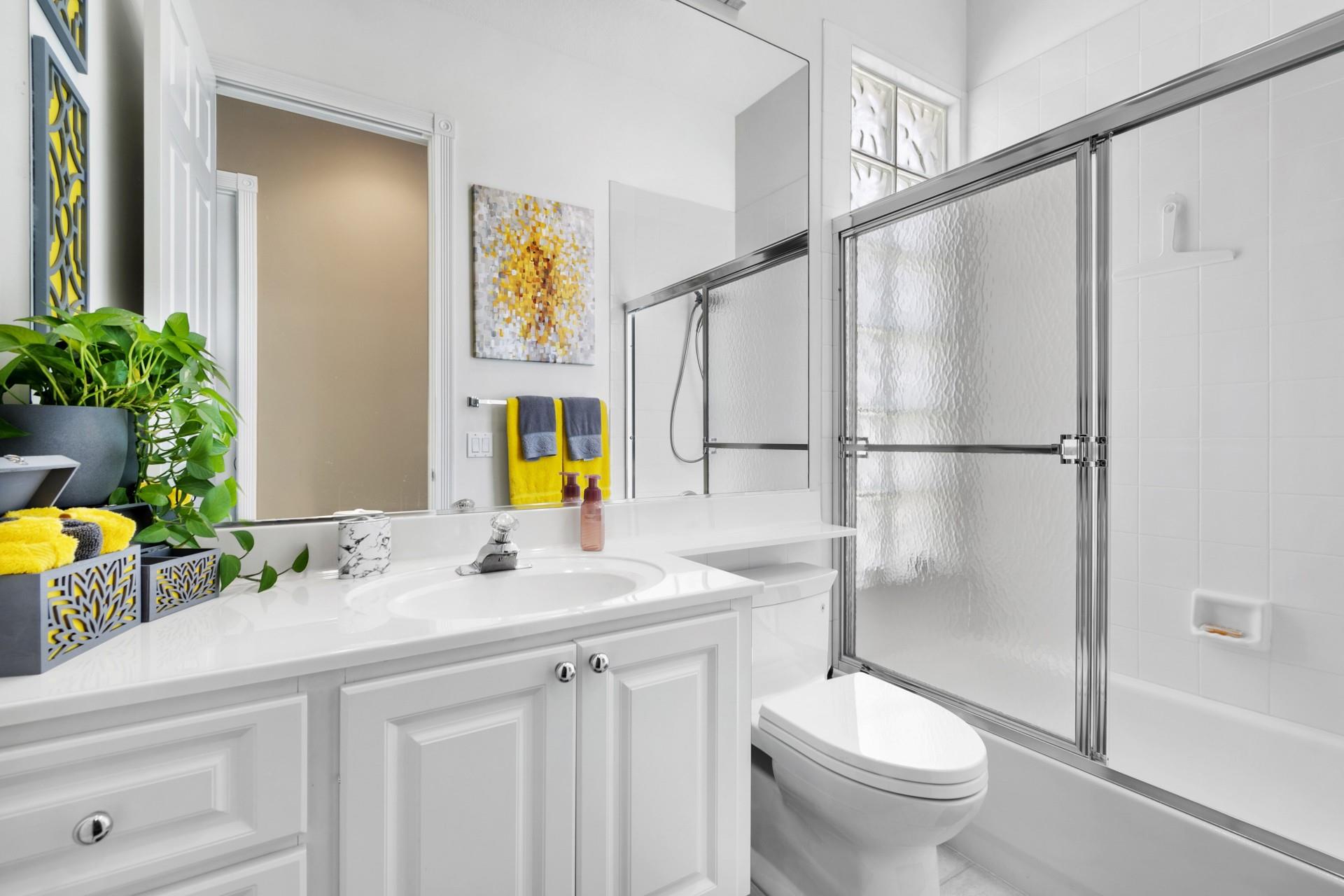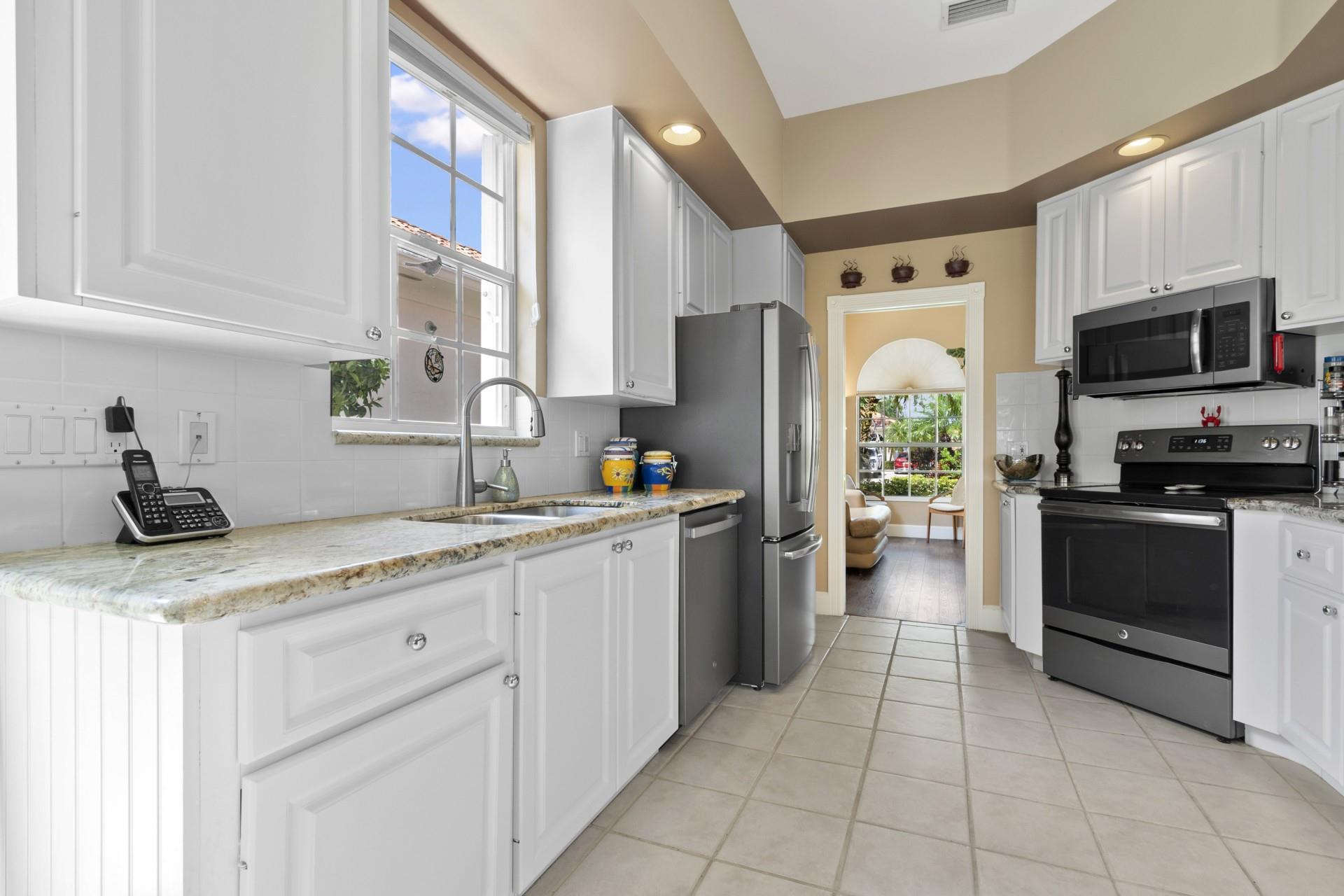 Discover the perfect blend of comfort, style, and luxury in this stunning 3-bedroom, 3-bathroom home with breathtaking lake views. This property also features a versatile office/den space, ideal for work, hobbies, or relaxation. The interior boasts laminate wood and tile flooring throughout, exuding warmth and elegance. At the heart of the home is a modern kitchen with granite countertops, ample cabinetry, and a seamless flow to the dining and living areas, perfect for hosting friends and family. Each bedroom offers privacy and comfort, with the primary suite featuring a luxurious his-and-hers en-suite bathroom and a garden tub. The attached two-car garage provides convenience and ample storage for vehicles and tools.
