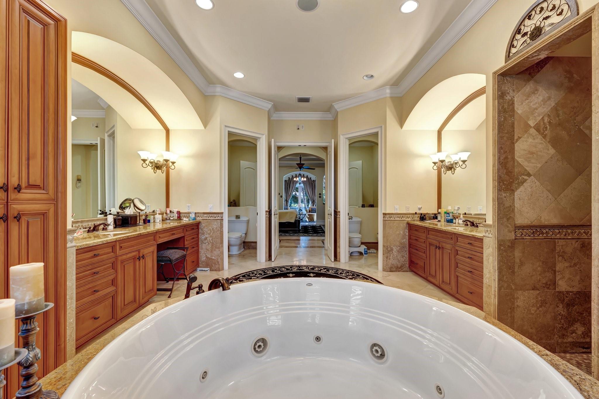 One owner custom estate home on a full acre. This home was built in 2007 for the broker-owner. City water & sewer in a private gated enclave of only 6 custom homes All concrete including the floors for the second level. With 6 bedrooms, 6 full and 2 half baths, each bedroom has an ensuite bathroom. Marble floors, volume ceilings, theater, club room, balcony, gym, custom office, card room, 2 bars, custom kitch, central vac, 2 laundry rooms, and elevator. Covered patio with summer kitchen. Resort style rear yard with custom 39k gallon pool and hot tub. Full home generator. Crestron smart home lighting and distributed audio. Please see ATTACHMENTS for full list of features, floor plans & roof cert report. All fixtures & window treatments included. Furniture available. Immaculately maintained.