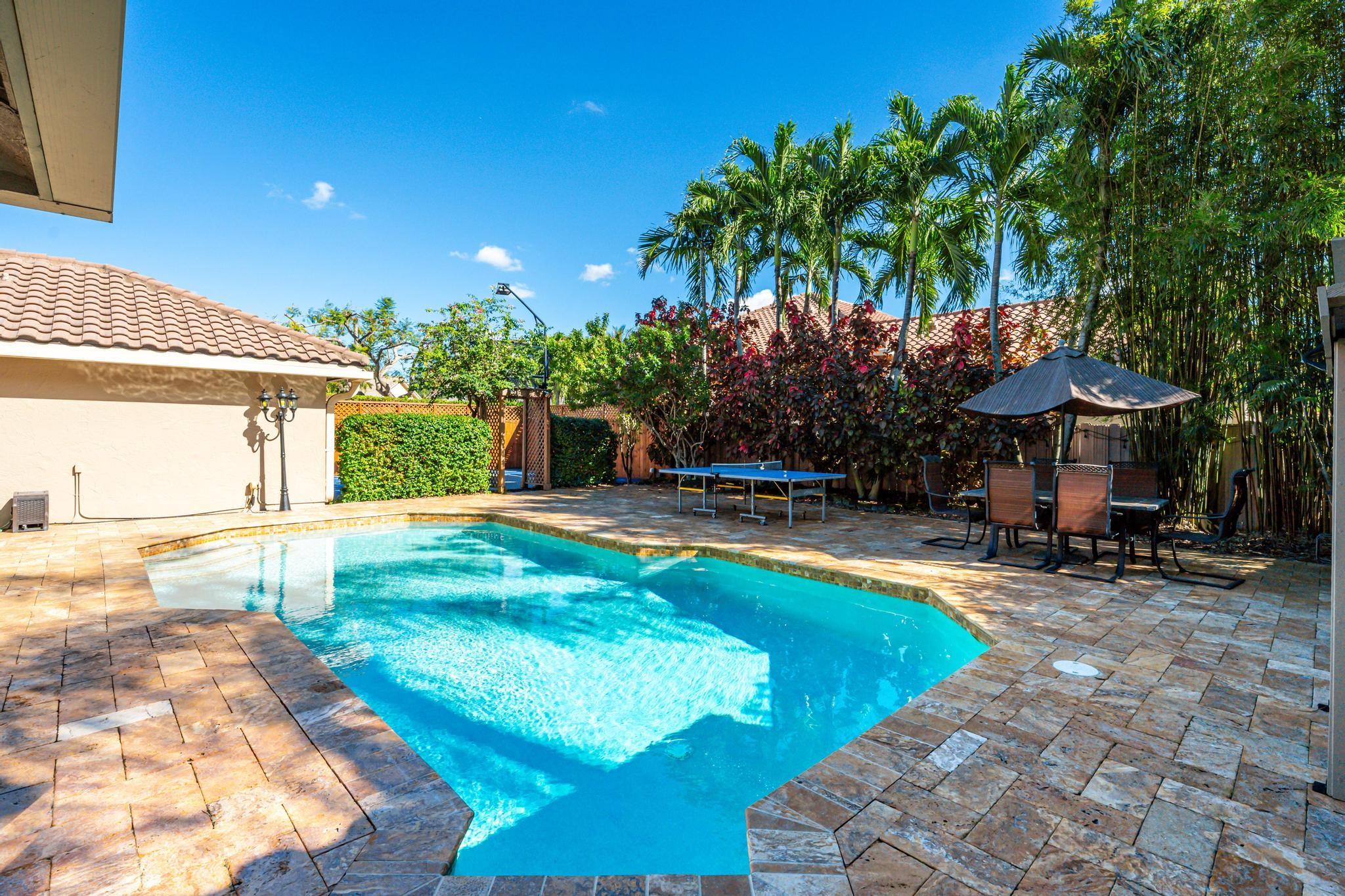 Luxury living in Weston’s Palm Island! Stunning, updated 5BR/4BA/4,449SF, single-story residence, nestled in the highly sought-after gated Palm Island community. Situated on a private corner lot, the home offers a lifestyle of unparalleled comfort and elegance with sunlit rooms, neutral decor, elegant marble flooring, chef’s kitchen, quartz countertops and built-in seating for every family occasion. The floorplan is well thought out with expansive Owner’s Suite, spa-style bath and generous sized secondary bedrooms. The exterior boasts complete privacy with fully fenced yard, sparkling saltwater pool, half-basketball court and dedicated dog run. Expansive covered patio provides the perfect backdrop for entertaining. Accordion shutter protection and circular driveway complete the offering.