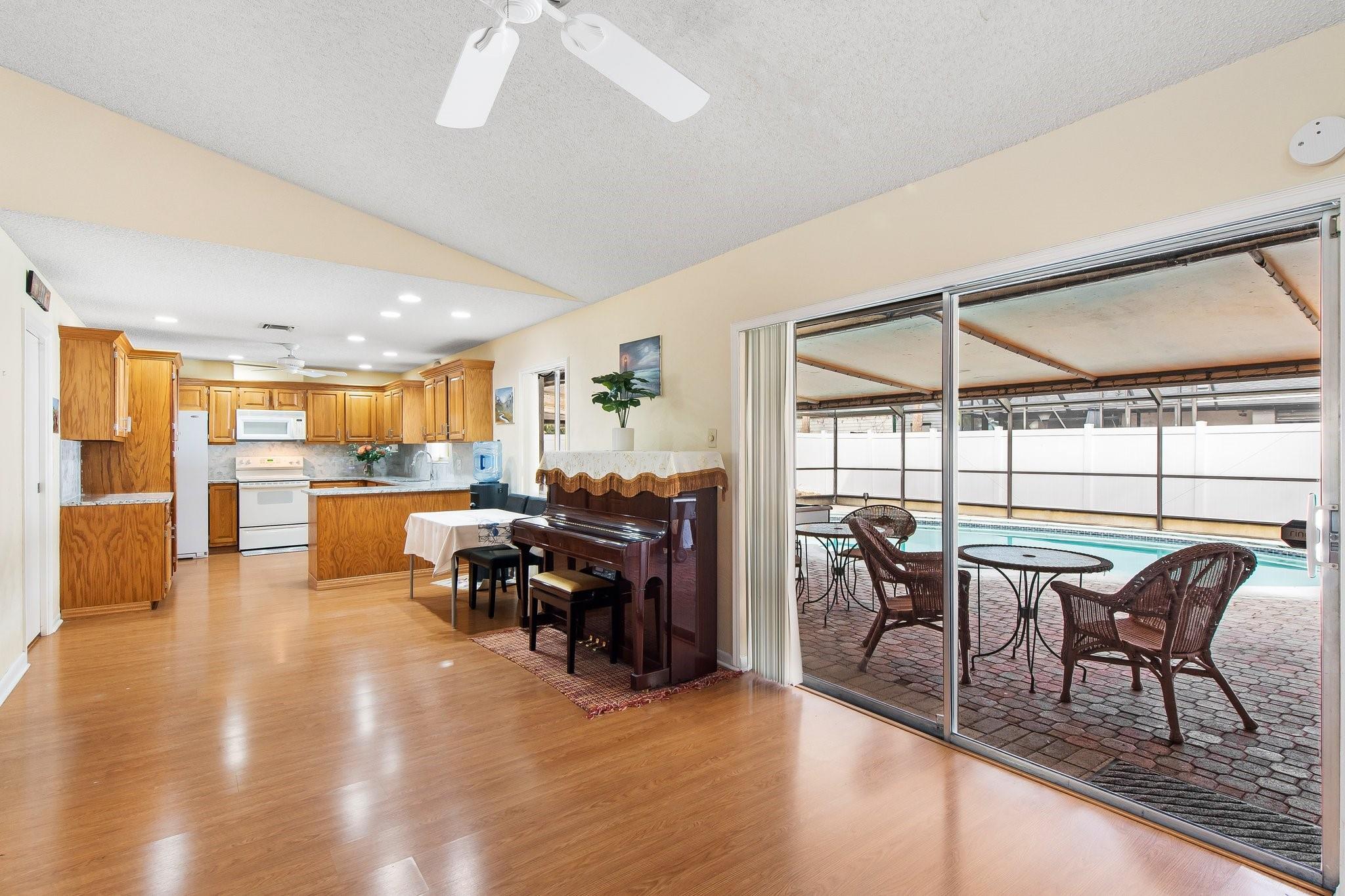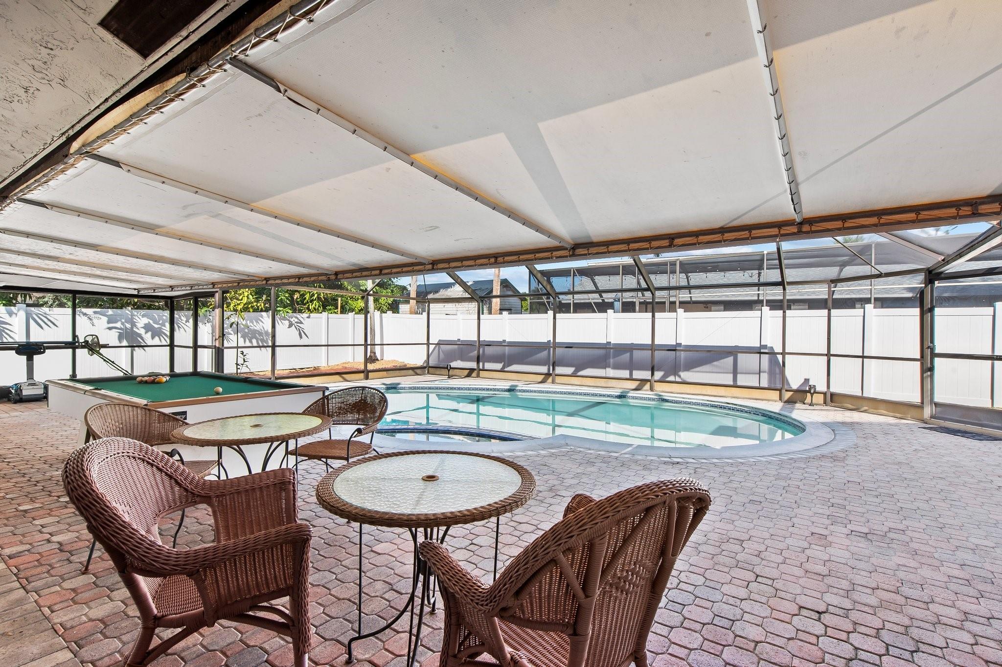Welcome to this inviting 3-bedroom, 2-bathroom home in a peaceful, no-HOA neighborhood. The open floor plan features vaulted ceilings and a spacious living room with custom shelving, ideal for storage or display. The kitchen offers granite countertops and well-maintained cabinetry. Step outside to the screened-in pool and patio area, perfect for enjoying Florida’s outdoor living. Additional features include Newer roof 2019, CPVC pipes installed 2019, newer a/c 2020, new fence 2024, new dishwasher 2024, a two-car garage and a convenient location near schools, Nova Southeastern University, shopping, and beaches.