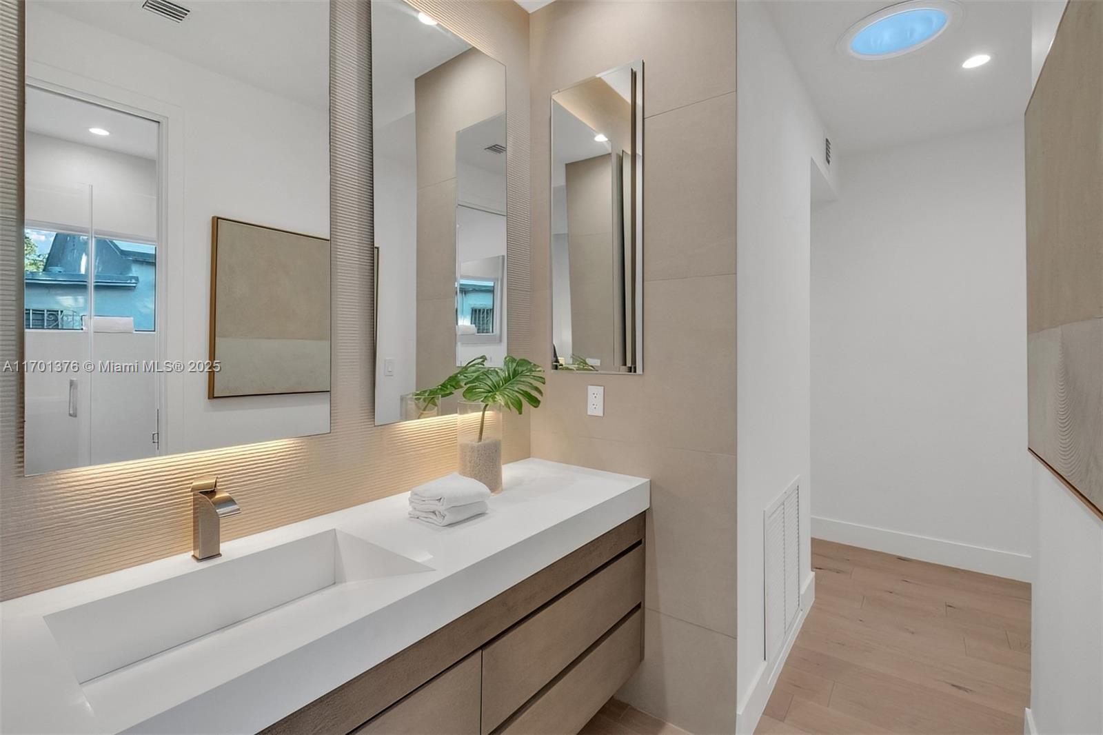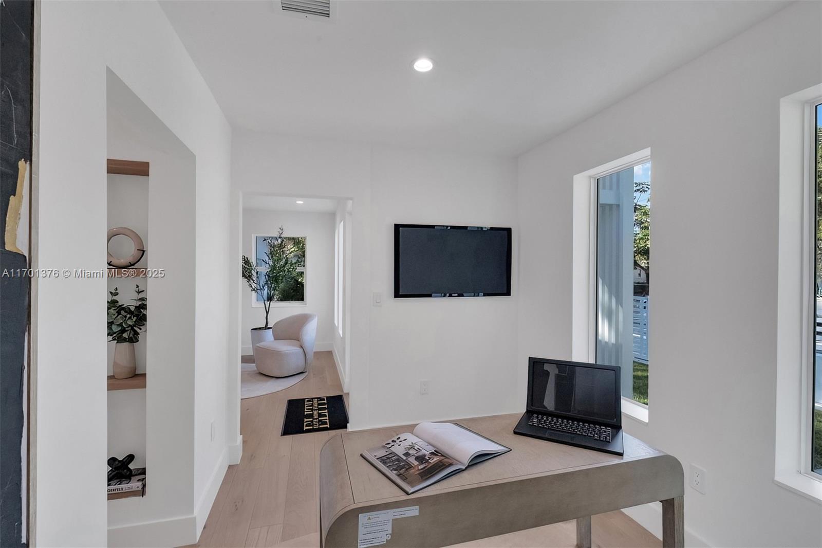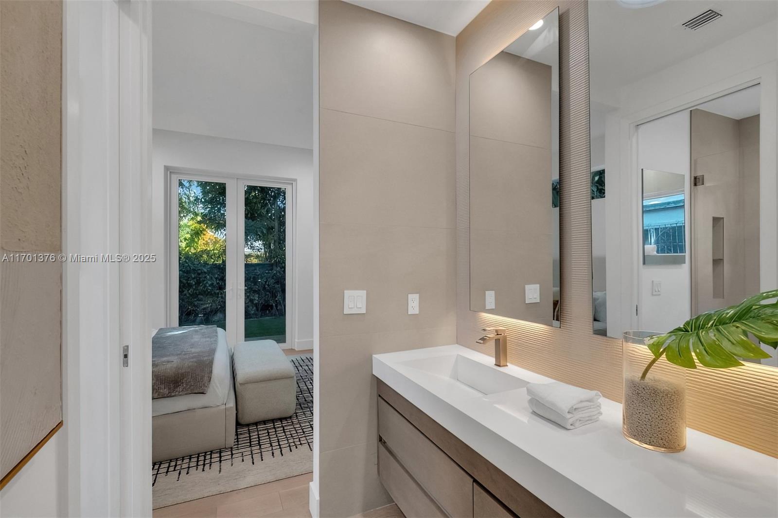 3 bedroom, 3 bath, + office, completely gut renovated including 1,000 sq. ft. of brand new living space & is located on a quiet, leafy street, blocks from the design district. Walking/biking distance to some of the best high-end retail, restaurants, & galleries. 1,981 sq ft of perfection surrounded by gigantic shade trees, totally fenced plus privacy hedge. Complete with 12-foot ceilings, 10 ft floor-to-ceiling impact glass windows, skylights & sky tunnels. Kitchen has Custom cabinetry, premium appliances & a 12-foot island. Primary bedroom has a French door to the rear deck, remote-controlled blackout shades, a big walk-in closet & spa like bath. Wood flooring, soundproofed walls throughout, 2 A/C units, tankless water heater & laundry closet . Truly turn-key and Move-In ready