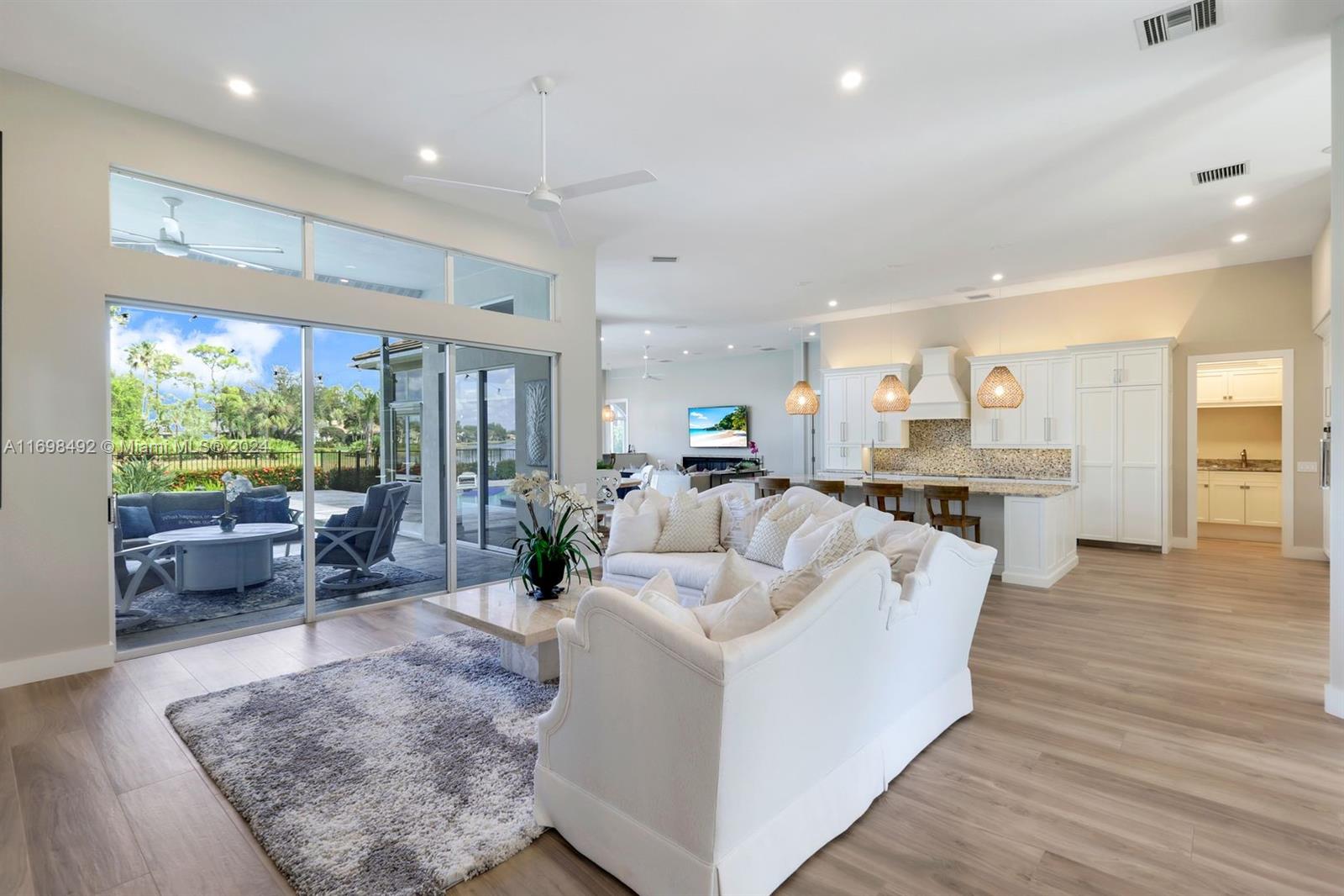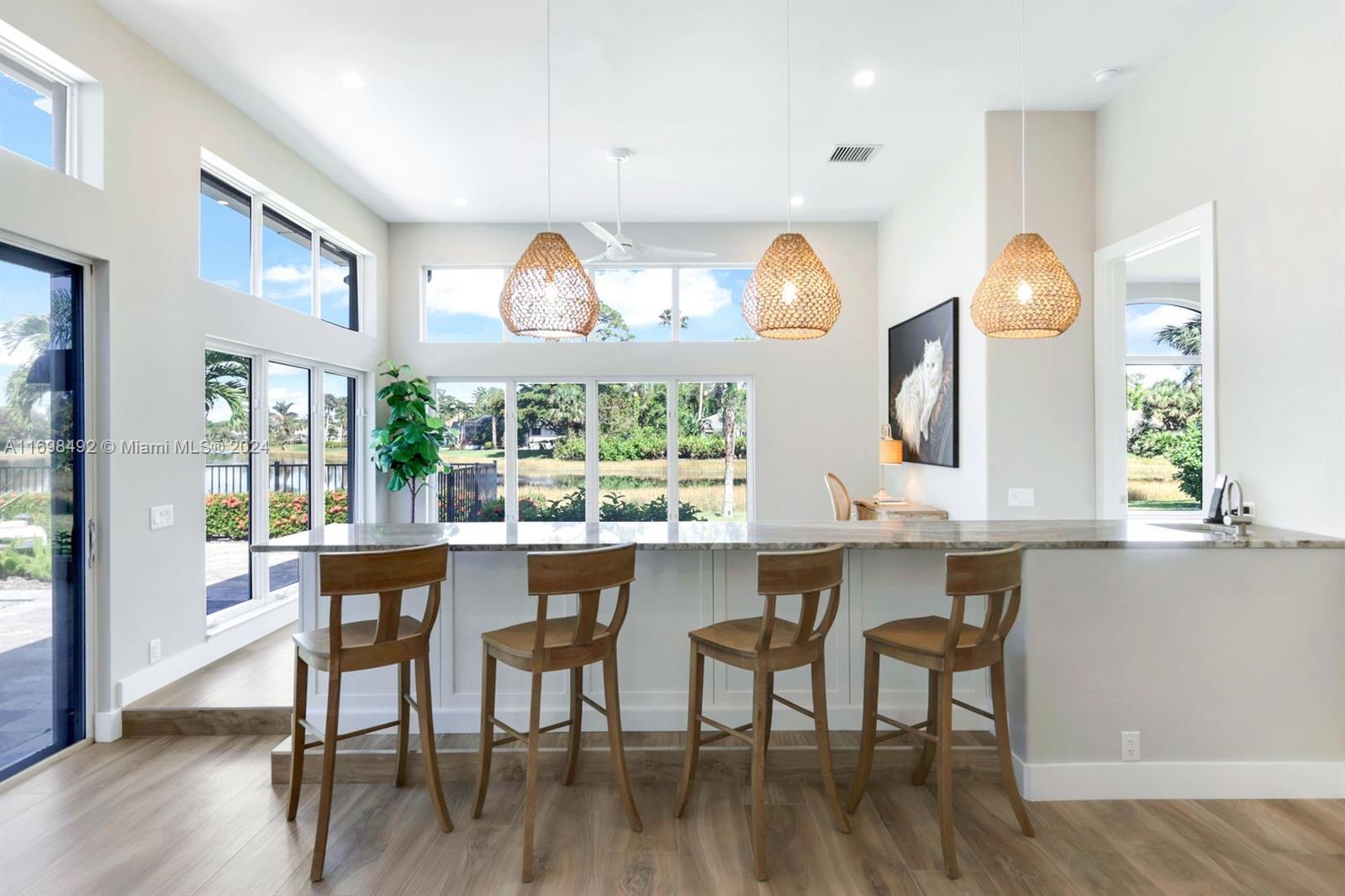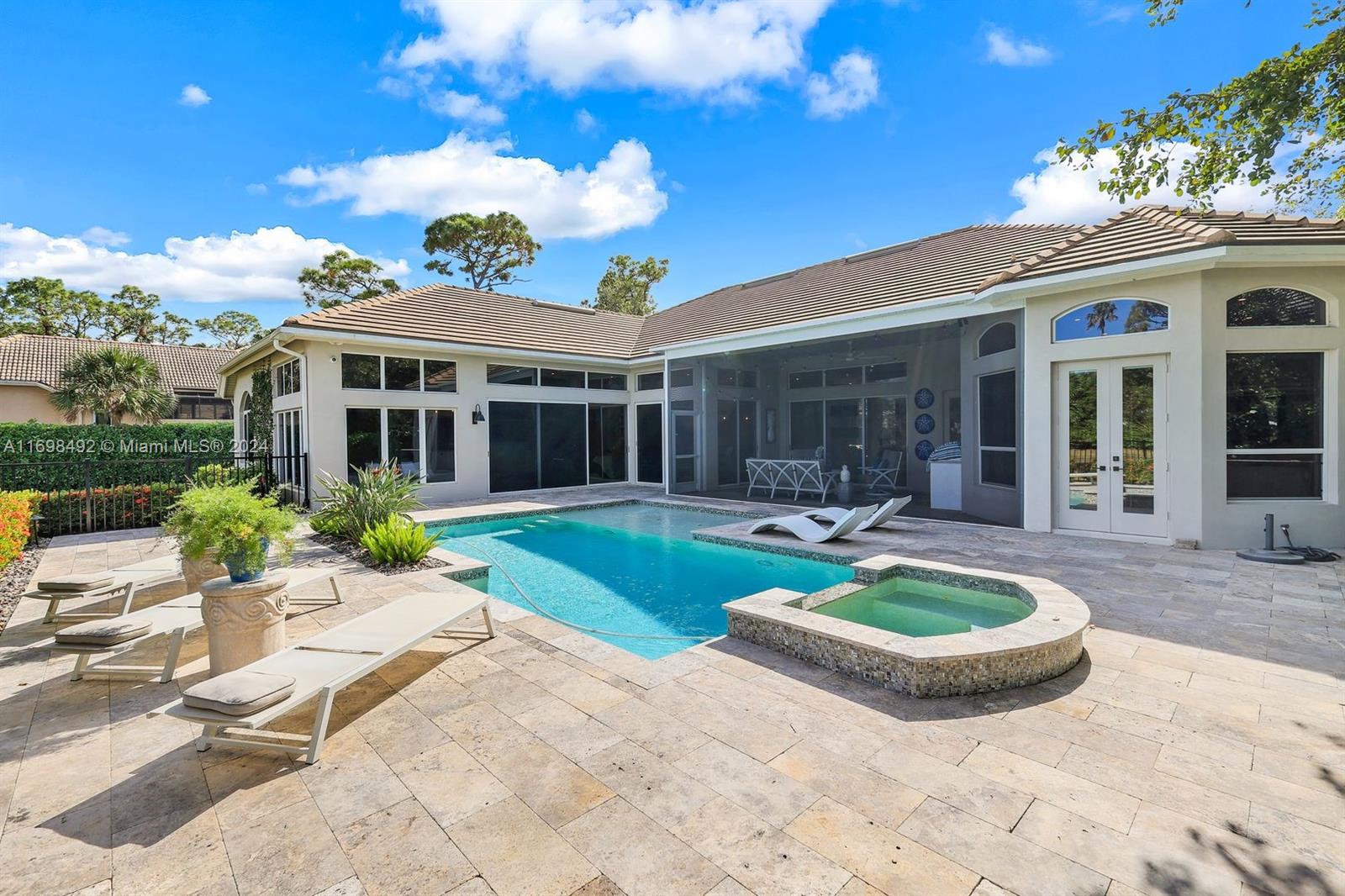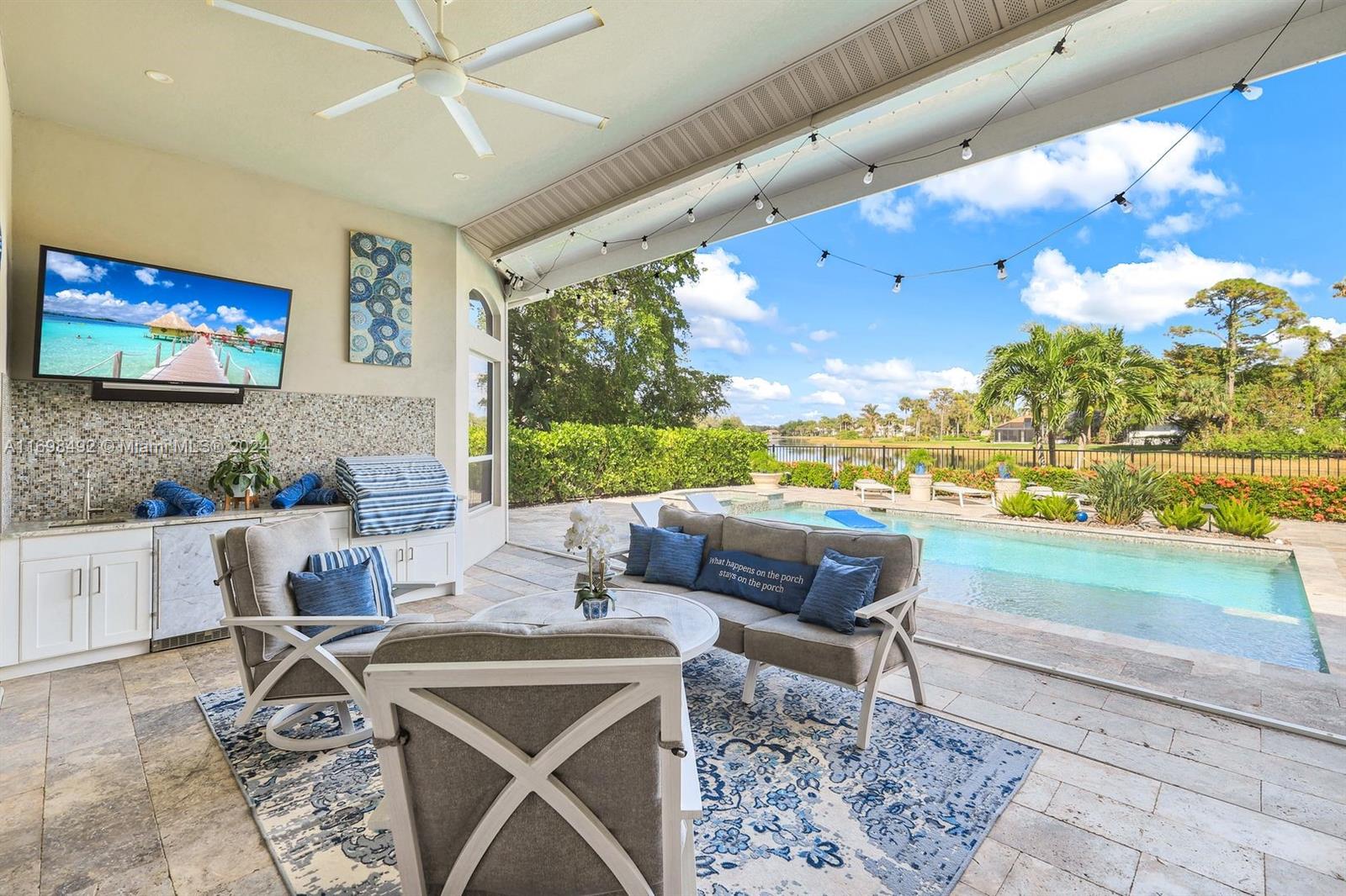 Arthur Rutenberg trophy home. Completely renovated in 2020. New roof, pool and landscaping. Serene views from every room. 12 foot ceilings. Flexible living areas. 4 bedrooms, 2 dens, game room/flex room. Wet bar, Beverage refrigerator. Max storage. High end appliances. Custom cabinetry. 2 primary suites. One in its own private wing has french doors with direct pool/spa access. Large soaking tub. Separate makeup vanity. The 2nd primary bedroom also in a private wing. Lanai has outdoor kitchen and TV. Saltwater, pool. Hot tub. Tanning shelf. New AC. Generator. ADA accessible shower. Private beach club. Community center. Gym, racket sports, beach club, clubhouse. Onsite marina with Gulf access. Amenity rich like-new home. Centrally located. Priced below replacement value. Low fees.