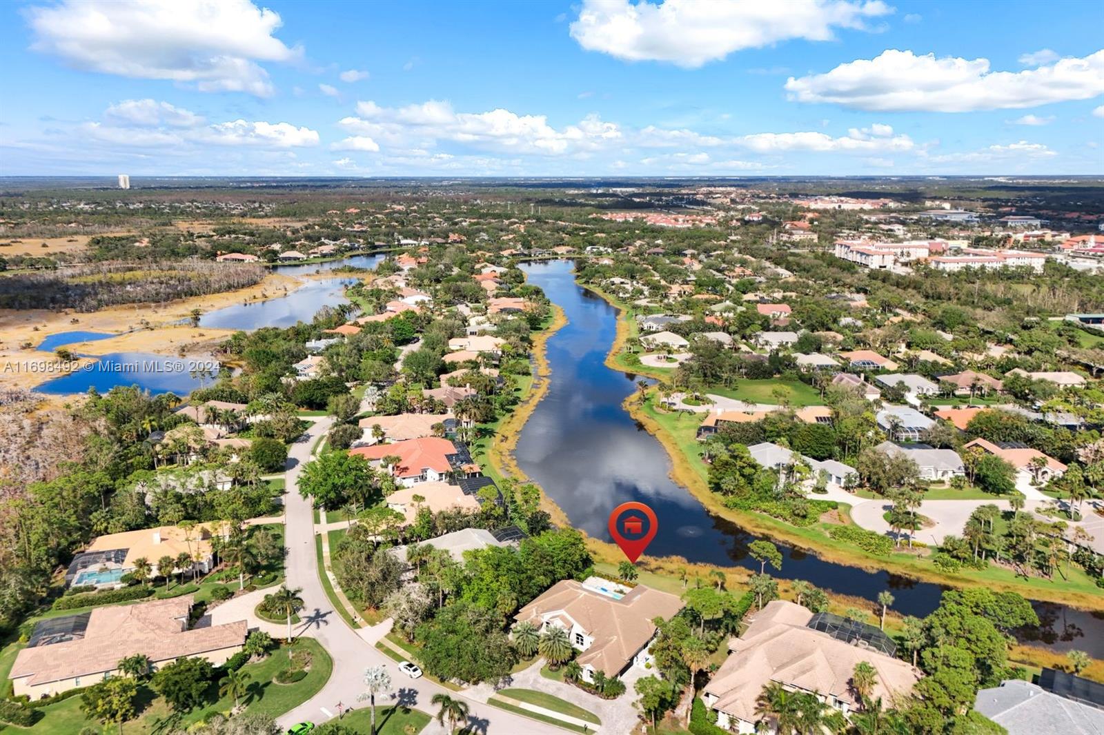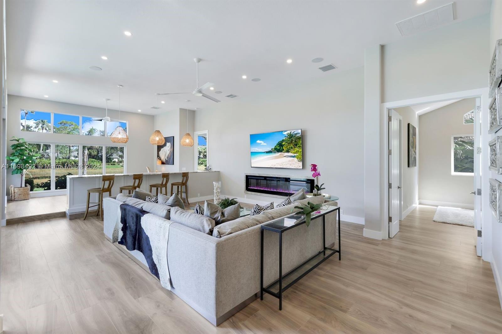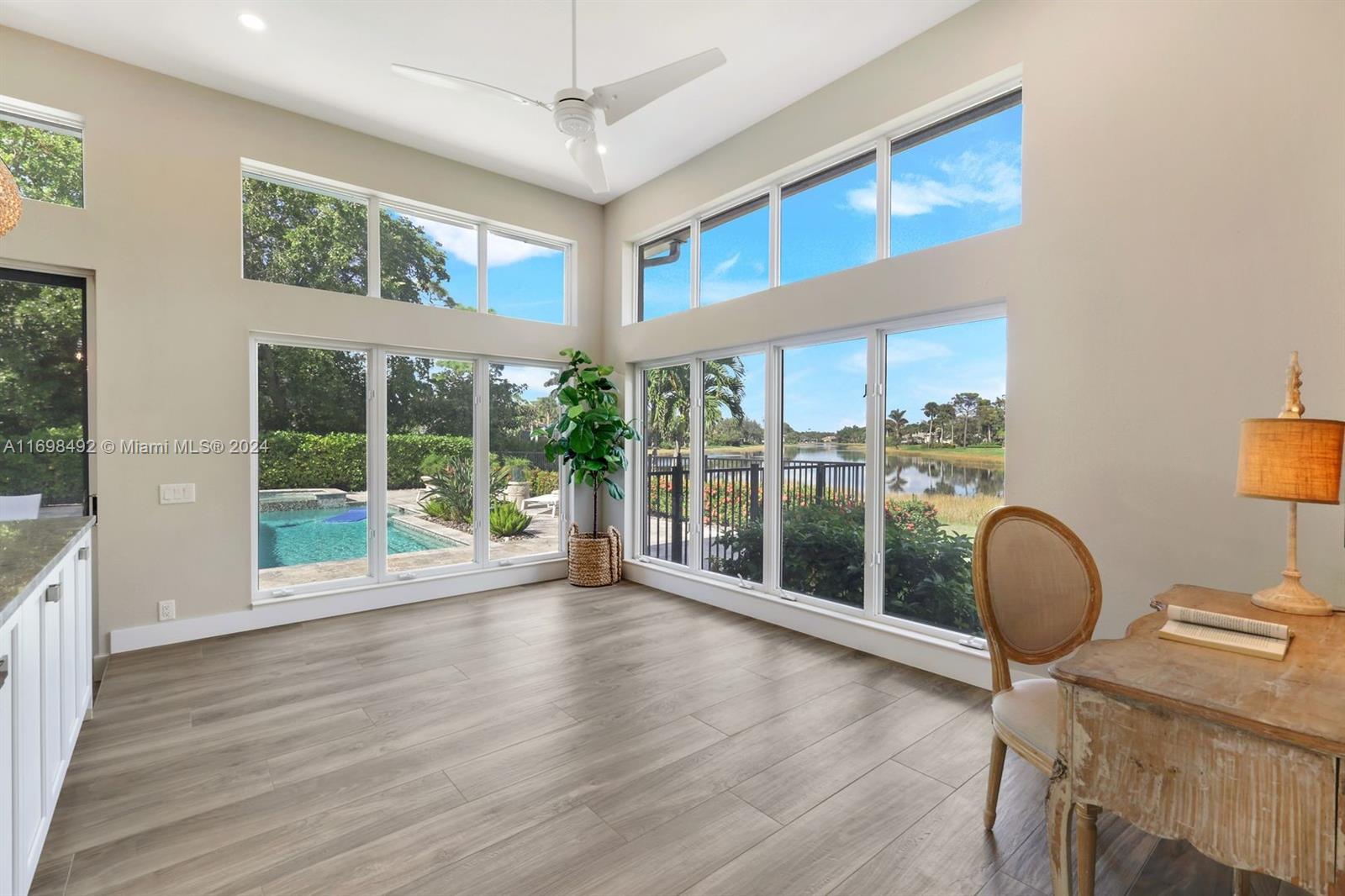 Arthur Rutenberg trophy home. Completely renovated in 2020. New roof, pool and landscaping. Serene views from every room. 12 foot ceilings. Flexible living areas. 4 bedrooms, 2 dens, game room/flex room. Wet bar, Beverage refrigerator. Max storage. High end appliances. Custom cabinetry. 2 primary suites. One in its own private wing has french doors with direct pool/spa access. Large soaking tub. Separate makeup vanity. The 2nd primary bedroom also in a private wing. Lanai has outdoor kitchen and TV. Saltwater, pool. Hot tub. Tanning shelf. New AC. Generator. ADA accessible shower. Private beach club. Community center. Gym, racket sports, beach club, clubhouse. Onsite marina with Gulf access. Amenity rich like-new home. Centrally located. Priced below replacement value. Low fees.