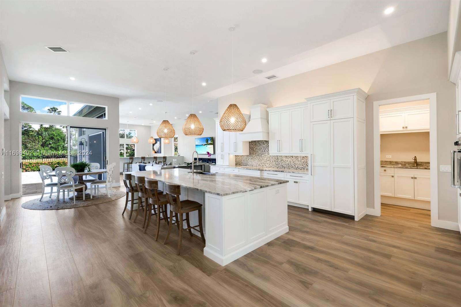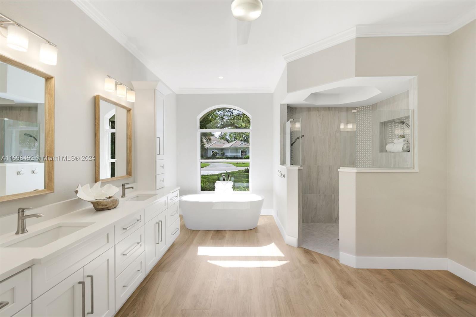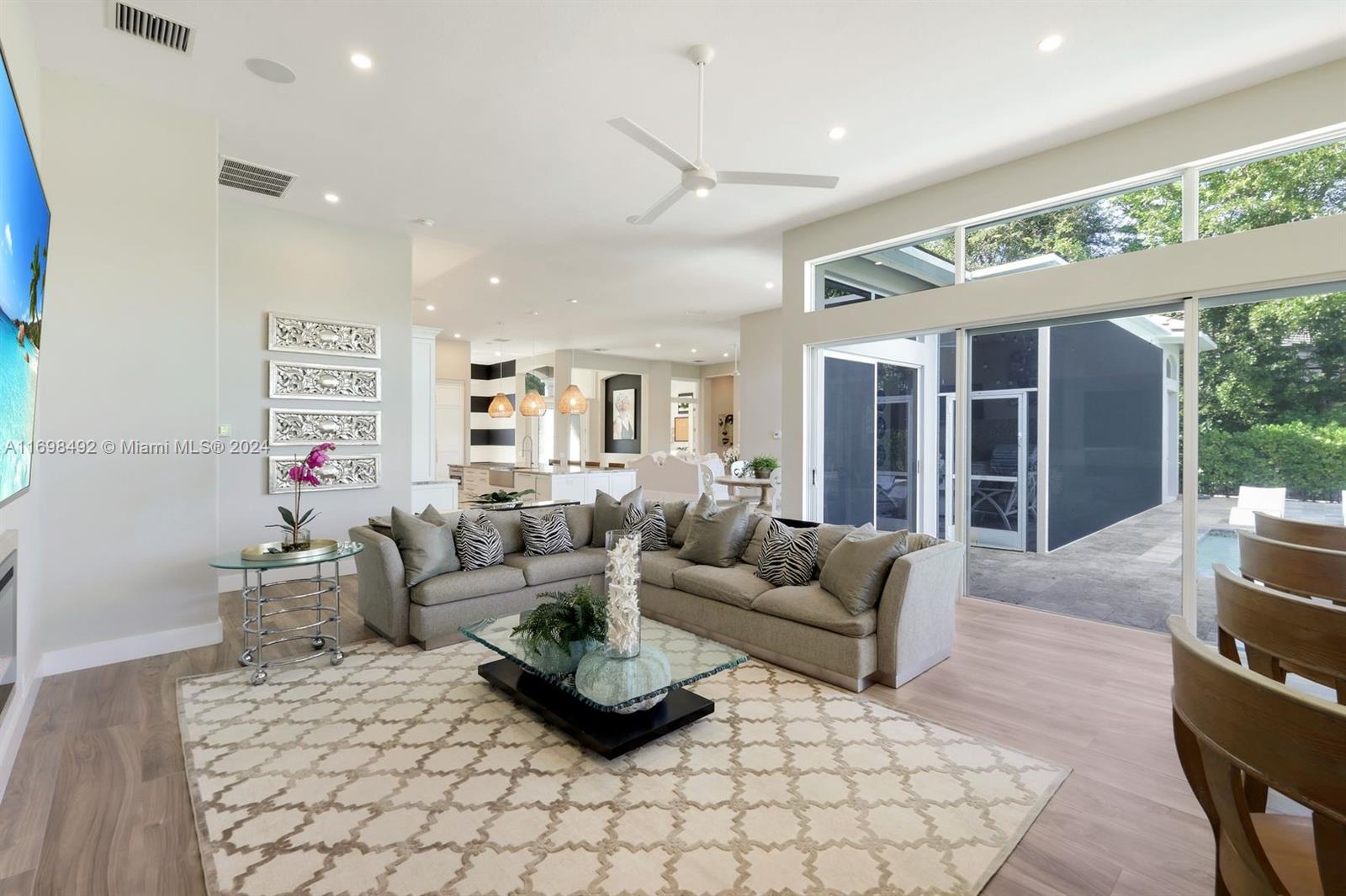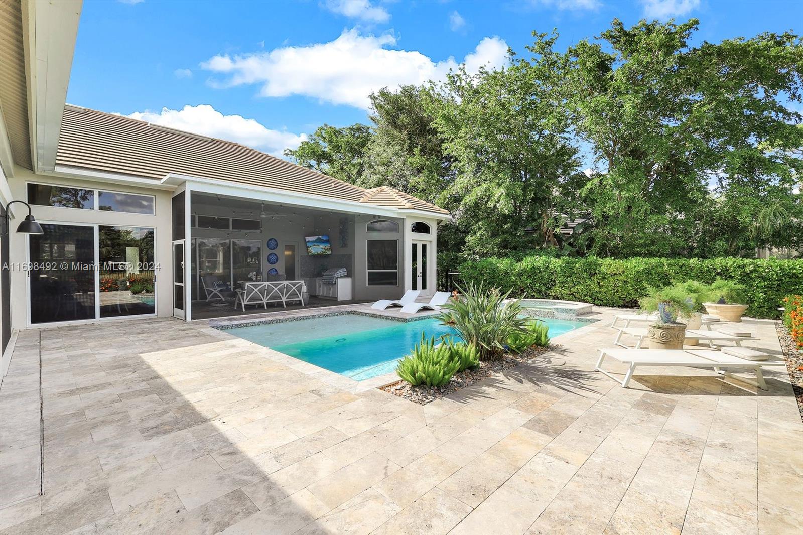 Arthur Rutenberg trophy home. Completely renovated in 2020. New roof, pool and landscaping. Serene views from every room. 12 foot ceilings. Flexible living areas. 4 bedrooms, 2 dens, game room/flex room. Wet bar, Beverage refrigerator. Max storage. High end appliances. Custom cabinetry. 2 primary suites. One in its own private wing has french doors with direct pool/spa access. Large soaking tub. Separate makeup vanity. The 2nd primary bedroom also in a private wing. Lanai has outdoor kitchen and TV. Saltwater, pool. Hot tub. Tanning shelf. New AC. Generator. ADA accessible shower. Private beach club. Community center. Gym, racket sports, beach club, clubhouse. Onsite marina with Gulf access. Amenity rich like-new home. Centrally located. Priced below replacement value. Low fees.