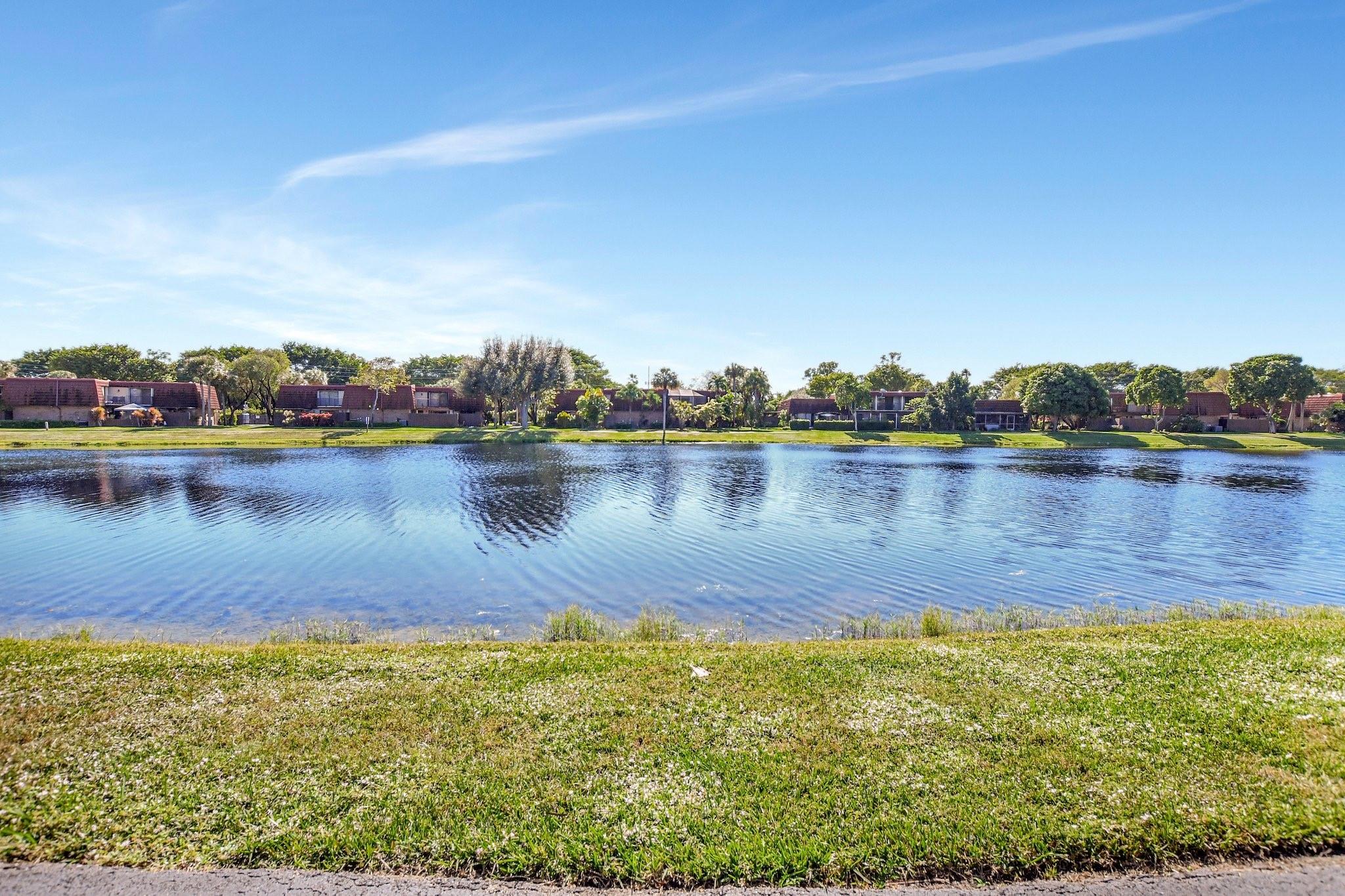 Stunning 2/2 waterfront corner unit in the highly desirable Lakes of Boca Rio. Awesome lake view! This home features new 24x48 ceramic tile floors throughout, with beautiful new tile flooring in the private fenced-in courtyard. The beautifully remodeled kitchen features 3-year-old appliances, and both bathrooms have been completely updated. Additional upgrades include IMPACT WINDOWS, a 3-year-old tankless water heater, custom closets, and new lighting, fans, blinds, outlets, and switches throughout. The screened-in patio has new screens, and the unit offers a driveway for 2 cars, and a convenient storage shed. The community features a newly renovated clubhouse, pool, tennis courts, and is pet-friendly with a low HOA. A+ schools.