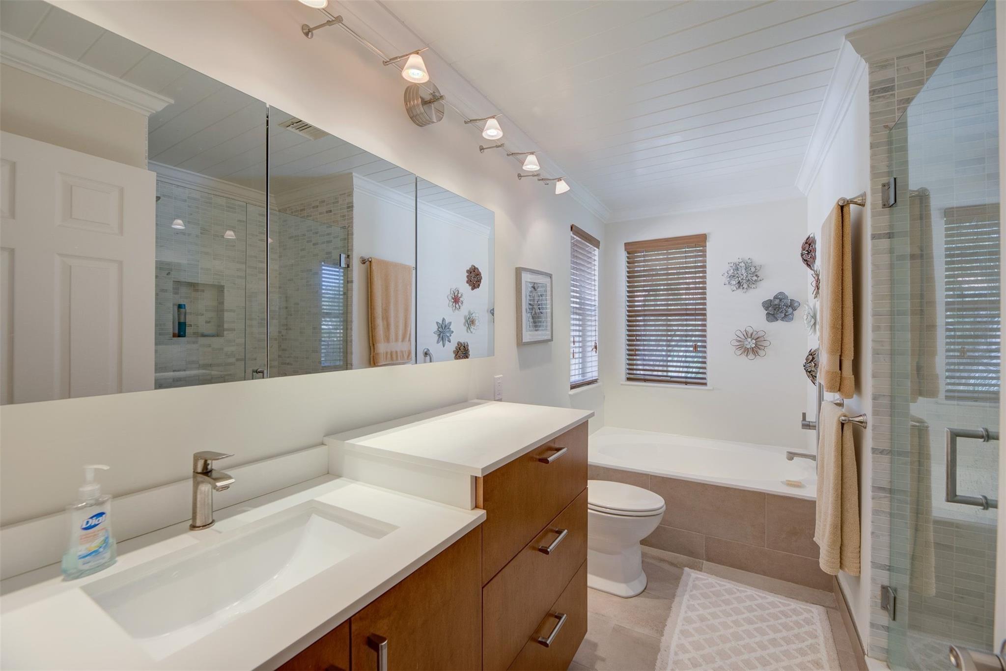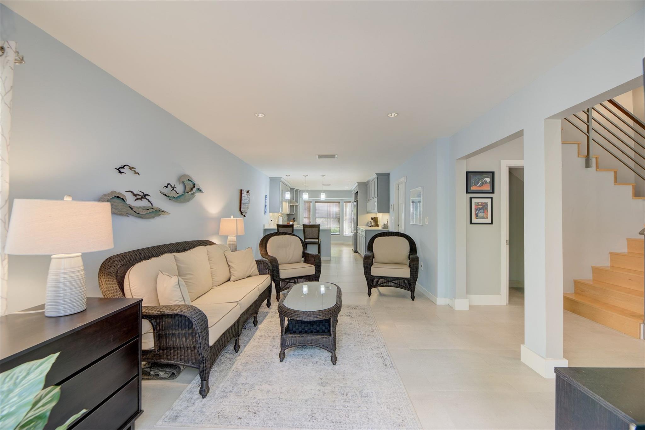 STUNNING 3/2.5 WITH 2 CAR GARAGE AND LOCATED ON A GREAT LOT WITH NO BACK NEIGHBORS AND VIEWS OF THE PARK. COMPLETELY UPGRADED WITH 24X24 PORCELEIN TILE DOWNSTAIRS AND WOOD UPSTAIRS. KITCHEN AREA HAS BEEN OPENED UP GIVING A TREMENDOUS AMOUNT OF OPEN SPACE. BEAUTIFUL ISLAND KITCHEN THAT OFFERS QUARTZ COUNTER TOPS, STAINLESS STEEL APPLIANCES, AND CUSTOM CABINETS. MODERN METAL RAILING THAT LEADS YOU TO THE SECOND FLOORS THAT HAS WOOD PANEL CEILINGS GIVING A KEY WEST VIBE. LARGE PRIMARY ROOM WITH GREAT VIEWS OF THE PARK, 2 SEPARATE CLOSETS WITH BUILT INS, GLASS ENCLOSED SHOWER WITH RIVER ROCK AND SUBWAY TILING. FRENCH DOORS LEAD OUT TO THE PATIO AREA FROM THE LIVING ROOM AND FAMILY ROOM WHICH IS WONDERFUL FOR ENTERTAINING, BBQ'S OR JUST TO RELAX. ROOM FOR A POOL. MINUTES TO THE AIRPORT