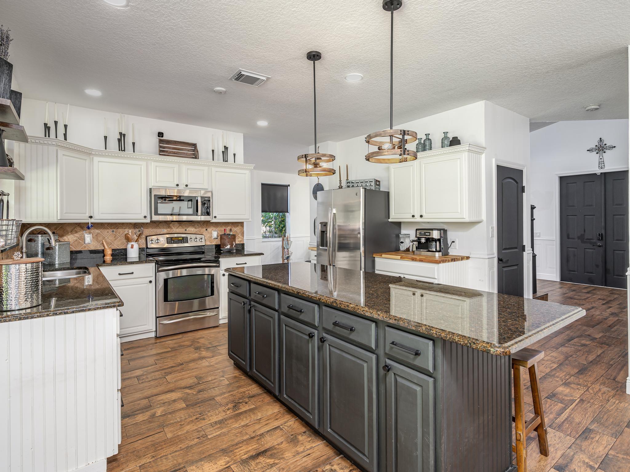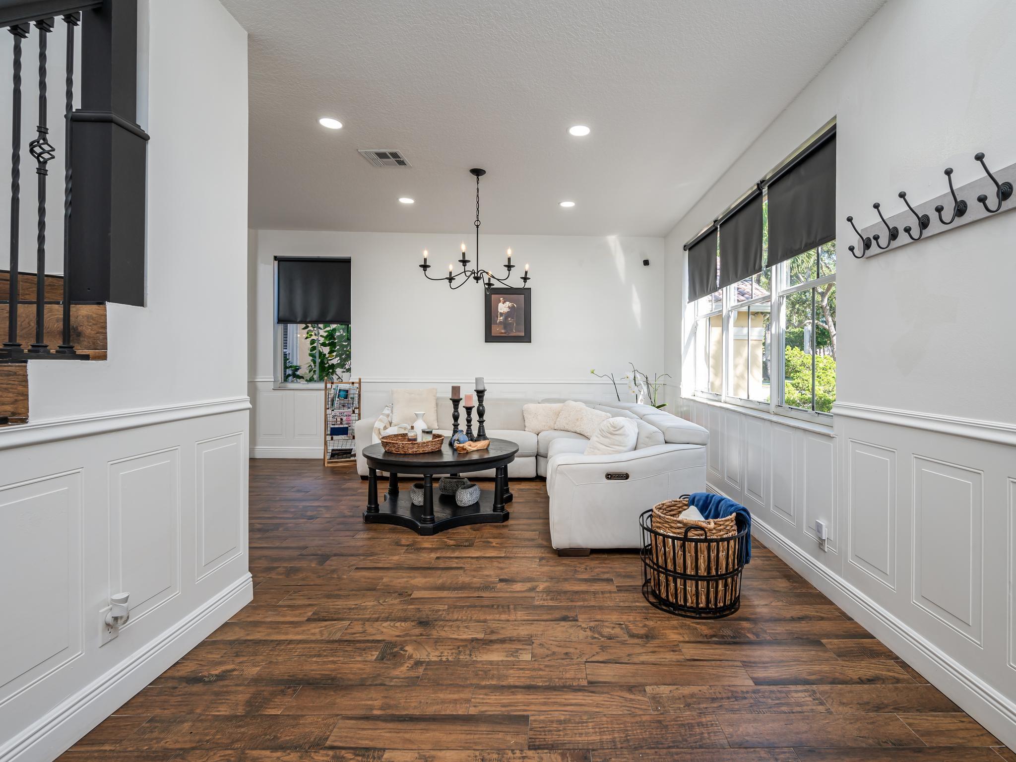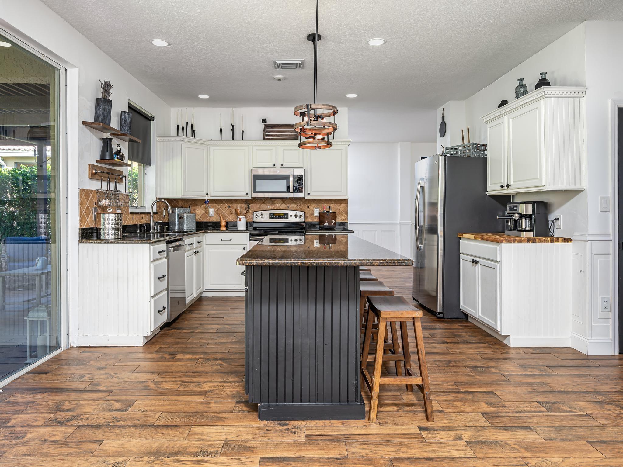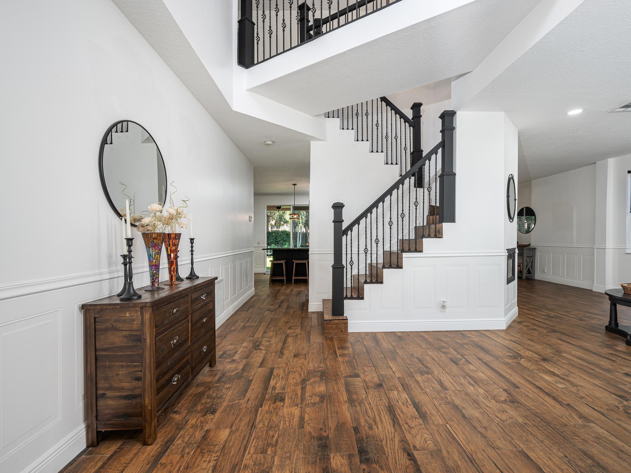 Tastefully remodeled and classy throughout home on lush landscaped private lot. Master Bath fully updated along with all other bathrooms, All newer flooring, newer ac units, newer electrical, new lighting fixtures, Newer water heater & more...Large Center island in kitchen accompanied by stainless steel appliances, beveled granite tops, and open feel. Living room has built in electric fireplace. Paradise backyard with huge pergola overhang that is plumbed for electric and water and great bbq spot. Tons of grass as well. This lot is special with no neighbors behind you. Classy interior charm with decorative chair rail, modern colors, metal banisters, & so much more. Guard Gated community. Pool, pickleball courts, basketball courts, clubhouse, walking trails, playgrounds. A+ schools.