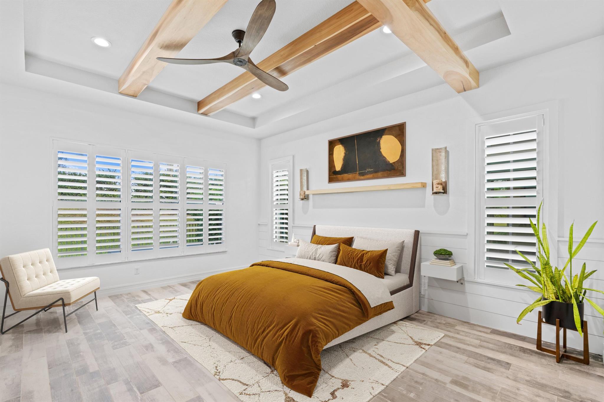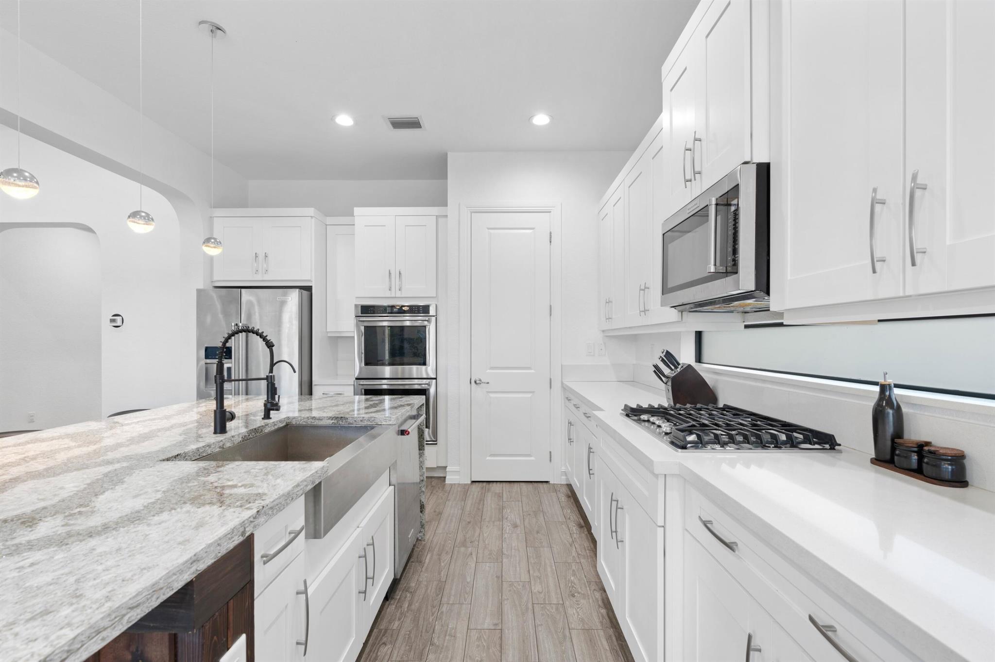 STUNNING LANCASTER MODEL W/OVER $250K IN UPGRADES! This 2017 meticulously maintained 4-bed/3.5bath, offers luxury and modern living. You'll be greeted by soaring wood-beamed high ceilings, open layout bathed in natural light and whole house generator for peace of mind. The chef's kitchen is a dream come true, featuring a dual stove, large quartz island, high end stainless steel appliances and a large farmhouse sink w/water filtration system. Beautifully designed office/lounge, wine closet and designer crafted shelves. The spacious master suite boasts custom-built closets and a luxurious ensuite bathroom. Entertain guests in style with a backyard retreat, including a saltwater heated pool, BBQ grill and putting green! 24/7 security, fantastic amenities, kid's & dog park. A+ Schools