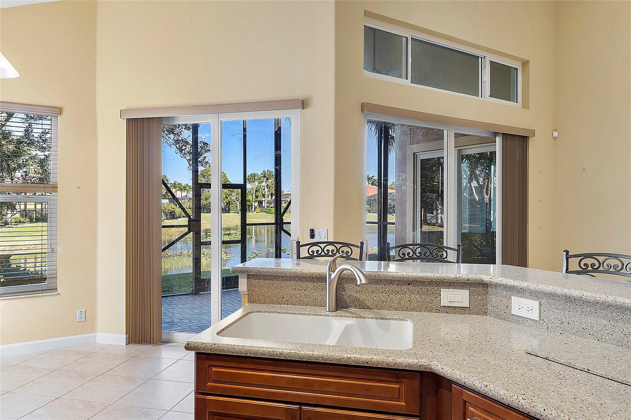 MOTIVATED SELLER! Huge reduction for quick sale! Heron Bay 2-story, 4 bedroom + oversized loft (possible 5th bedroom). Primary suite + 1 bedroom & full bath DOWNSTAIRS. "Freeport" model in Bay Cove. Impact windows/doors. Cherry wood cabinets with pullouts, stainless appliances, granite countertops. Italian tile in living areas. Screened-in porch/patio overlooks gorgeous private lake & lagoon. Open balcony. Large family room + separate living room with stunning water views. 2 resort-style clubhouses, 3 gyms, basketball, 13 tennis courts, 6 new pickleball courts, brand-new waterpark, party rooms for events. A+ schools. Walk to shops & parks.