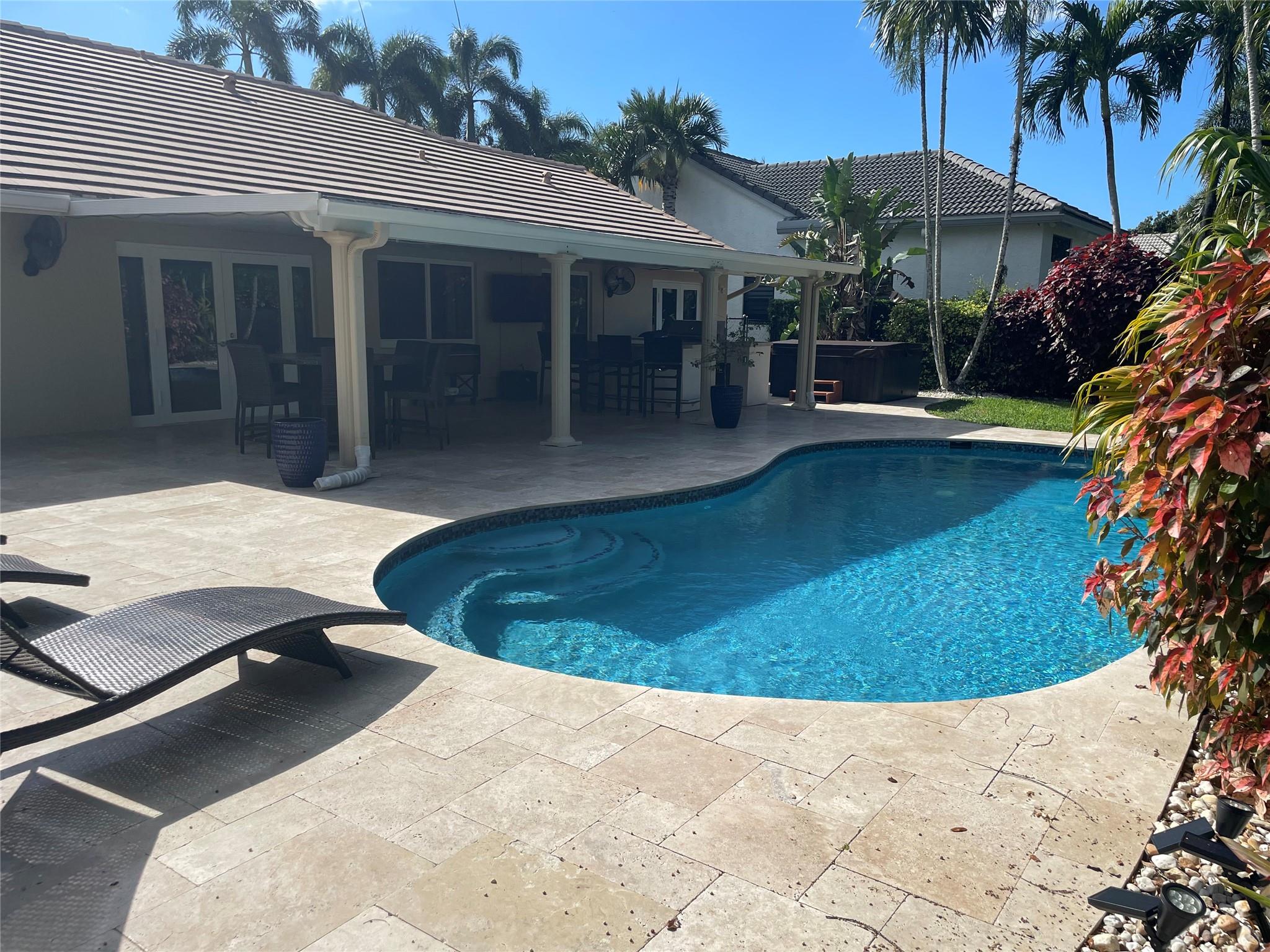***PRICE REDUCED/OWNER MOTIVATED***This beautifully remodeled home is move-in ready and perfect for those seeking luxury and comfort. The home underwent a complete renovation in 2018, including a new roof, an updated kitchen with pull-out shelves and soft-close doors and drawers, and stylish bathrooms that will impress even the most discerning buyers. The exterior was freshly repainted in November 2024, offering a crisp, clean look. Additionally, impact windows and French doors throughout provide enhanced storm protection for peace of mind. Step outside to enjoy the stunning travertine deck and pool, which was resurfaced in 2022. The backyard also features an outdoor kitchen with a built-in BBQ—an entertainer’s dream! Don’t miss your chance to make this gorgeous home yours today!