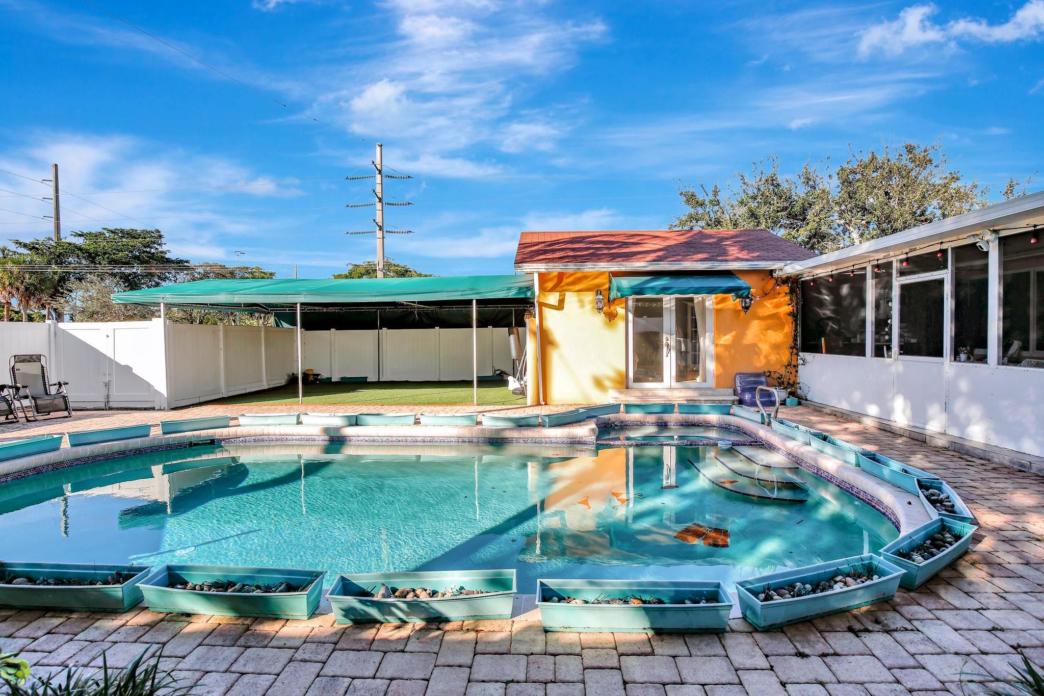 Nestled in desirable Hollywood Hills, this thoughtfully designed and expanded (2,287 sf) 4/3 + Den home with split plan Features: 2 Formal Dining Rooms, 2 Primary Bedroom Suites, elegant Living Room with BAR, FULL Outdoor Kitchen, Dining & Lounging area on screened Poolside Patio. Safely store your BOAT via the alley access to the fully fenced generous corner lot OR use large covered space to host parties. The Main Primary Bedroom with French doors leading to the pool area has 2 beautifully remodeled private bathing spaces. 1 private WC with jetted tub & double sinks, the other private WC with seamless glass shower, toilet & bidet, and single sink providing ultimate privacy & convenience. Roof 8 years NEW; 2 Tankless Water Heaters NEW; IMPACT WINDOWS/DOORS, White PVC Fencing NEW + more.