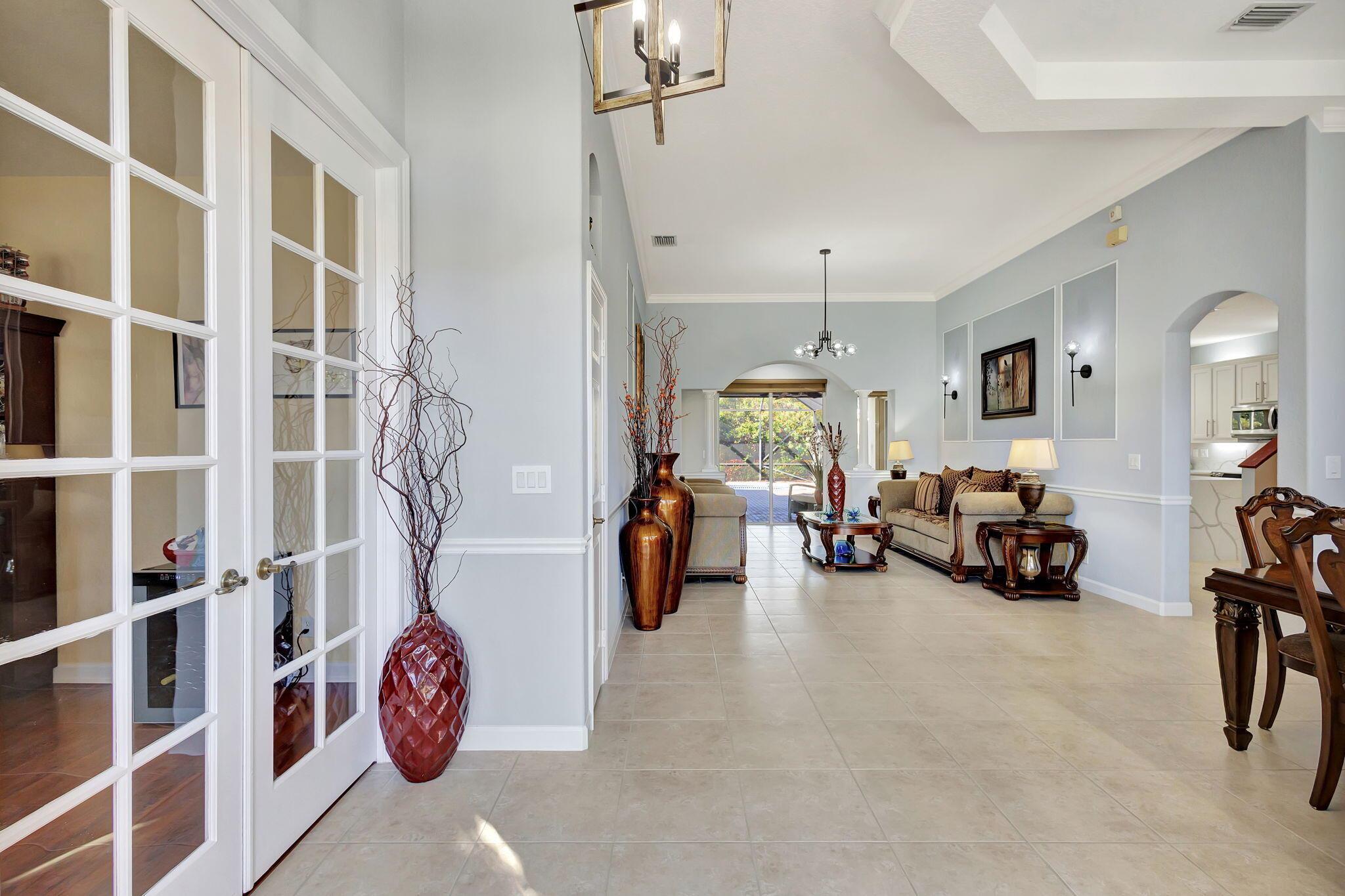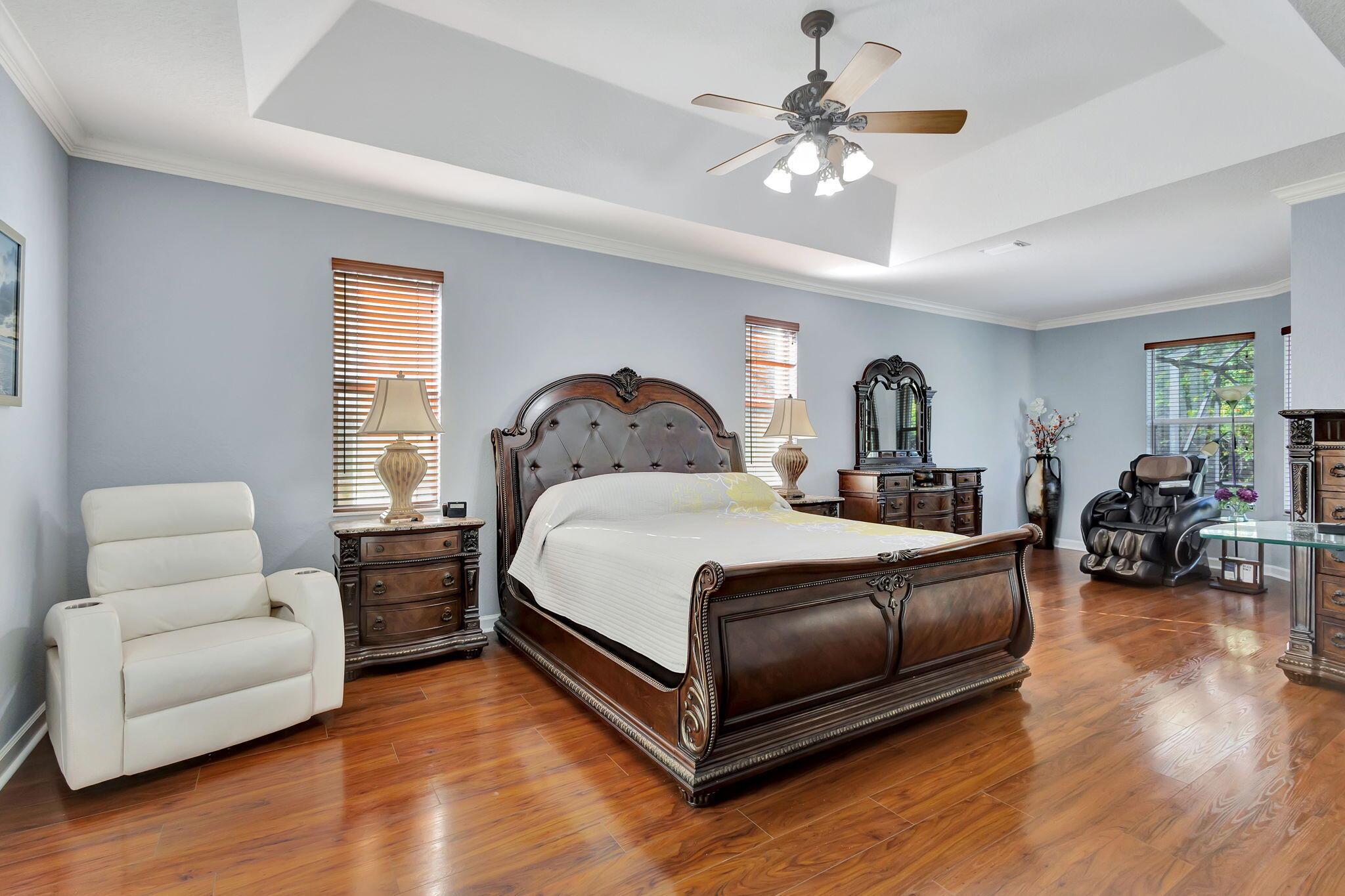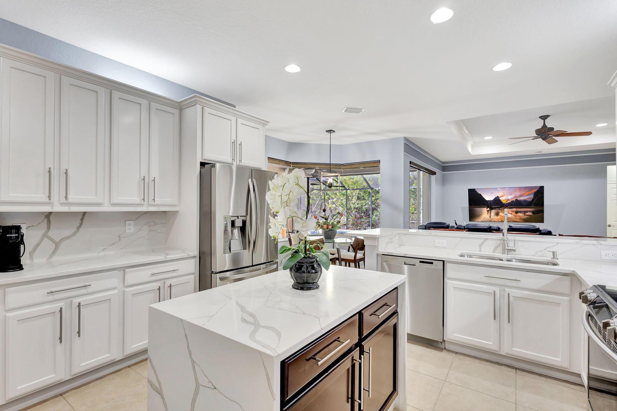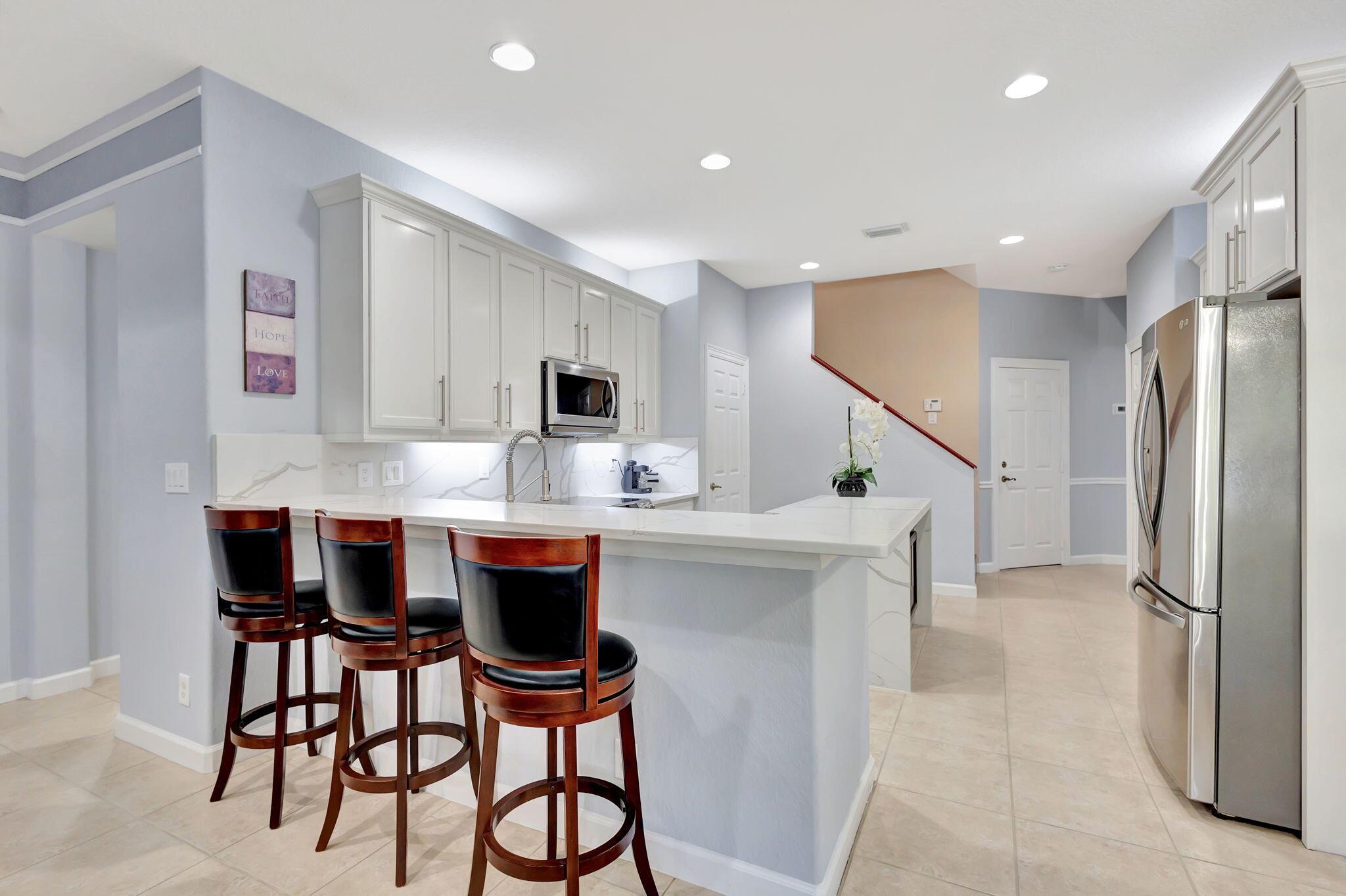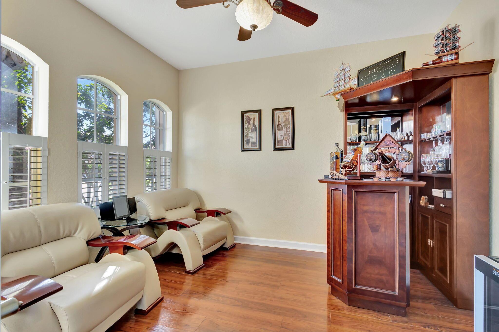 This stunning 5-bedroom, 4-bathroom home plus a den/office is move-in ready and features a primary bedroom and three additional bedrooms on the first floor, with a loft and another bedroom and bathroom upstairs. It boasts a large covered patio, a private heated pool, cabana bath and backs up to a preserve for added privacy. This home includes a newly updated kitchen and bathrooms, a 3-car garage, office nook and ample storage, including a large second-floor storage closet. Additional features include newer water heater, paver patio, accordion shutters, a hurricane-rated front door, and a garage door. The HOA covers alarm service, lawn care, tree maintenance, pool, sauna, tennis, pickleball, playground, and security gate.