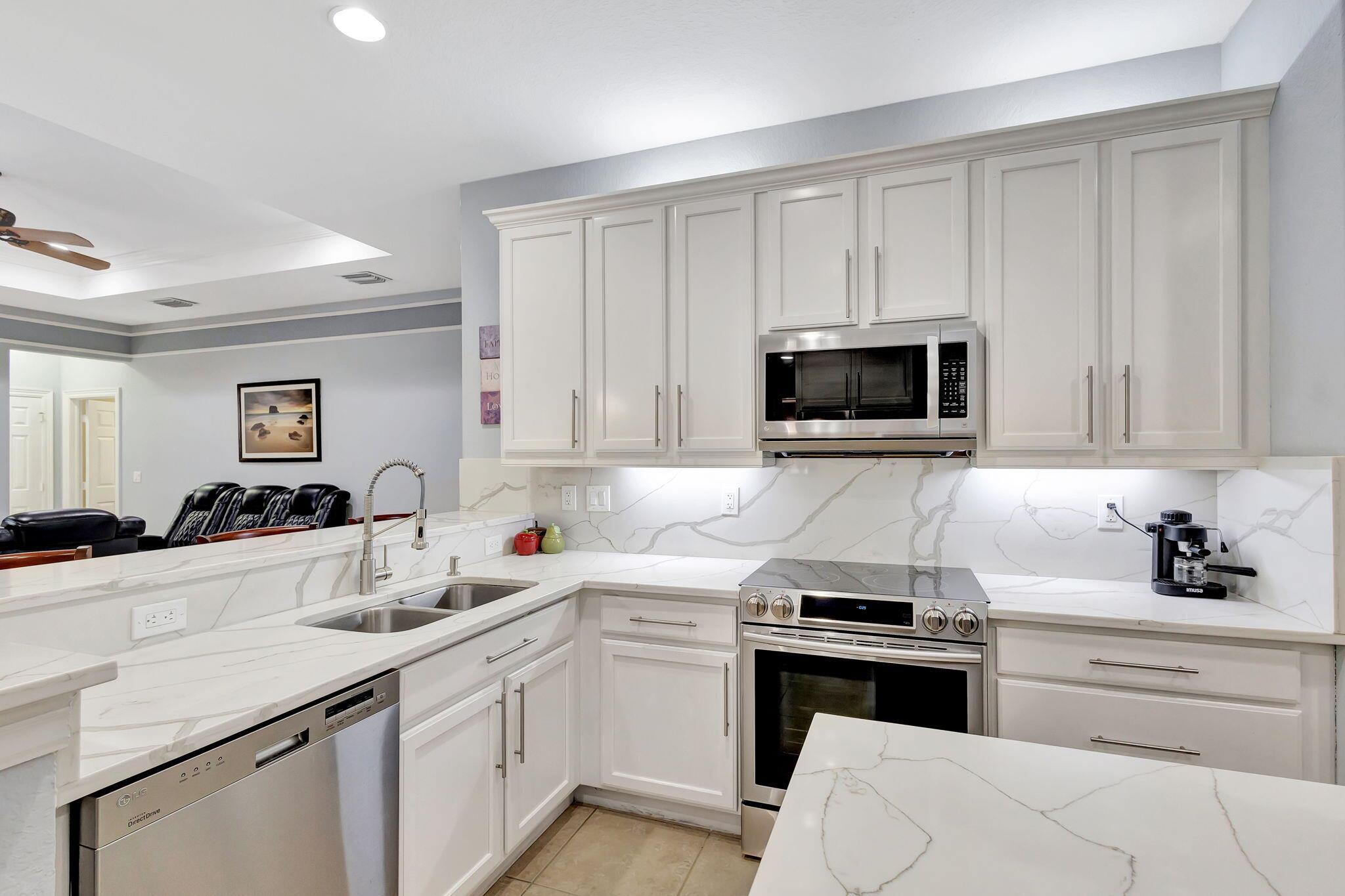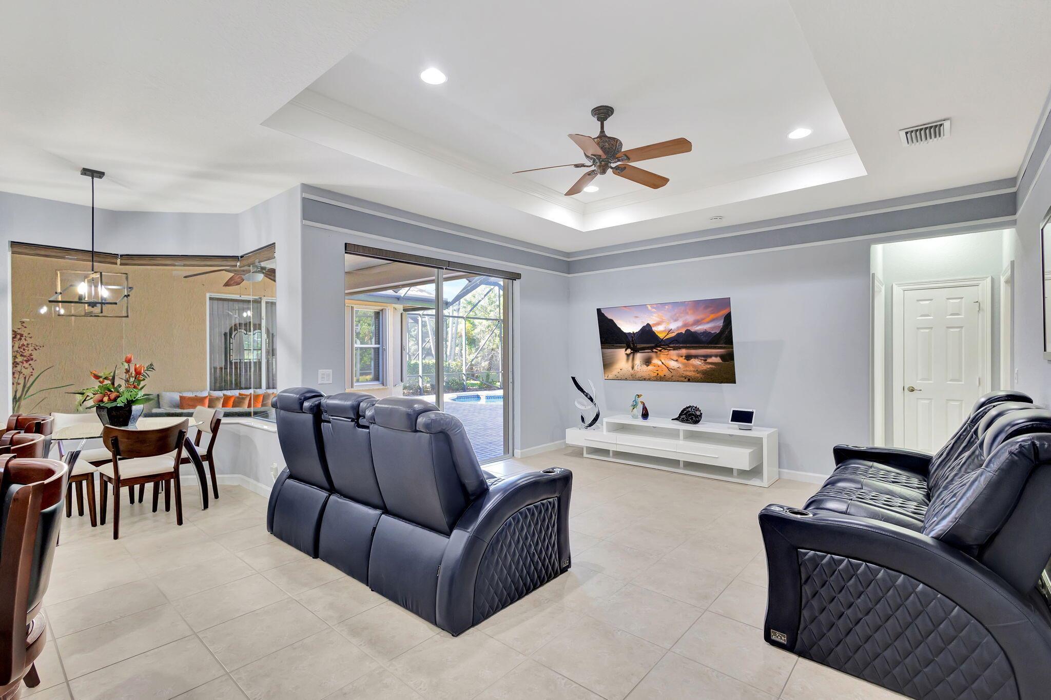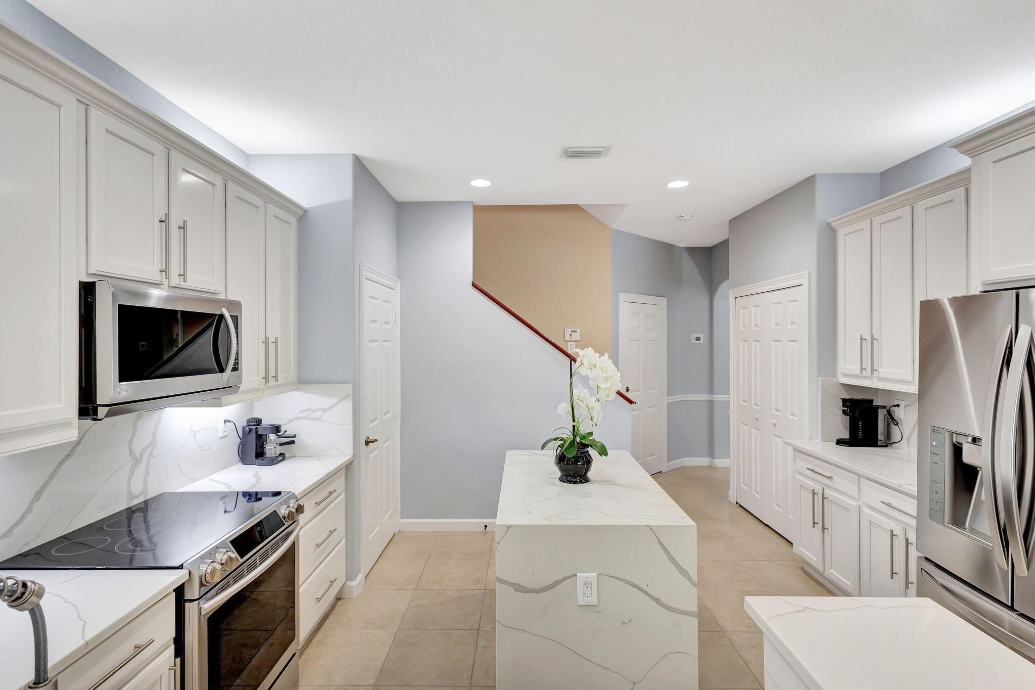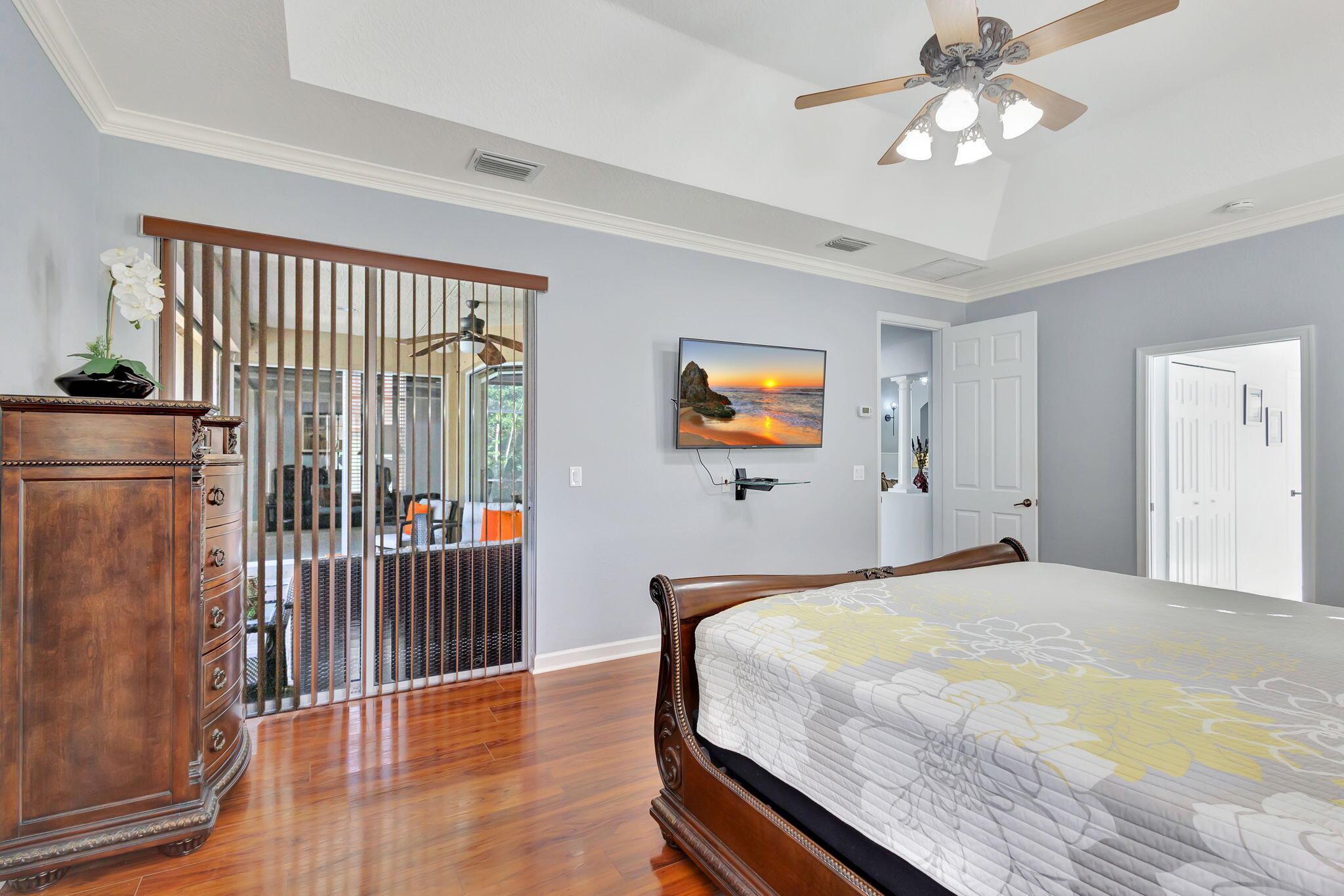 This stunning 5-bedroom, 4-bathroom home plus a den/office is move-in ready and features a primary bedroom and three additional bedrooms on the first floor, with a loft and another bedroom and bathroom upstairs. It boasts a large covered patio, a private heated pool, cabana bath and backs up to a preserve for added privacy. This home includes a newly updated kitchen and bathrooms, a 3-car garage, office nook and ample storage, including a large second-floor storage closet. Additional features include newer water heater, paver patio, accordion shutters, a hurricane-rated front door, and a garage door. The HOA covers alarm service, lawn care, tree maintenance, pool, sauna, tennis, pickleball, playground, and security gate.