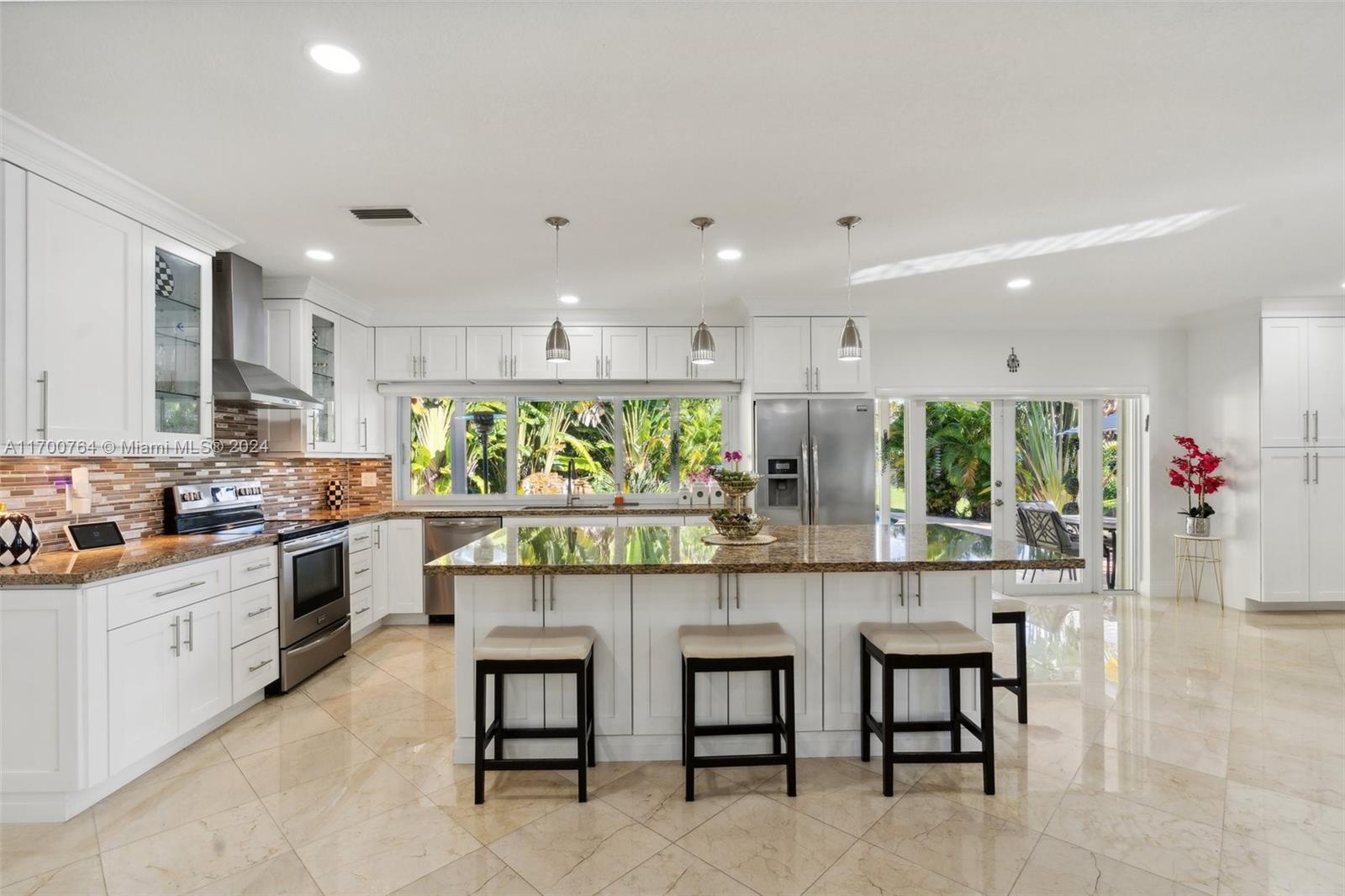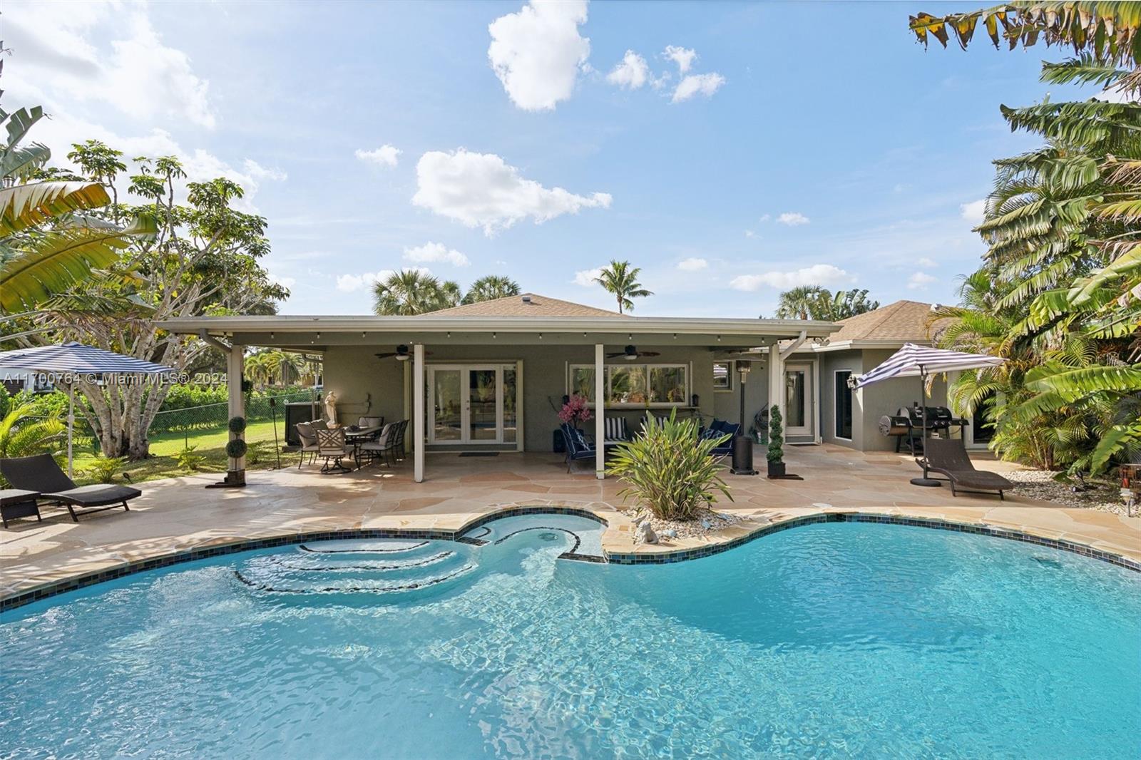 Indulge in refined luxury! Welcome to the exclusive community of Majestic Groves! Custom 5bd/3ba estate on a 54,445 sqft private gated lot in Davie. Circular driveway leads to a courtyard with a tranquil fountain. Inside, enjoy open-concept living, an entertainers dream featuring marble floors, plantation shutters, and high-impact windows that flood the space with light. The primary suite offers a custom walk-in closet and spa-like ensuite with a freestanding tub and oversized shower. Spacious Fifth bedroom, perfect as an entertainment room. Gourmet kitchen includes shaker cabinetry, granite countertops, and a central island. The outdoor space boasts a covered patio, lush landscaping, a freeform pool, and a waterfall. Fully furnished with no HOA, this home offers elegance and tranquility!