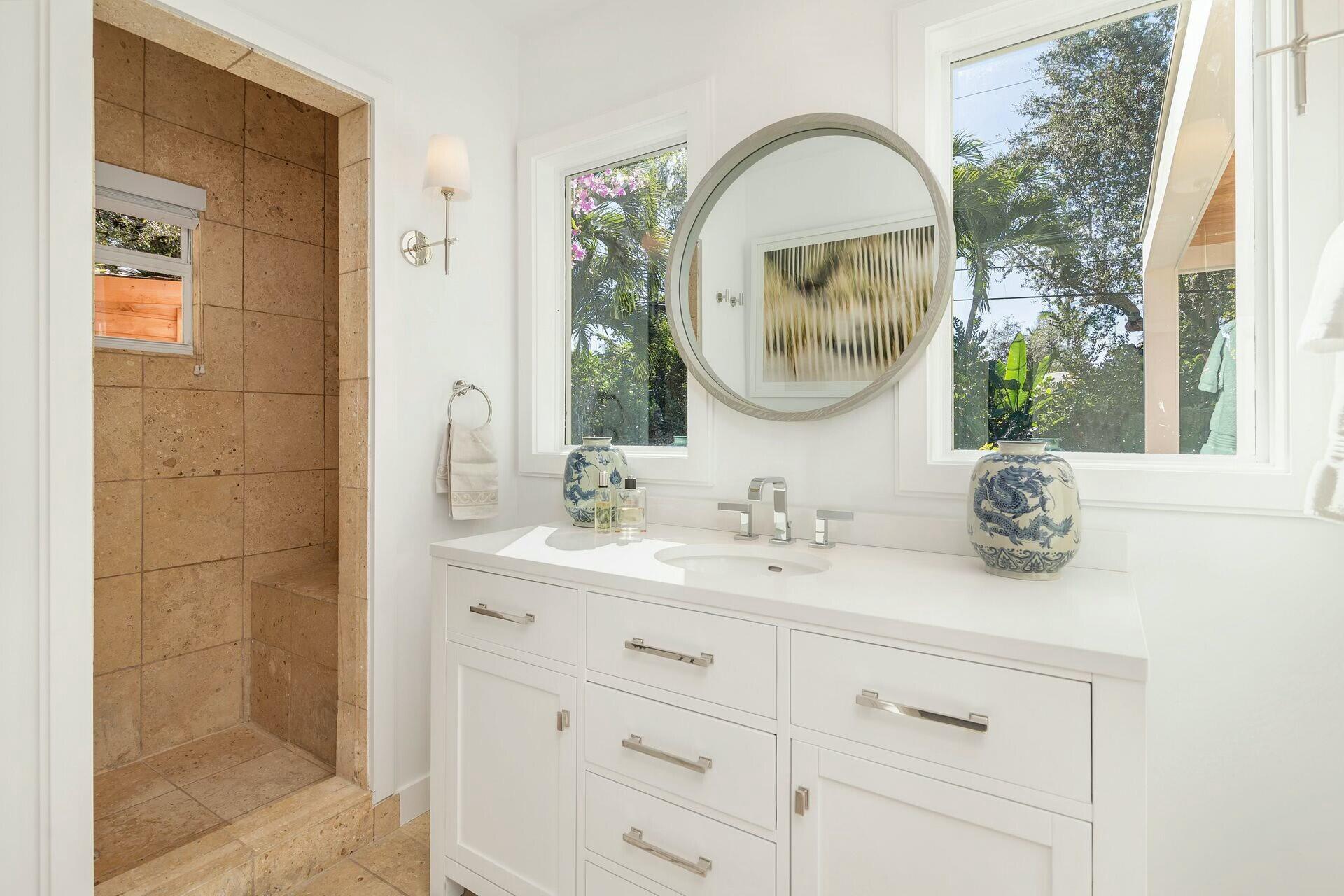 Gorgeously renovated 2BD/2BA home on a prime Historic El Cid street is a charming pied-a-terre. Featuring a beautifully landscaped outdoor patio with custom lighting, large outdoor dining area and pool, this home is perfect for entertaining. Improvements include new, hurricane impact resistant windows & doors, new roof, new electric and plumbing, top of the line Thermador appliances, fabulous Chef's kitchen & well scaled bedrooms and a newly constructed, expansive covered loggia. Excellent location,1 block from the Intracoastal waterway, City Place, beaches and more.