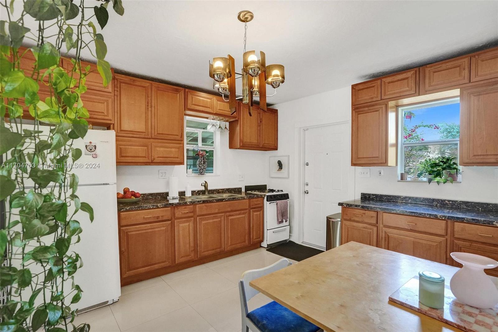 Charming home in desirable North Miami area. This home has been freshly painted, new lighting, newer roof, newer A/C and newer Washer & Dryer. Huge lot with mature fruit trees, room for pool and/ or addition. Lot is fenced and has lots of privacy.