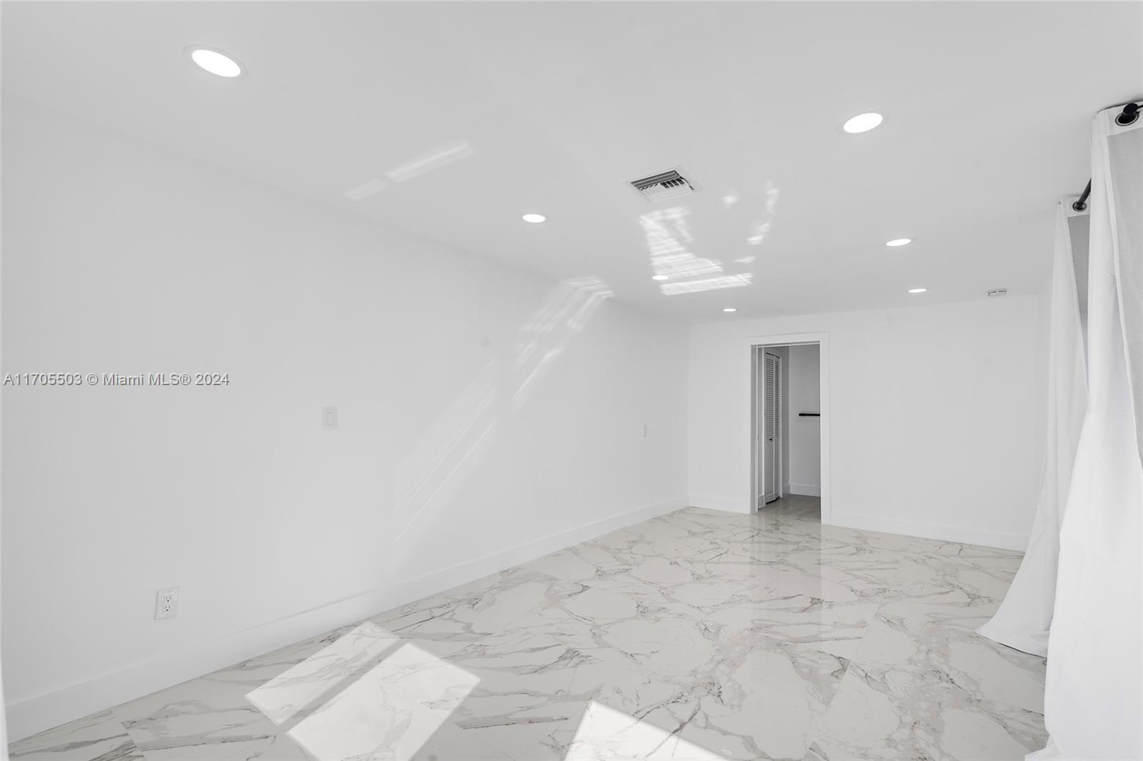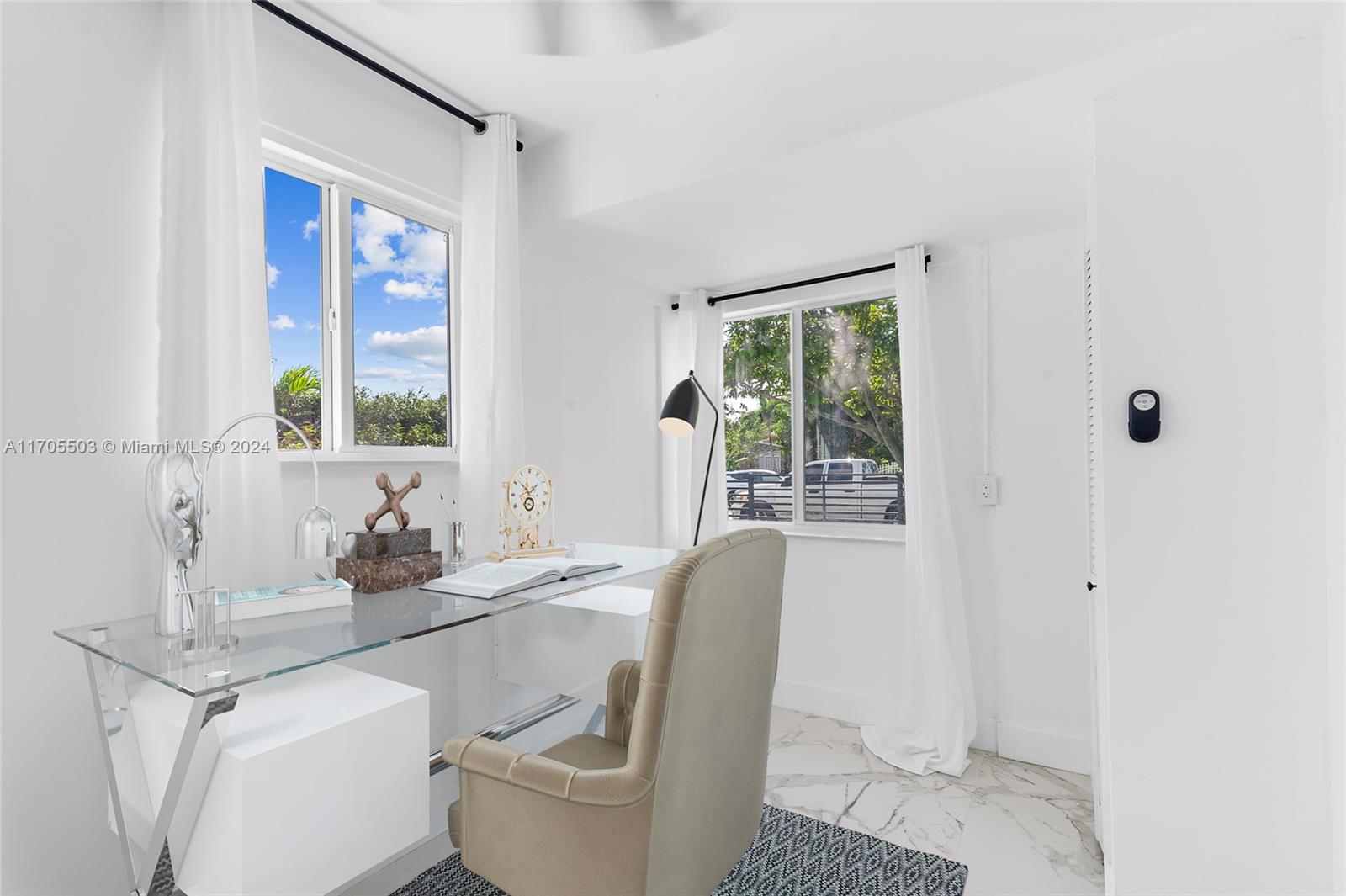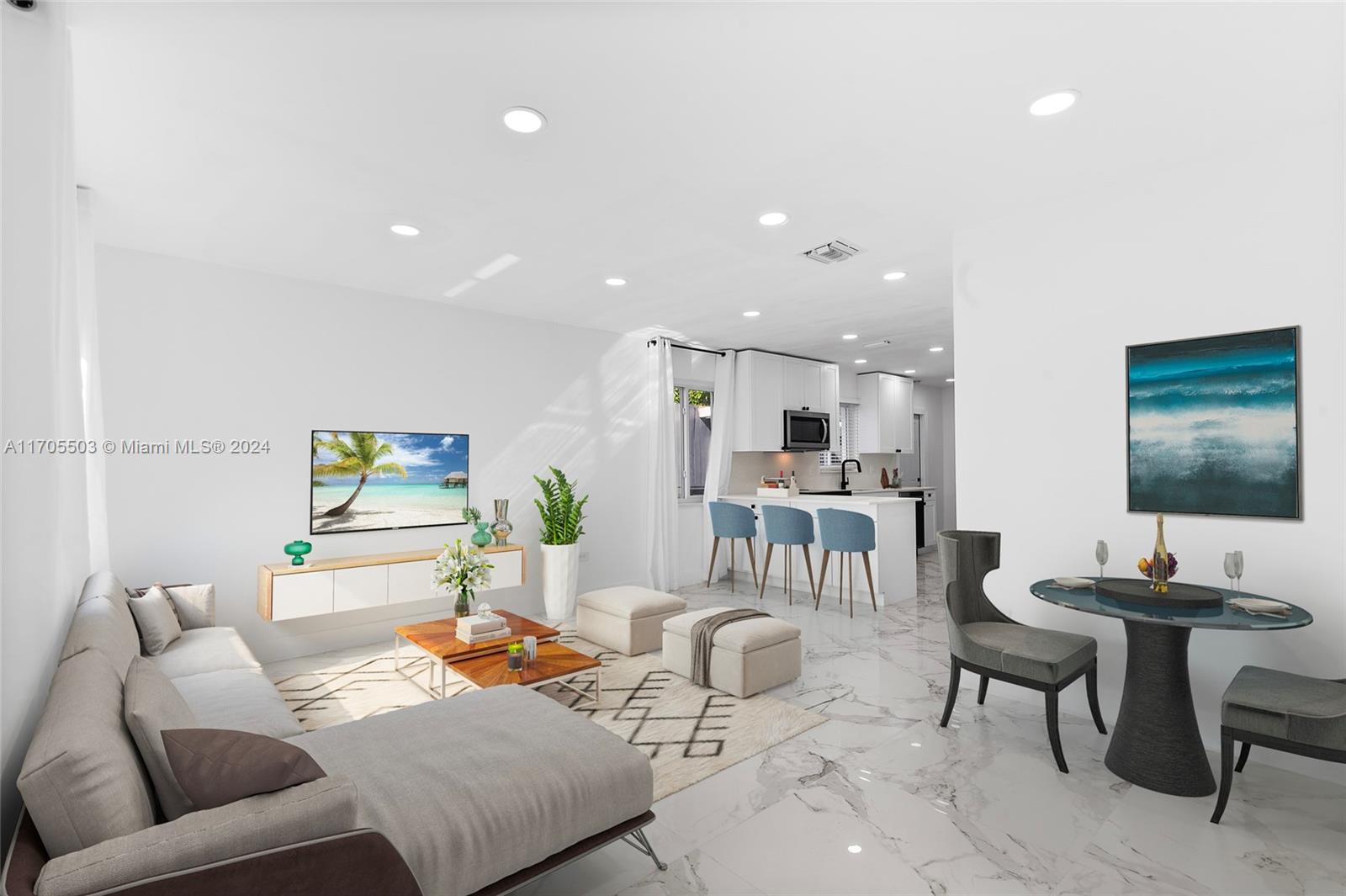 Gorgeous Private Oasis! Mother In-Law Quarters! Four-bedroom-3-bathroom plus bonus room. Opportunity to live almost mortgage free. Airbnb potential also. Tasteful renovation with marble flooring throughout. Open-concept floor plan with massive main bedroom with custom closet plus bonus room for a dressing room or library. Private yard with separate two gates and front and back road access for tenant. Rear laundry for tenant use. Mature fruit trees! This 1,677-sq-ft home has a large 6,750-sq-foot lot. Modern updates include large-format porcelain floors, custom tall-kitchen cabinets and sleek black faucet and hardware. New stainless appliances. Each unit has outdoor space. Modern bathrooms with glass shower doors and luxury black tile. Quick drive to I-95 and turnpike.