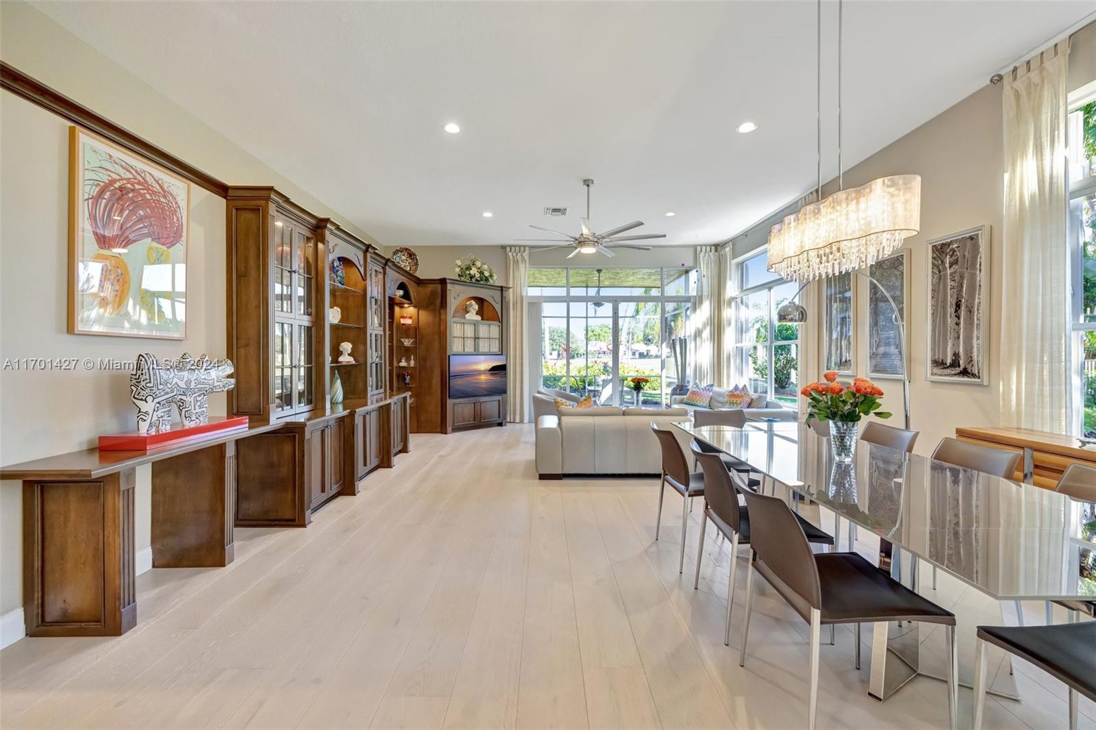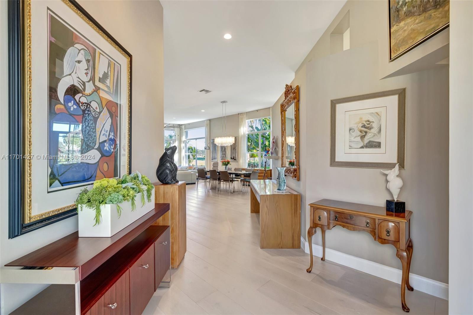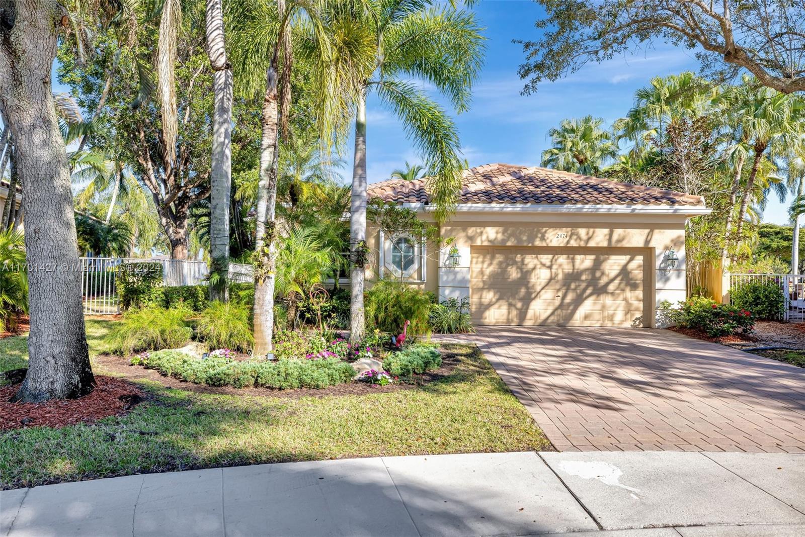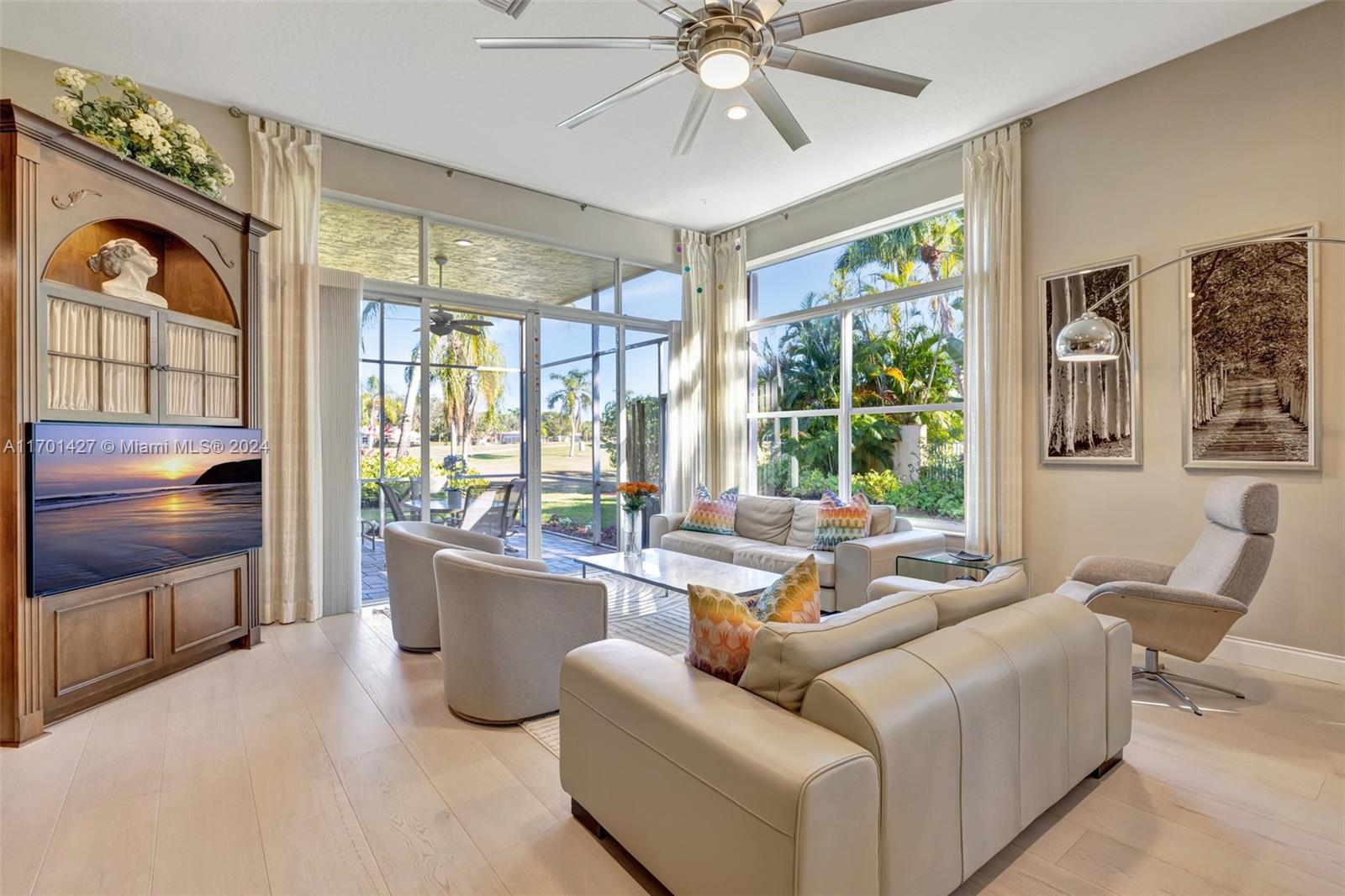 Stunning totally updated 3-bed, 3-bath home in exclusive Bay Isle at Weston Hills on oversized pie shaped lot w/ NE back exposure. Gorgeous golf & lake views, private, quiet cul-de-sac setting. Open concept layout w/ volume ceilings & bright airy spaces w/ gorgeous wide plank white oak in living area, built-ins in Office, Living & Guest Rms. Sparkling clean, move in ready; pride of ownership evident, same owner since '97. Spacious primary bedroom w/ 2 custom walk-ins & stunningly updated en-suite bathroom w/ freestanding tub & top of the line cabinets. Kitchen w/ wood cabinets, quartz & granite counters, stainless, wine bar & desk. 3 yr old Roof, accordion & plantation shutters. Screened patio; A rated schools; guard-gated w/ golf, tennis, gym & restaurant/bar w/ addt'l membership optional