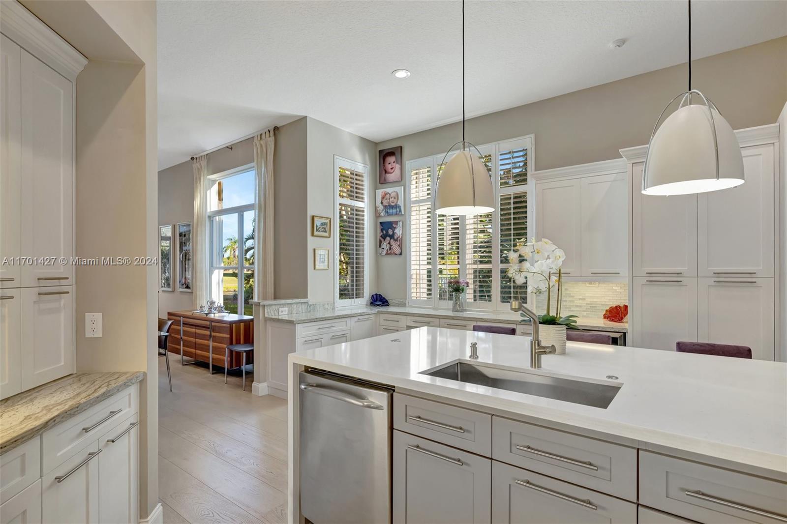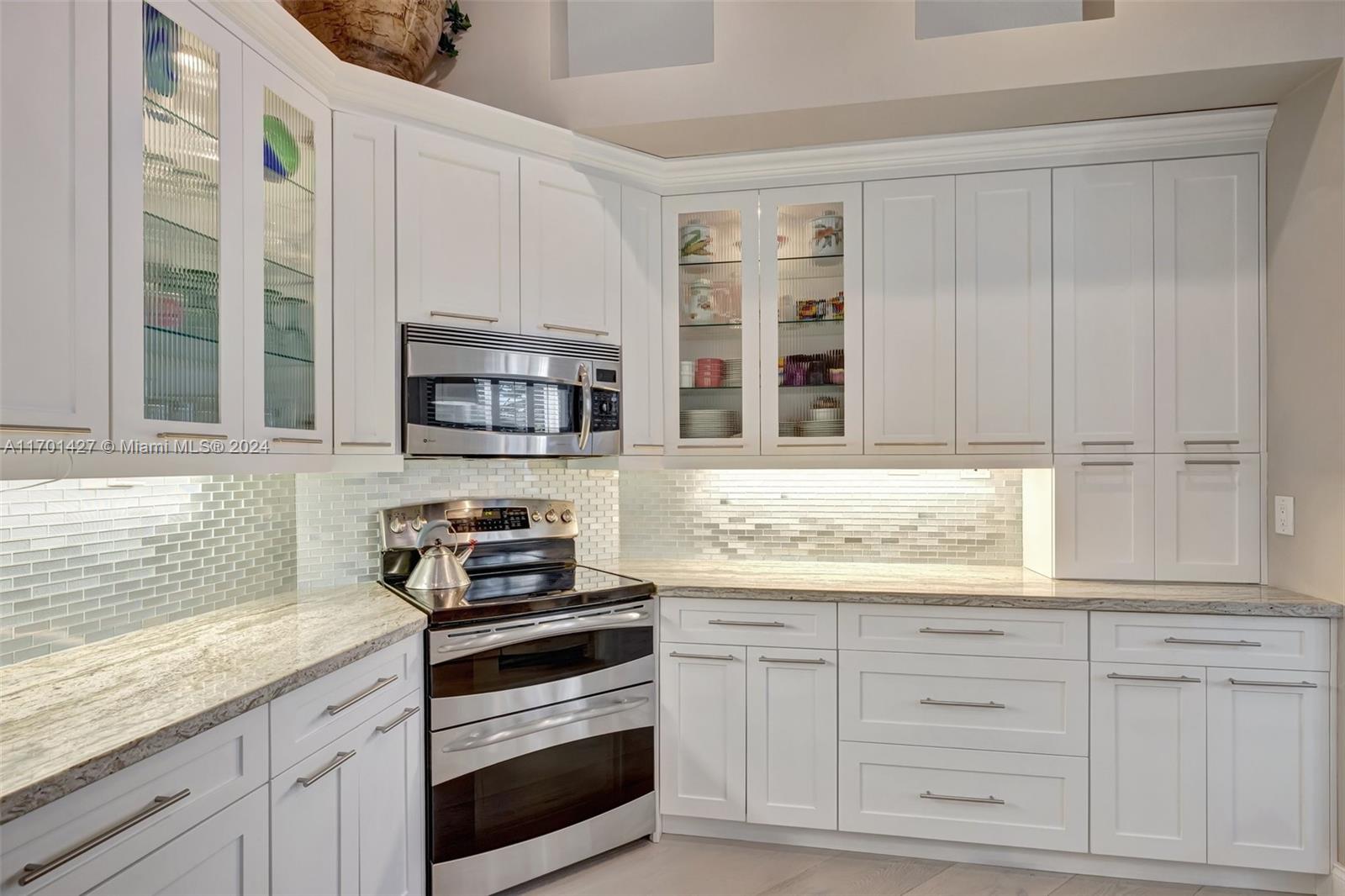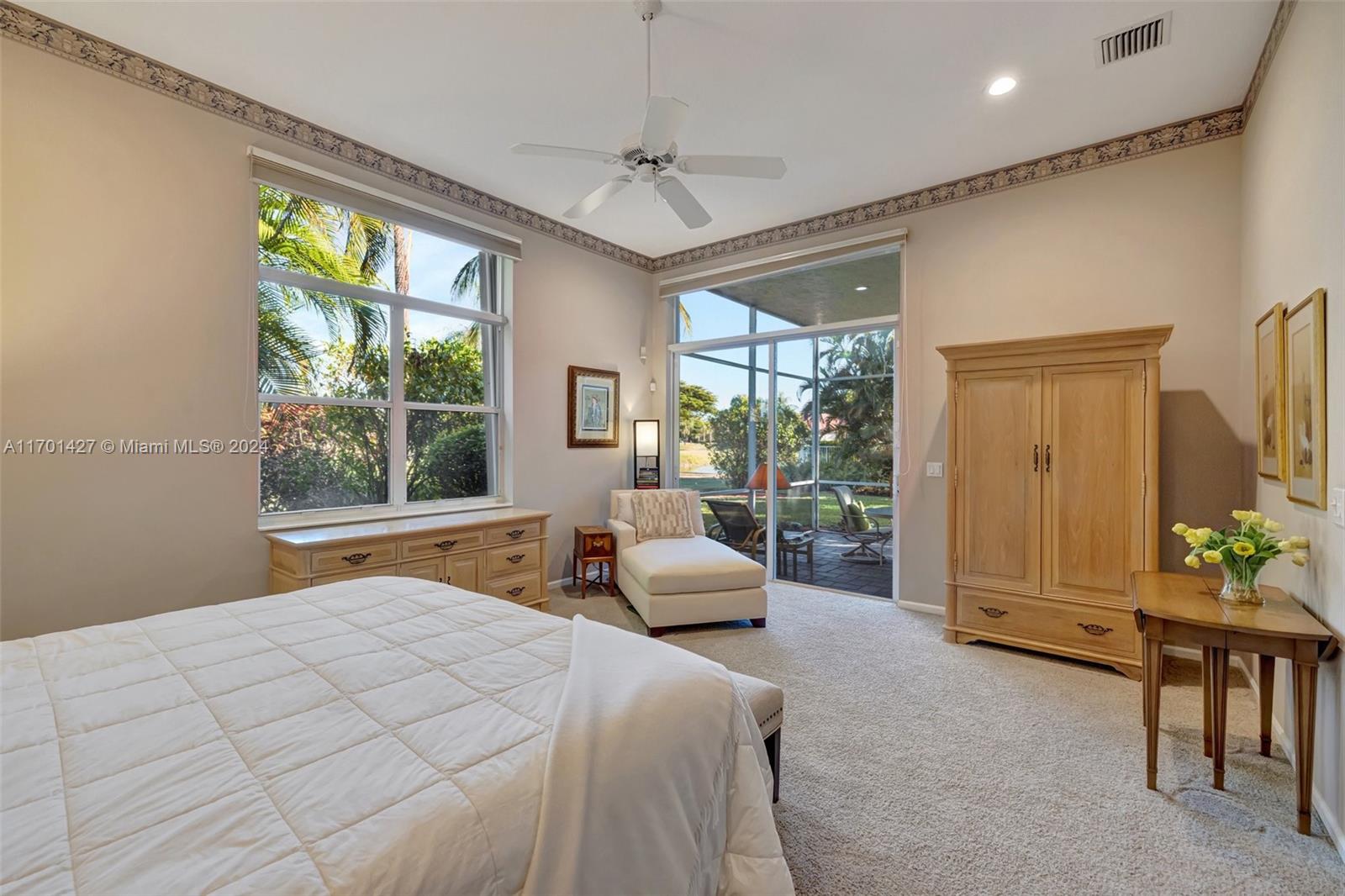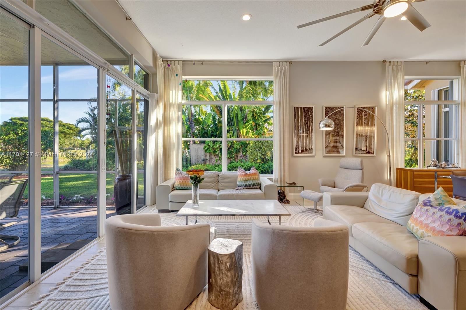 Stunning totally updated 3-bed, 3-bath home in exclusive Bay Isle at Weston Hills on oversized pie shaped lot w/ NE back exposure. Gorgeous golf & lake views, private, quiet cul-de-sac setting. Open concept layout w/ volume ceilings & bright airy spaces w/ gorgeous wide plank white oak in living area, built-ins in Office, Living & Guest Rms. Sparkling clean, move in ready; pride of ownership evident, same owner since '97. Spacious primary bedroom w/ 2 custom walk-ins & stunningly updated en-suite bathroom w/ freestanding tub & top of the line cabinets. Kitchen w/ wood cabinets, quartz & granite counters, stainless, wine bar & desk. 3 yr old Roof, accordion & plantation shutters. Screened patio; A rated schools; guard-gated w/ golf, tennis, gym & restaurant/bar w/ addt'l membership optional